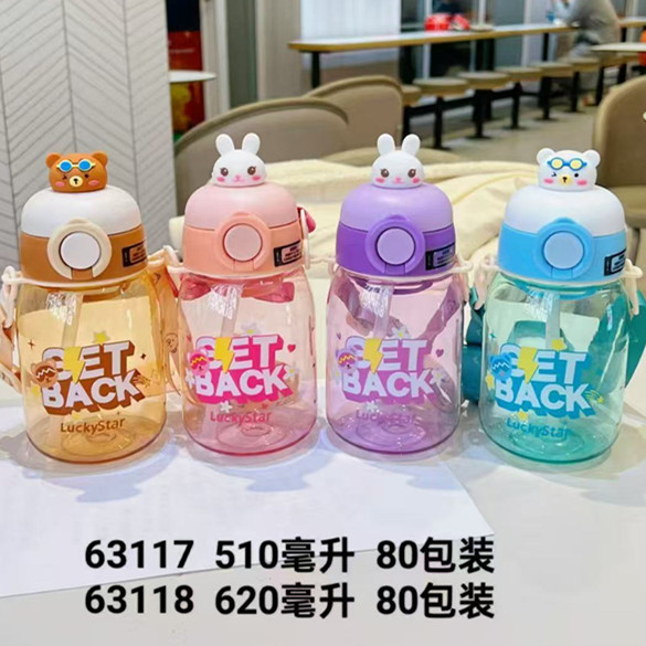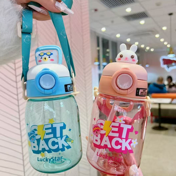 패션 만화 어린이 플라스틱 물 컵 유치원 아기 스텁 컵 학생 휴대용 스트랩 귀여운 인형 물병