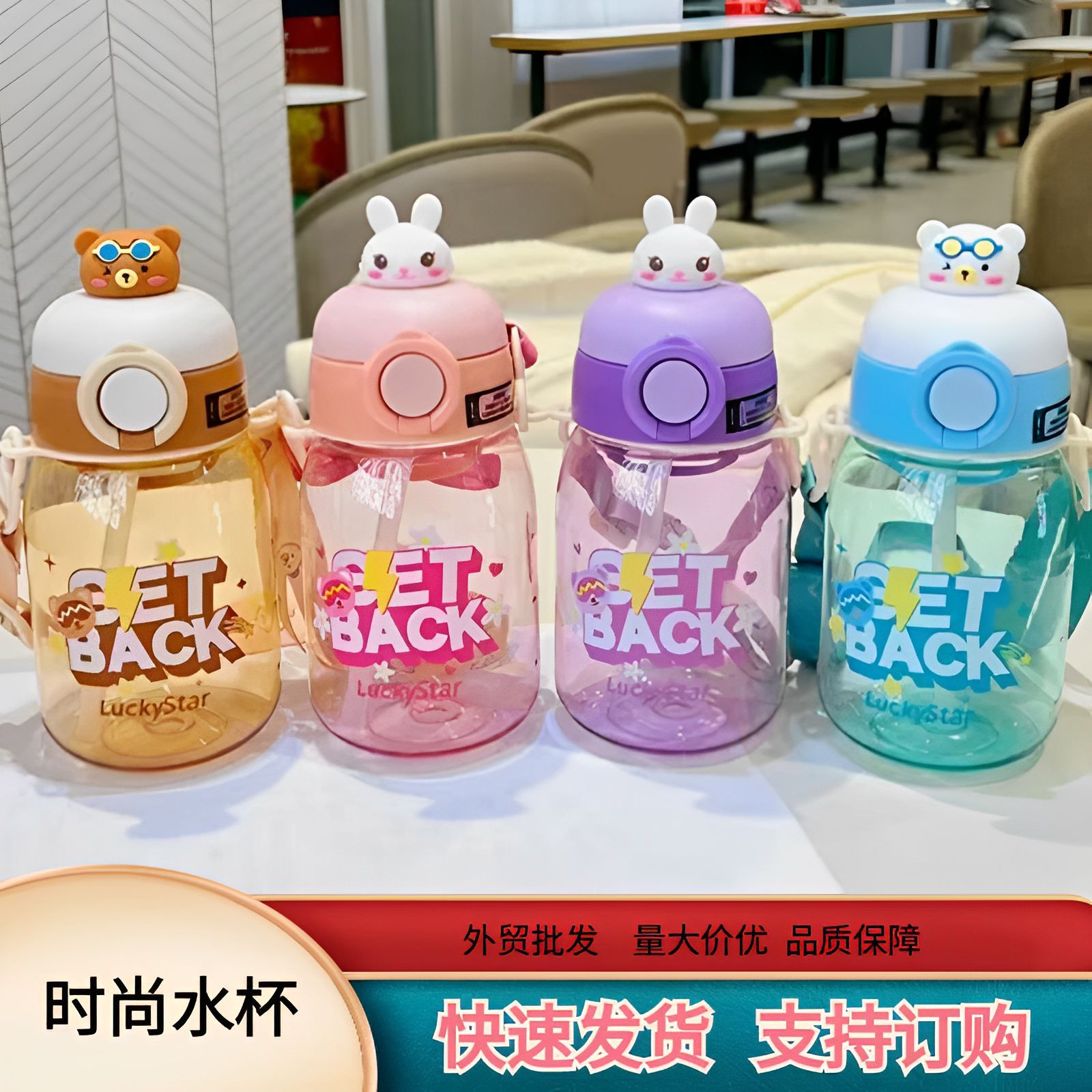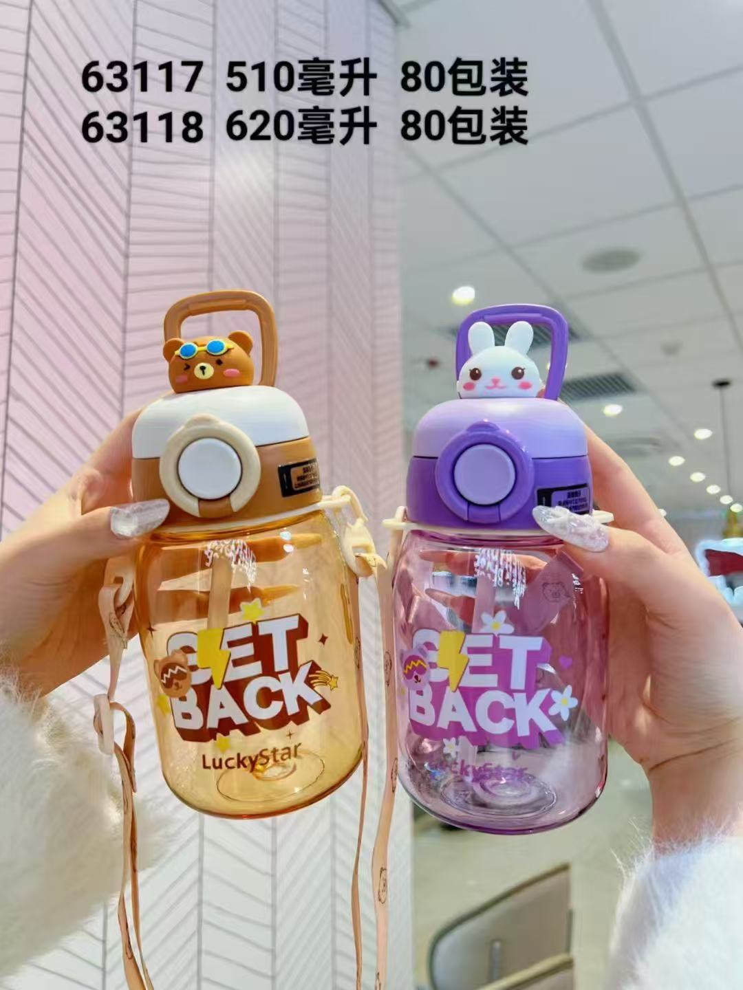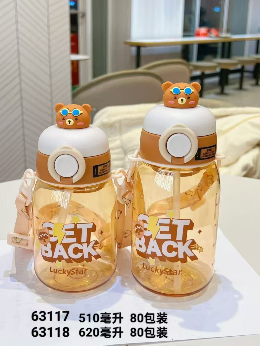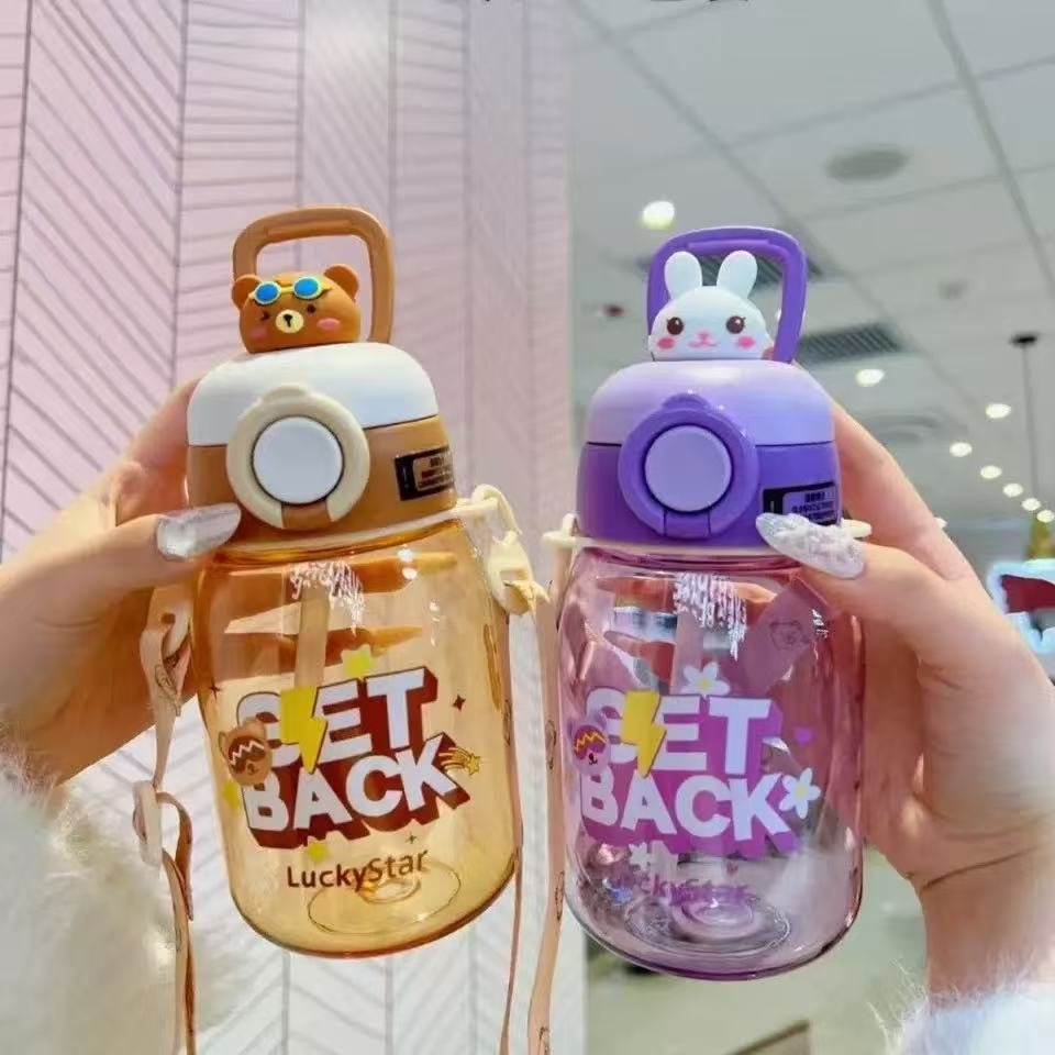 패션 만화 어린이 플라스틱 물 컵 유치원 아기 스텁 컵 학생 휴대용 스트랩 귀여운 인형 물병스토어 가기