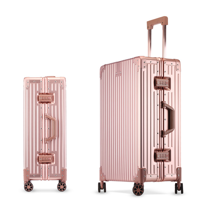 모든 알루미늄 마그네슘 합금 높은 색상 가치 비즈니스 수하물 20 인치 트롤리 케이스 유니버설 휠 암호 상자 탑승 가방 여성