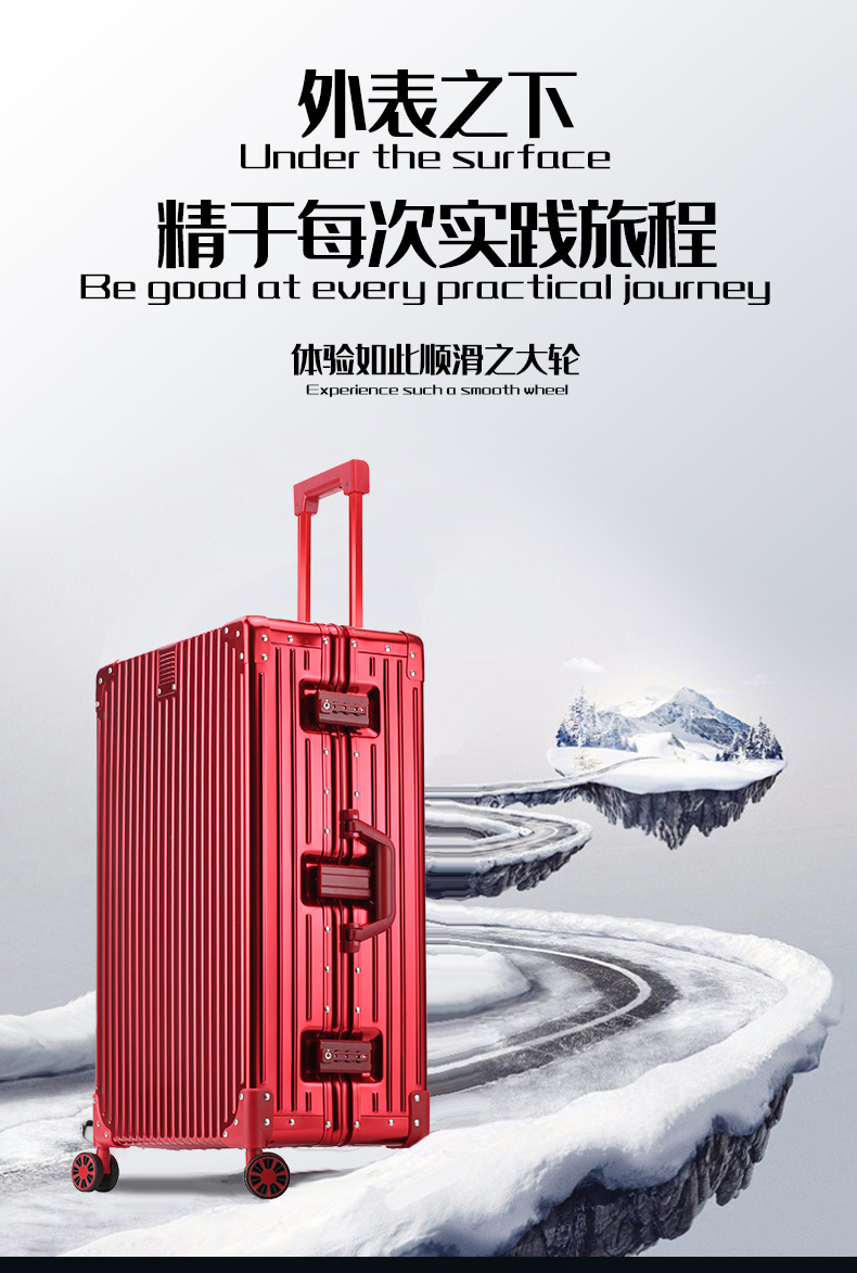 모든 알루미늄 마그네슘 합금 높은 색상 가치 비즈니스 수하물 20 인치 트롤리 케이스 유니버설 휠 암호 상자 탑승 가방 여성스토어 가기