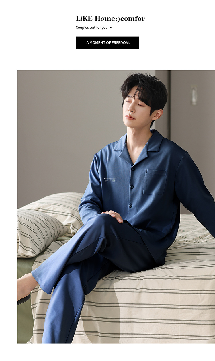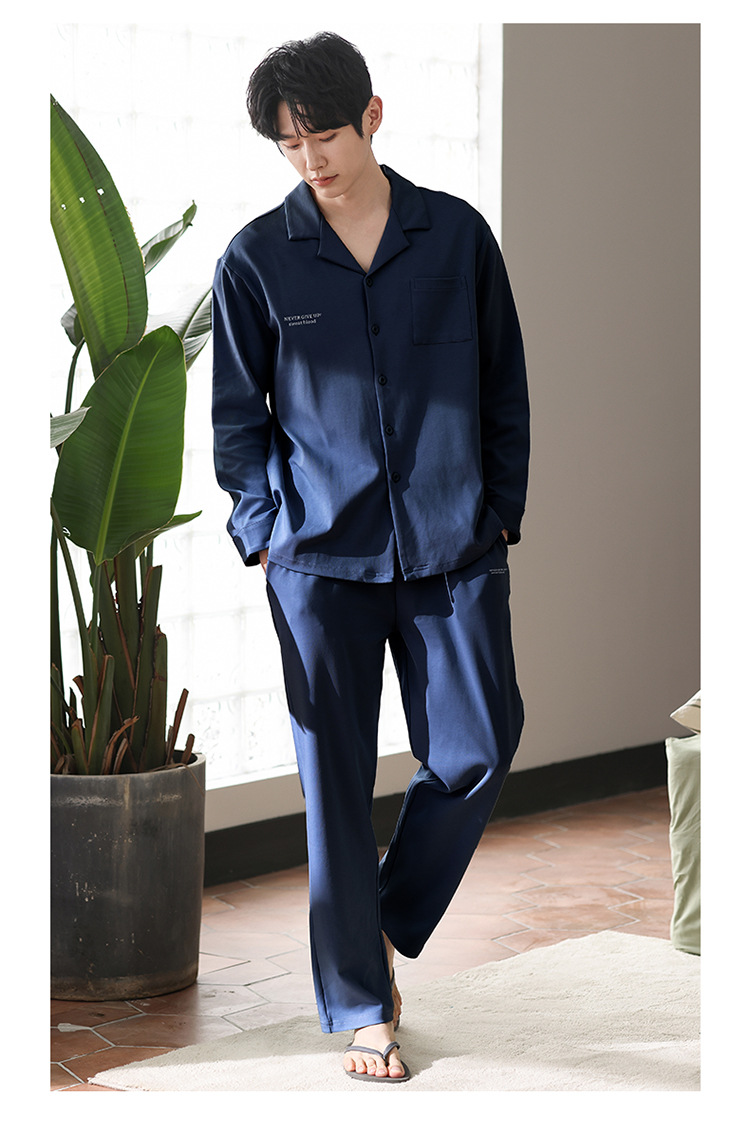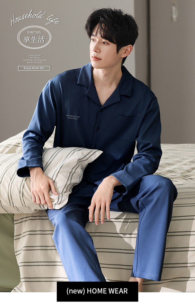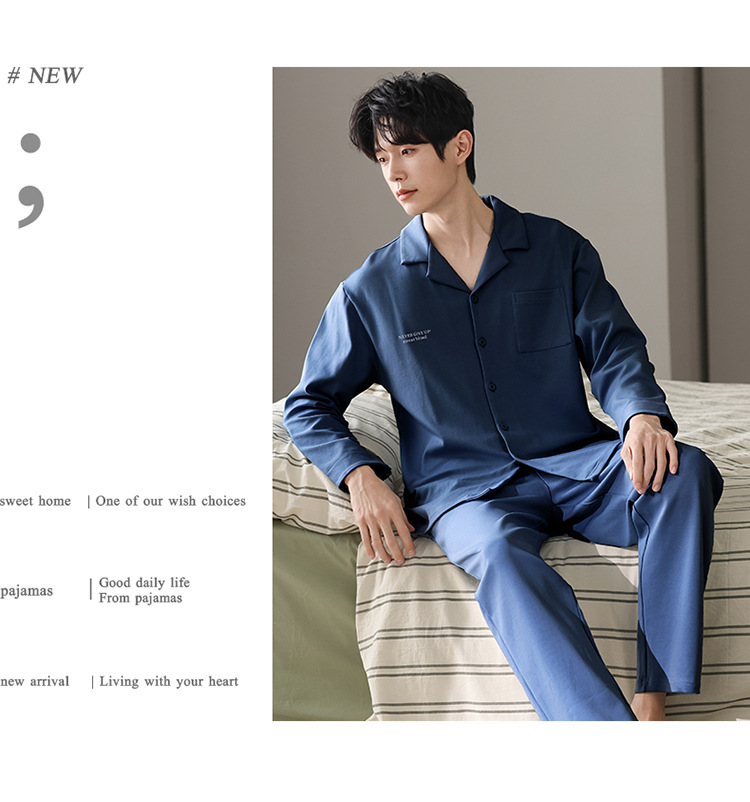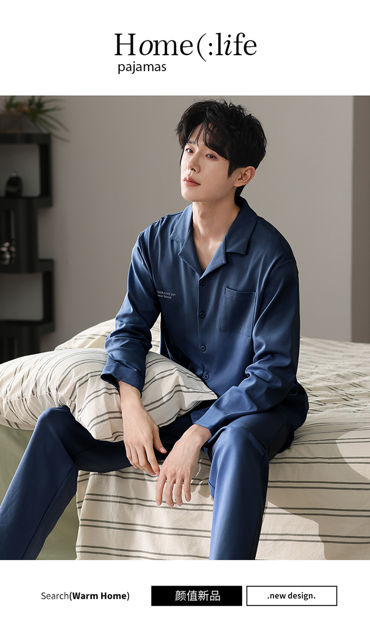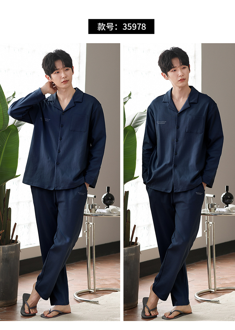 2025 봄 뉴 6535 양면 면 남성 옷깃 카디건 긴 소매 바지 파자마 남성 홈 의류 세트스토어 가기
