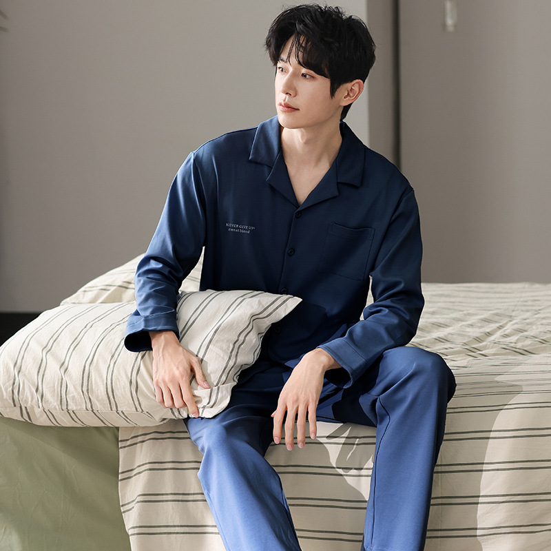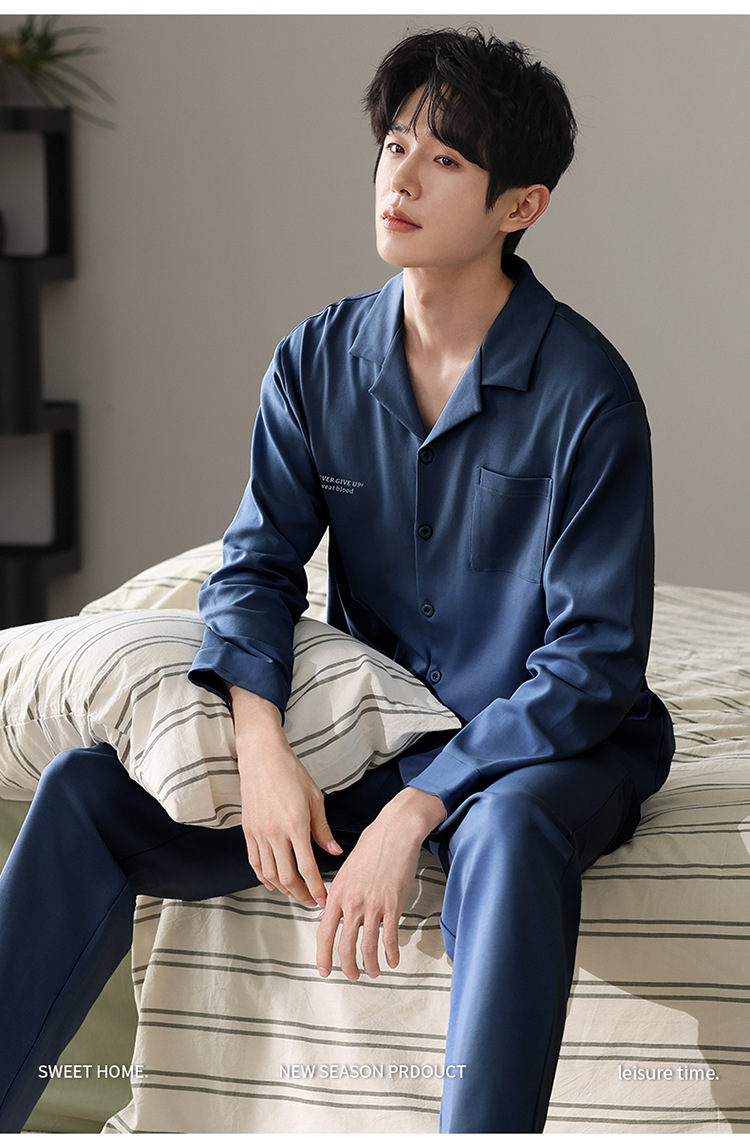2025 봄 뉴 6535 양면 면 남성 옷깃 카디건 긴 소매 바지 파자마 남성 홈 의류 세트