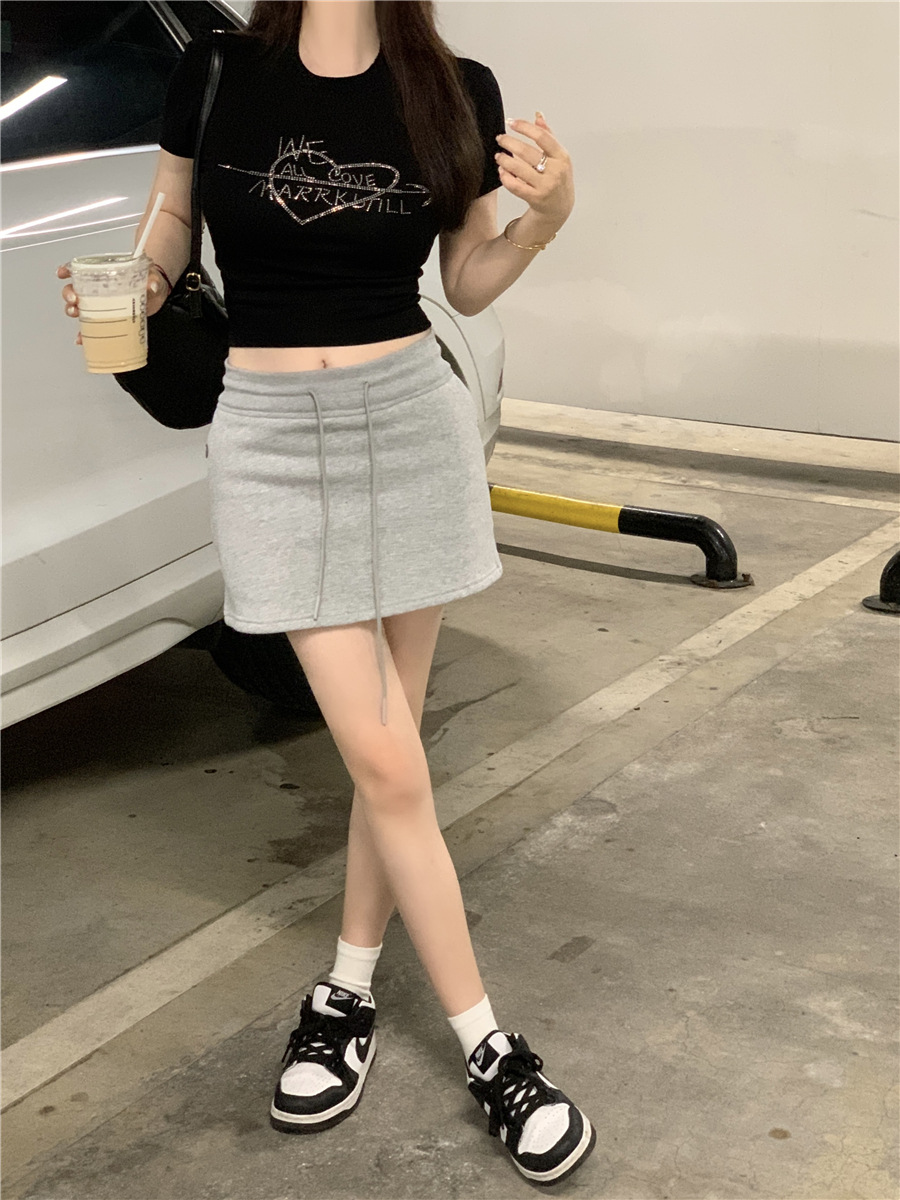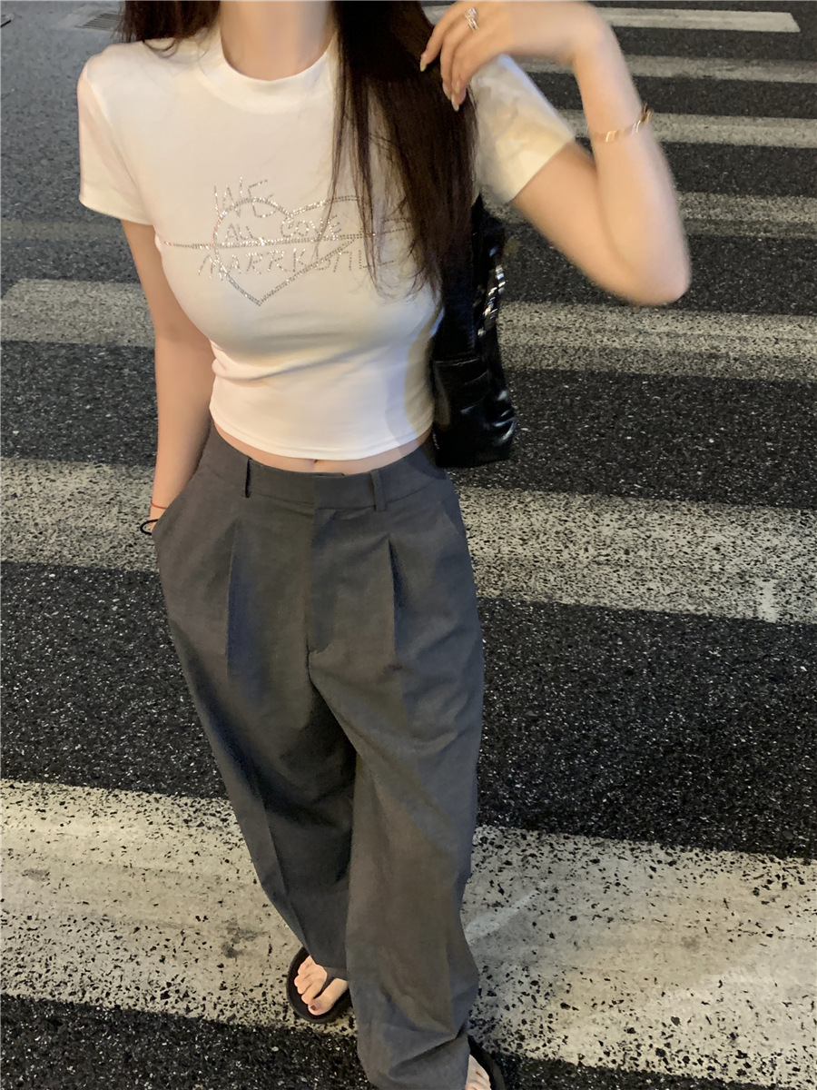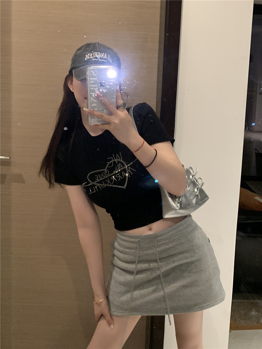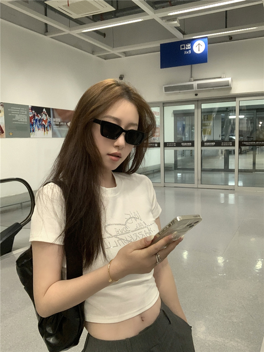 미국식 반짝이 장식 숄더 반팔 티셔츠 여성 여름 2025 신상 핫걸 슬림핏 디자인 숏탑스토어 가기