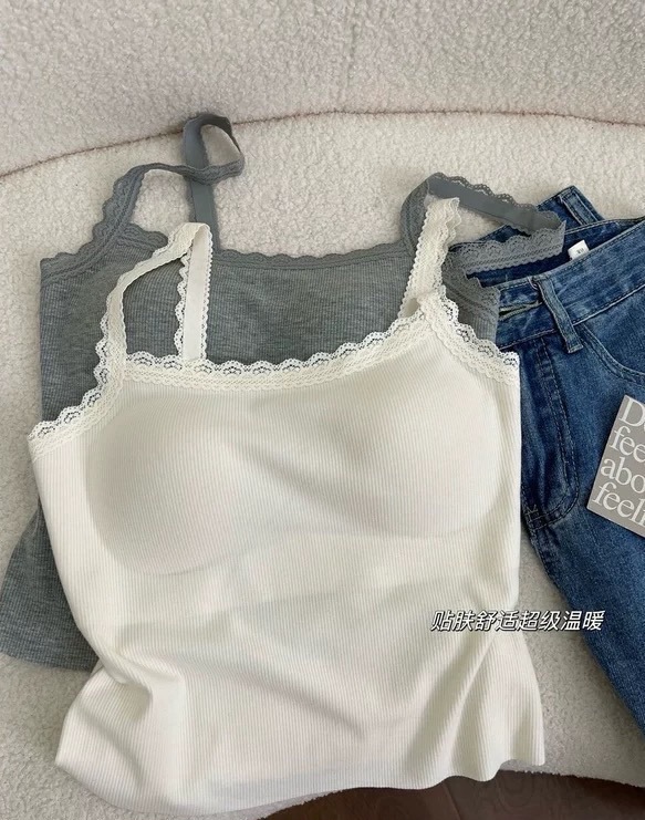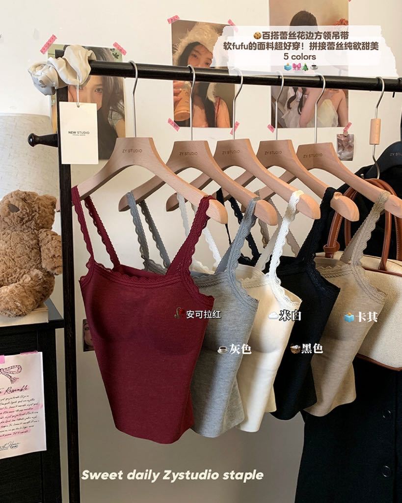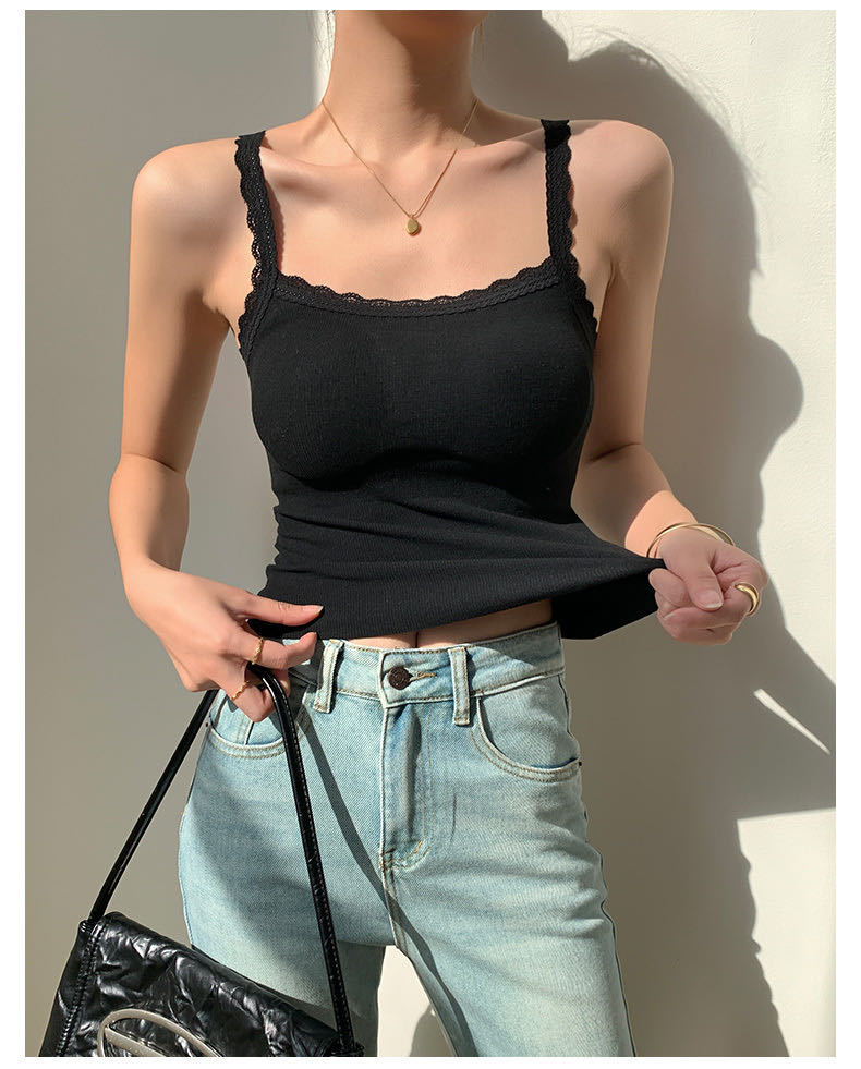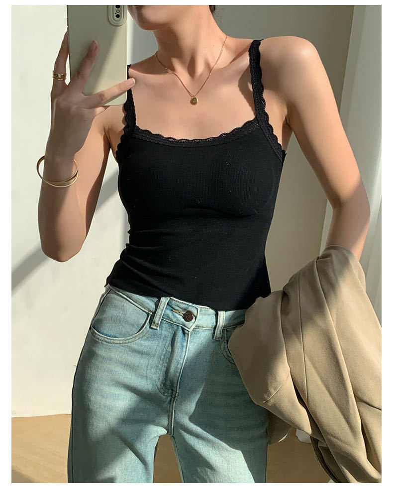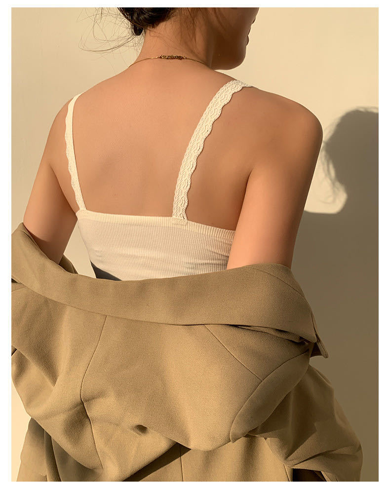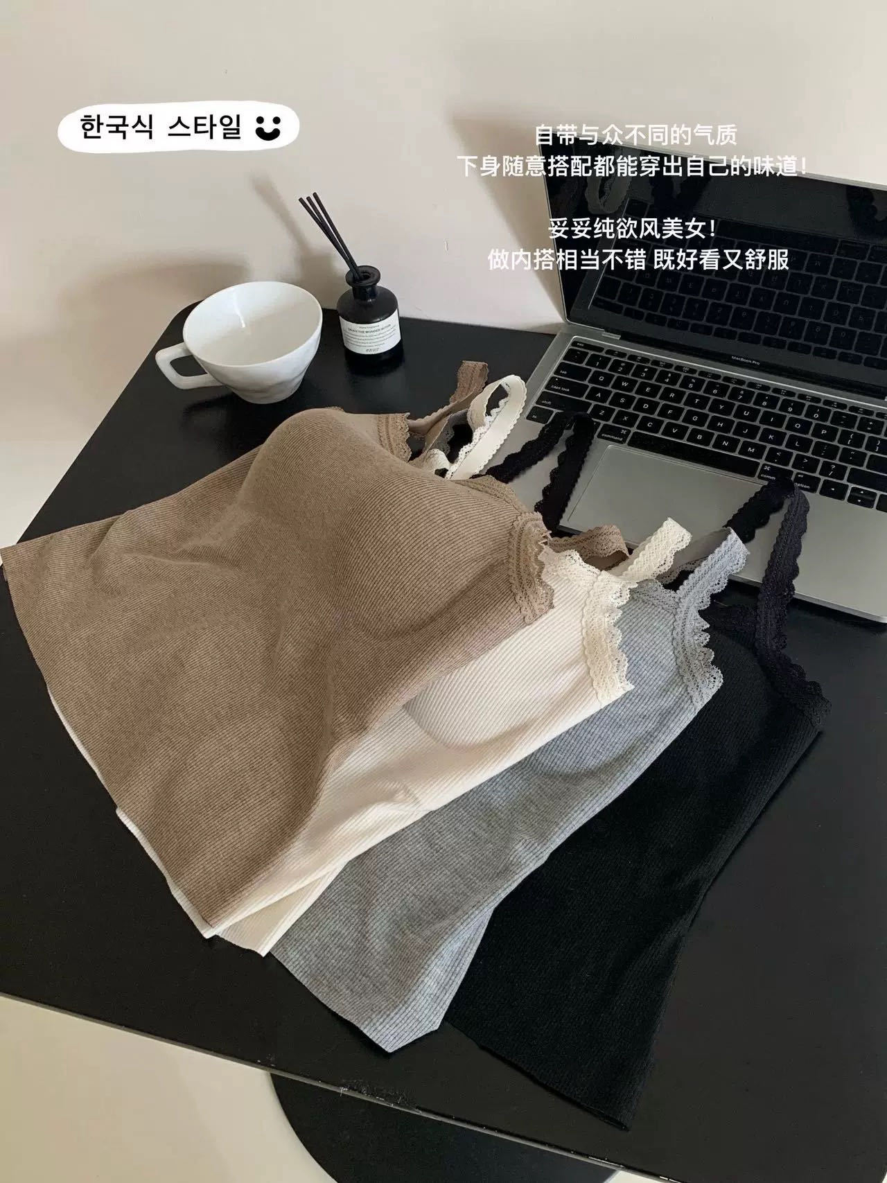 봄과 여름 새로운 한국 Ins 스타일 스레드 조끼 여성용 슬링 통합 브래킷 패드 고정 컵 비닝 아름다운 뒤스토어 가기