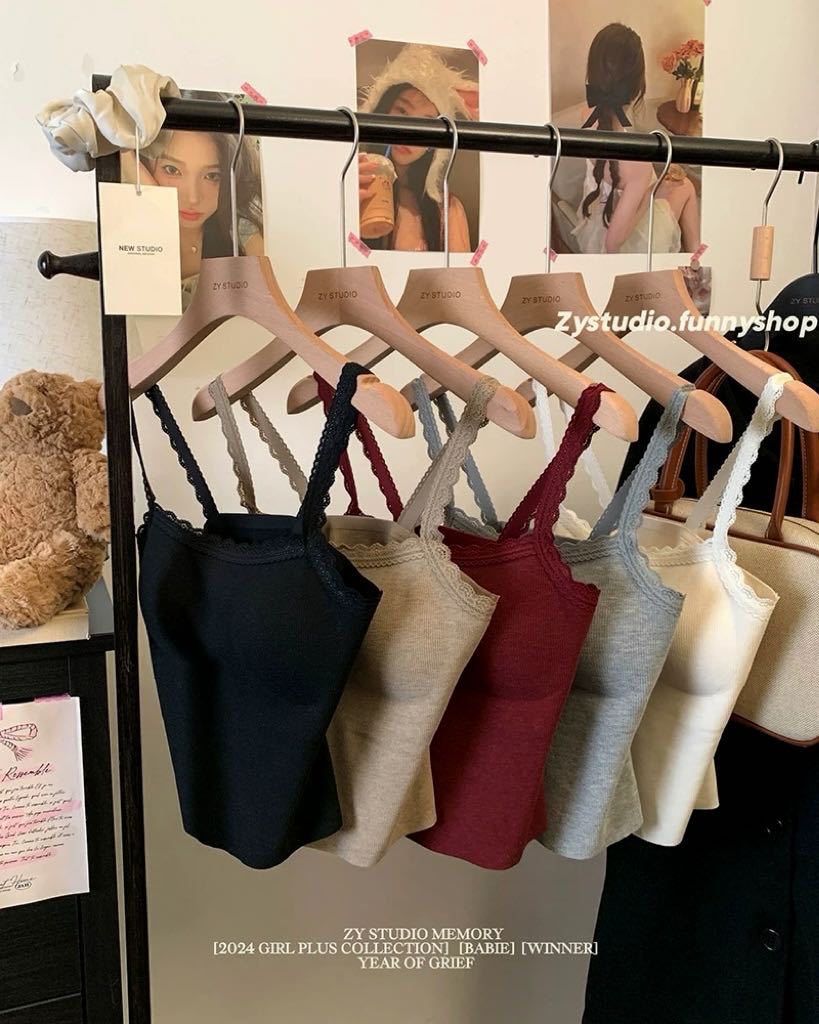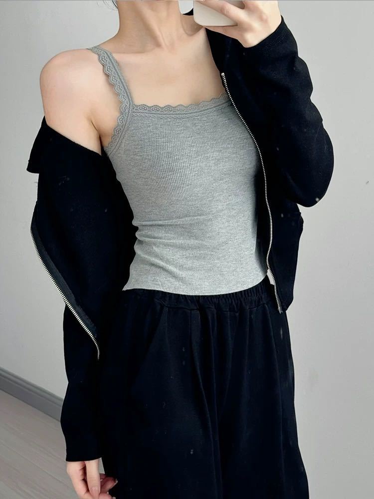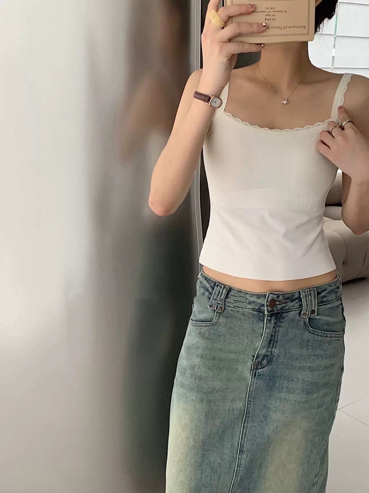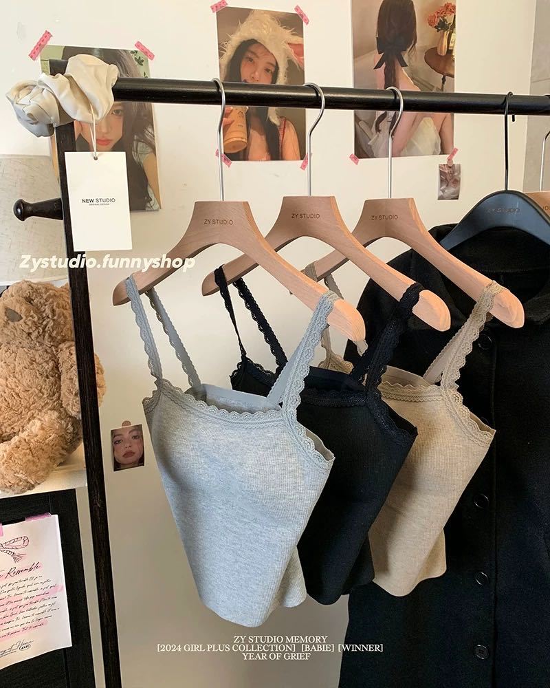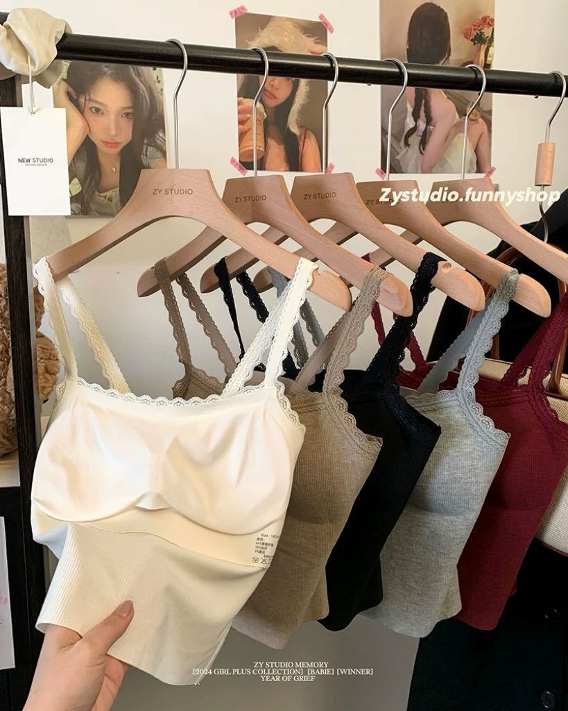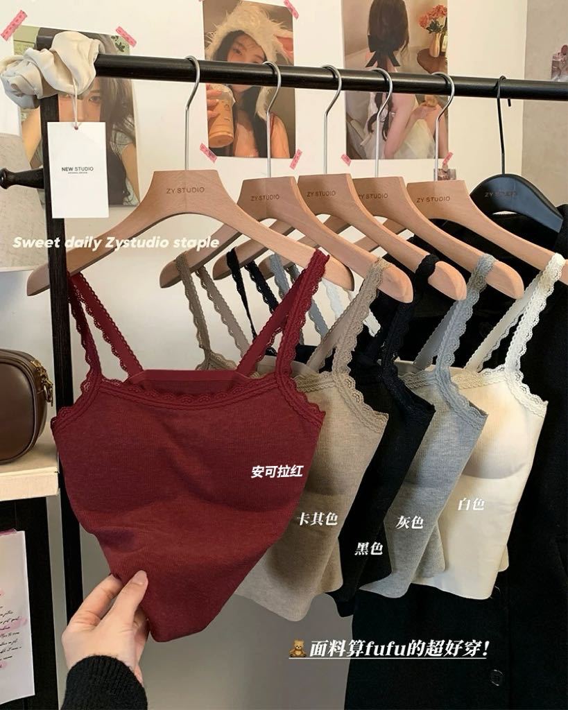 봄과 여름 새로운 한국 Ins 스타일 스레드 조끼 여성용 슬링 통합 브래킷 패드 고정 컵 비닝 아름다운 뒤스토어 가기