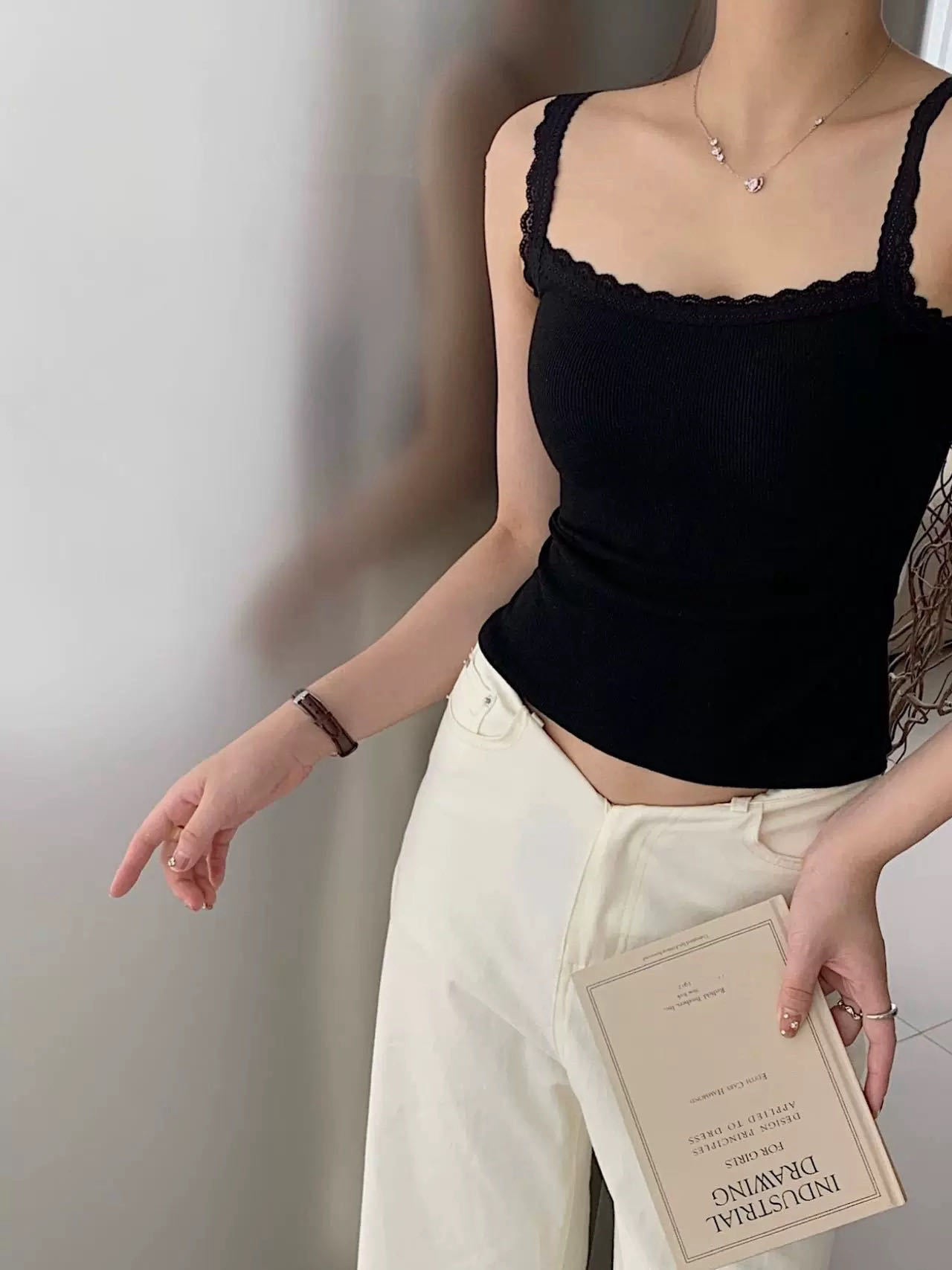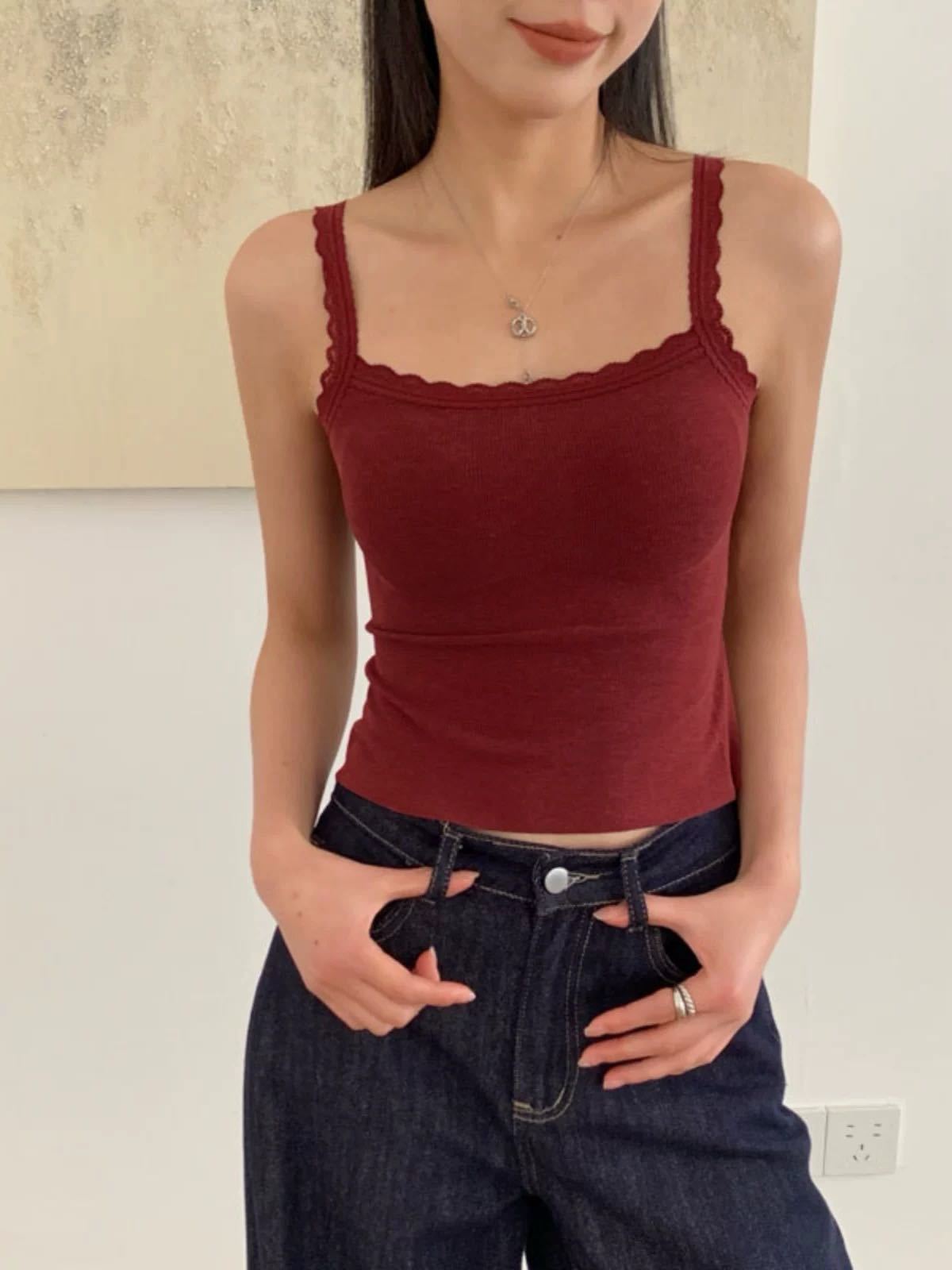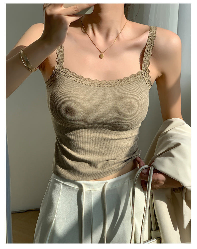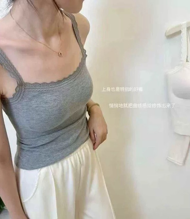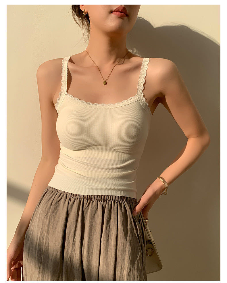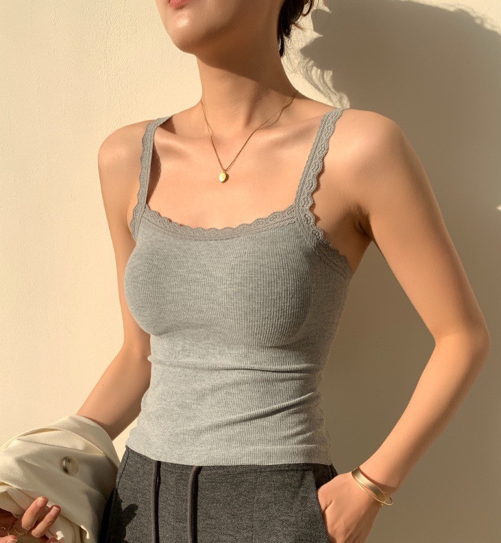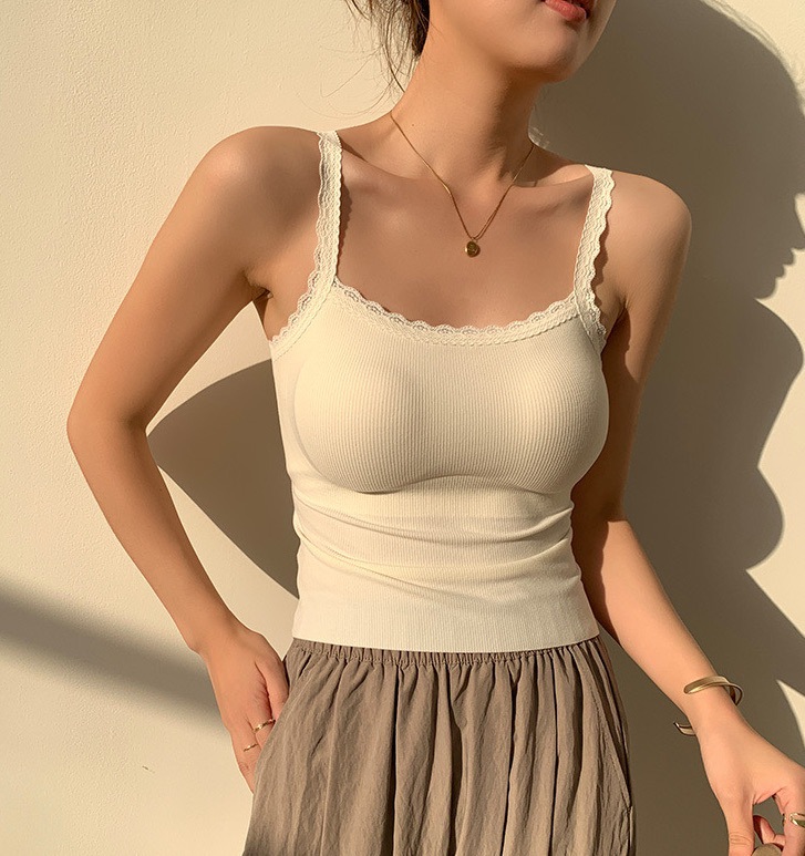 봄과 여름 새로운 한국 Ins 스타일 스레드 조끼 여성용 슬링 통합 브래킷 패드 고정 컵 비닝 아름다운 뒤