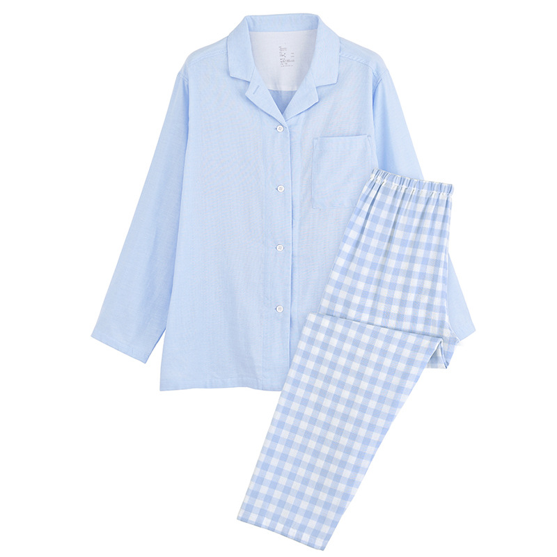 • 라이트 블루 체크 무늬 - 여성 스타일