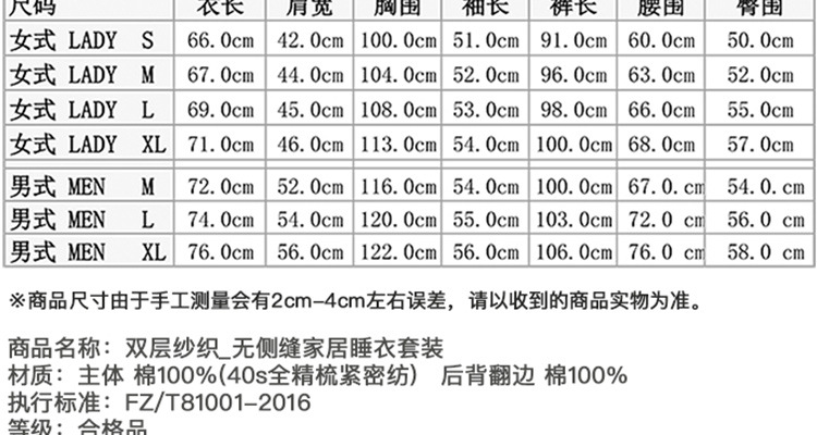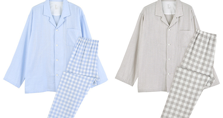 카운터 동일한 인쇄되지 않은 면 이중 레이어 원사 봄 및 여름 비 사이드 솔기 홈 의류 남성과 여성을위한 세트 착용 가능