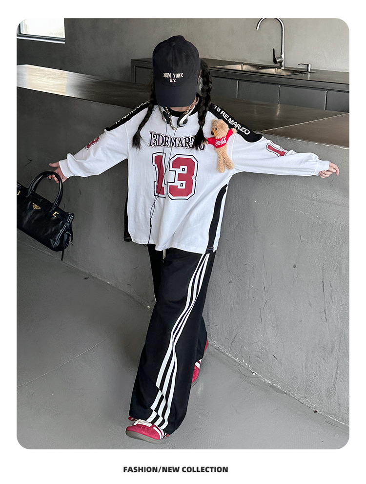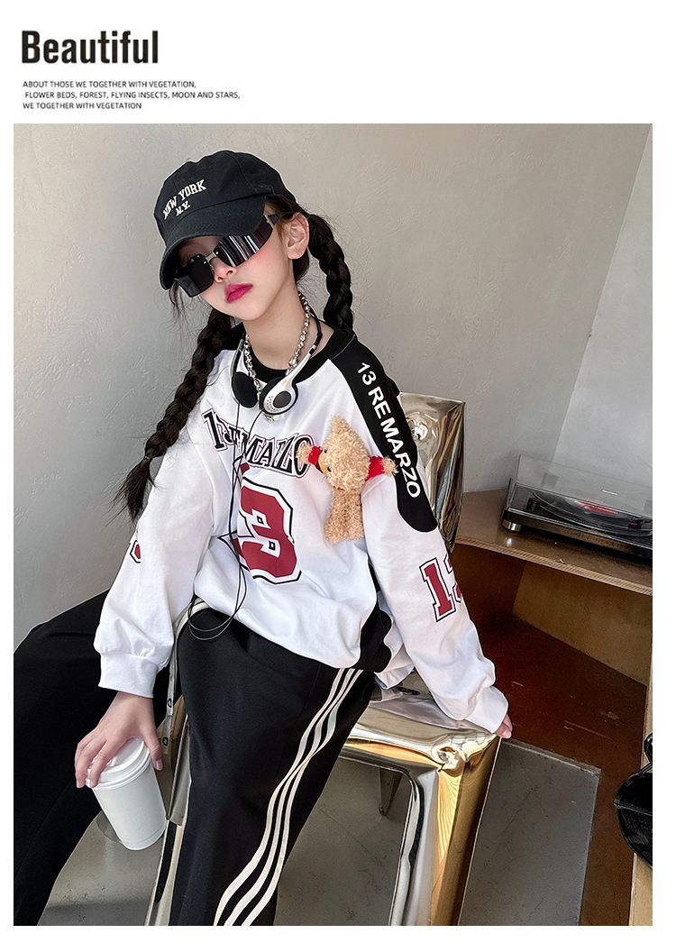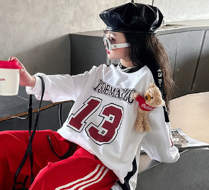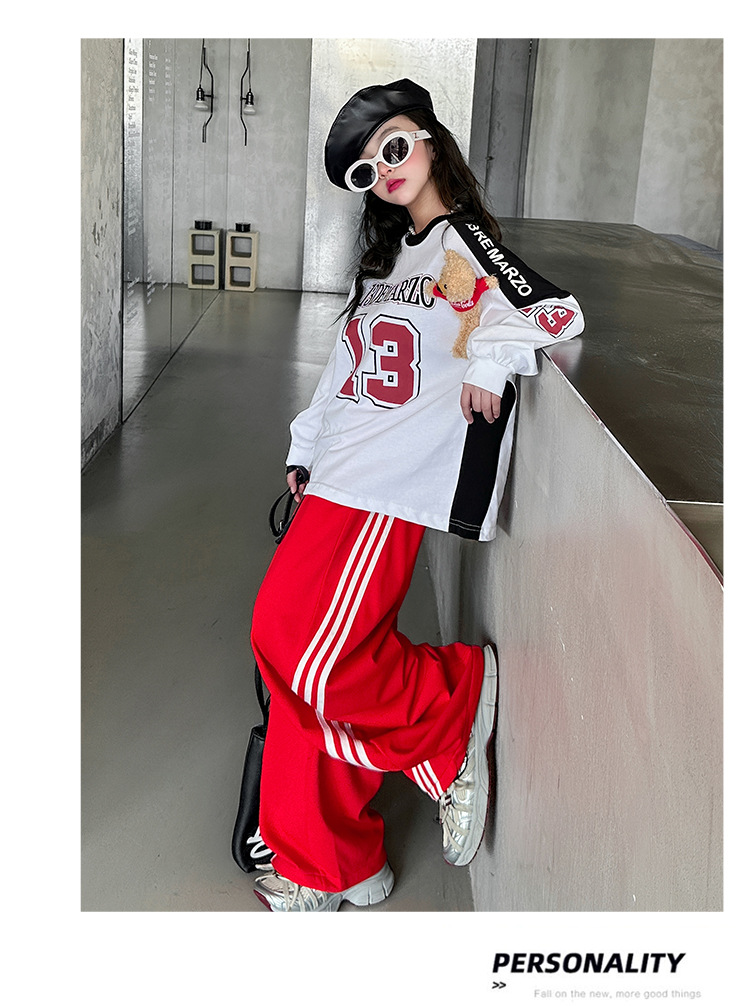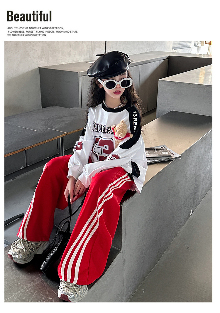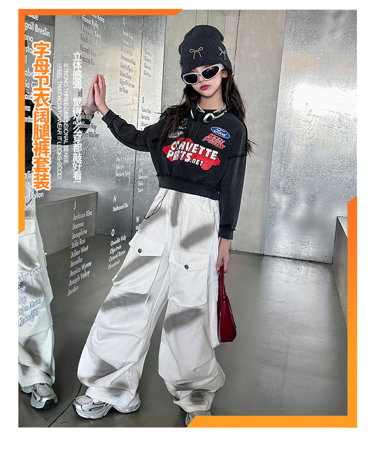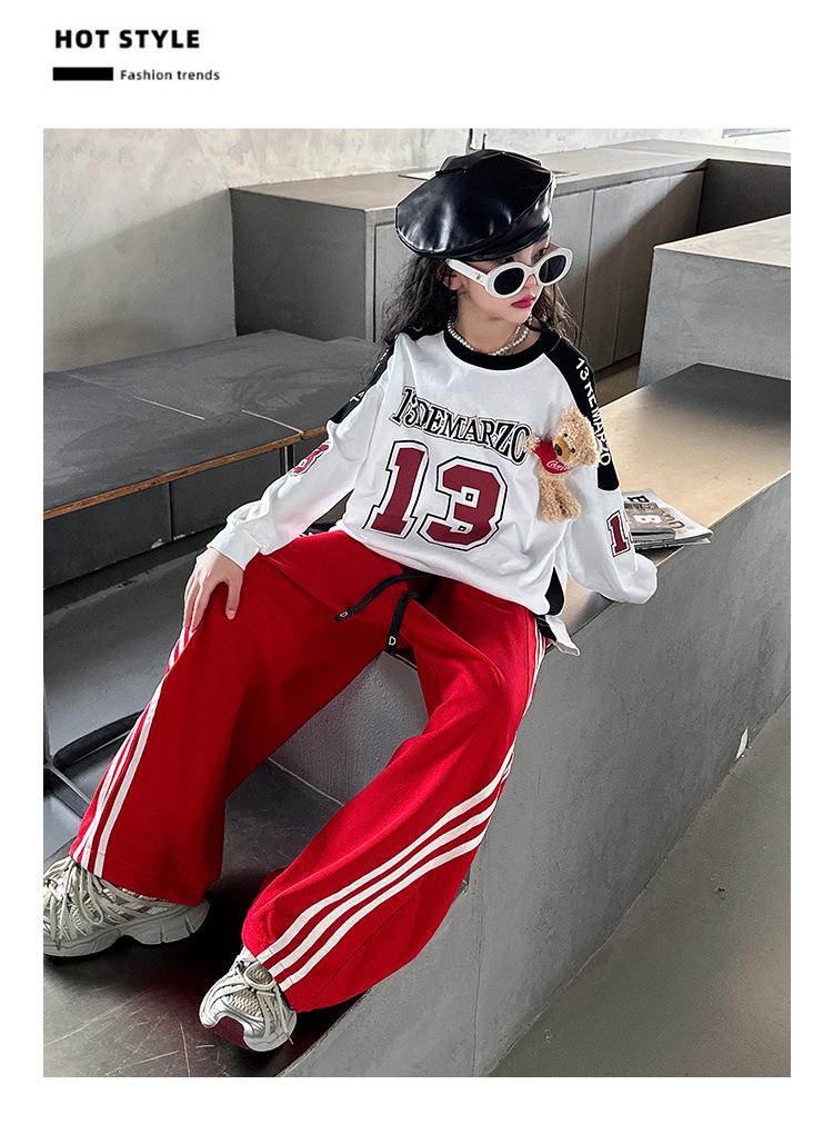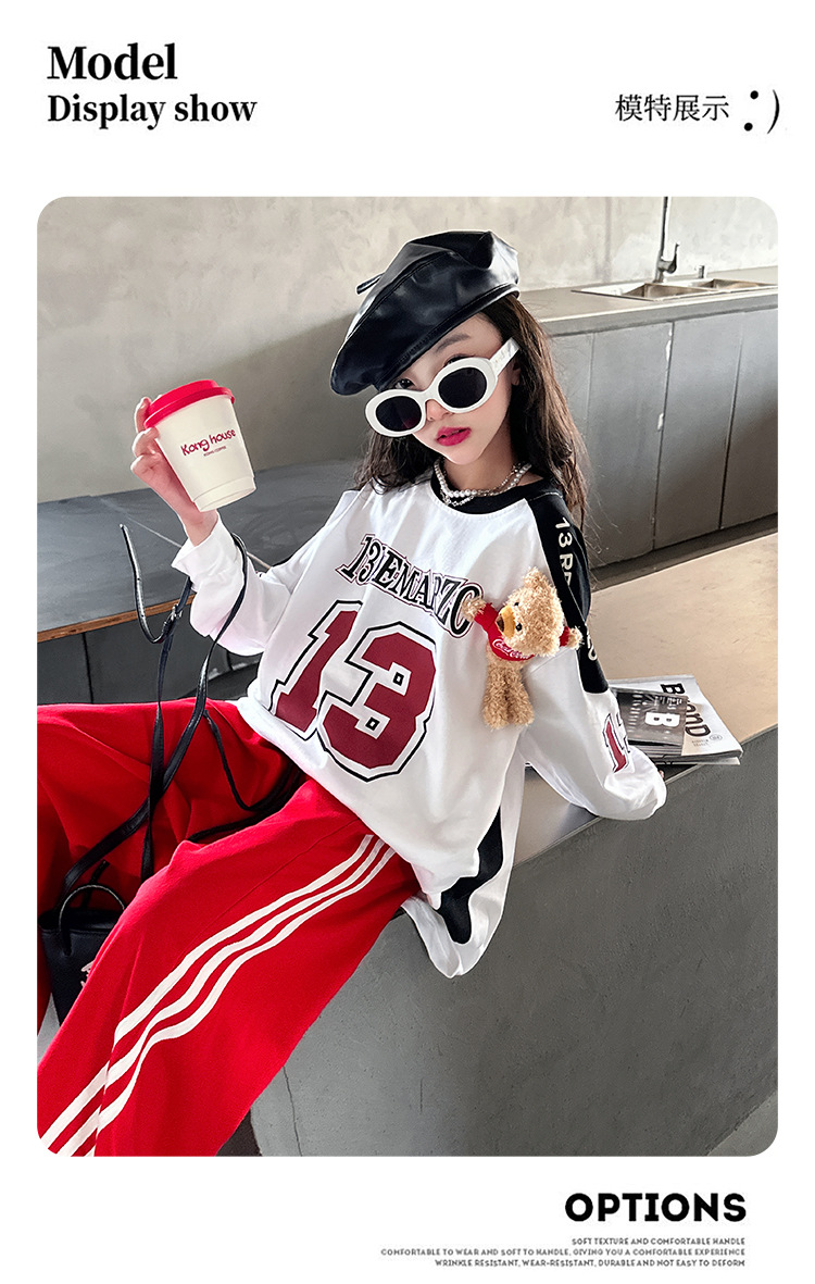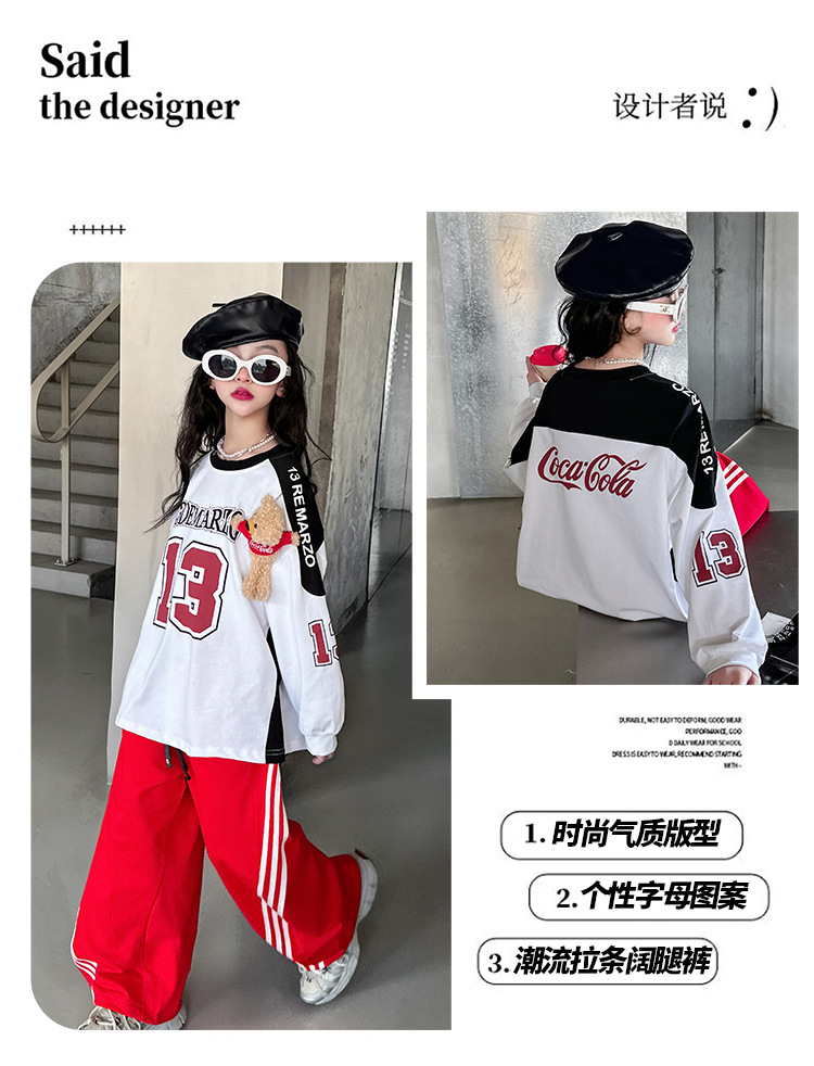 소녀의 달콤한 쿨 세트 봄과 가을 어린이 재즈 댄스 티셔츠 소녀 댄스 테이프 가을 착용 스포츠 투피스 세트스토어 가기