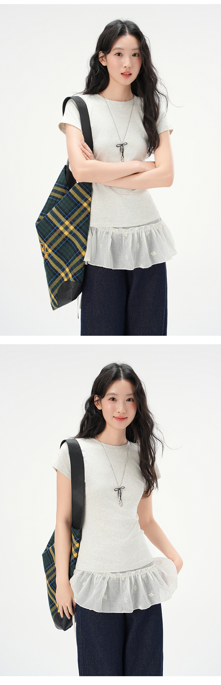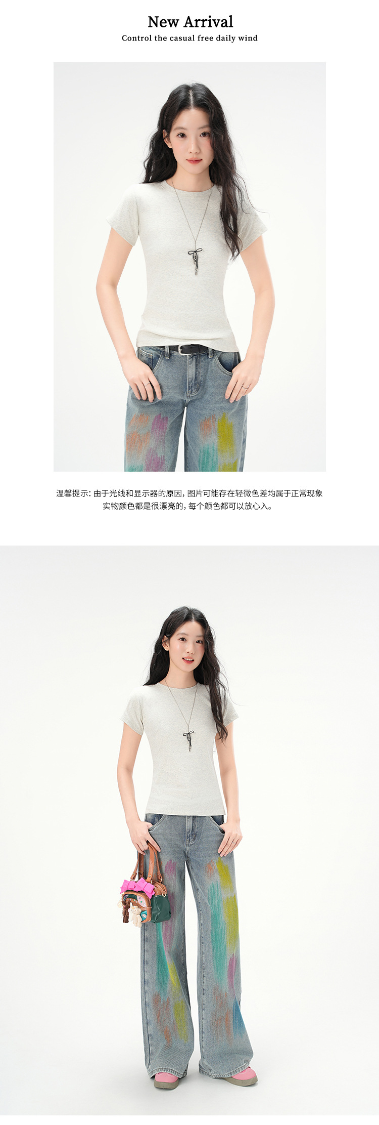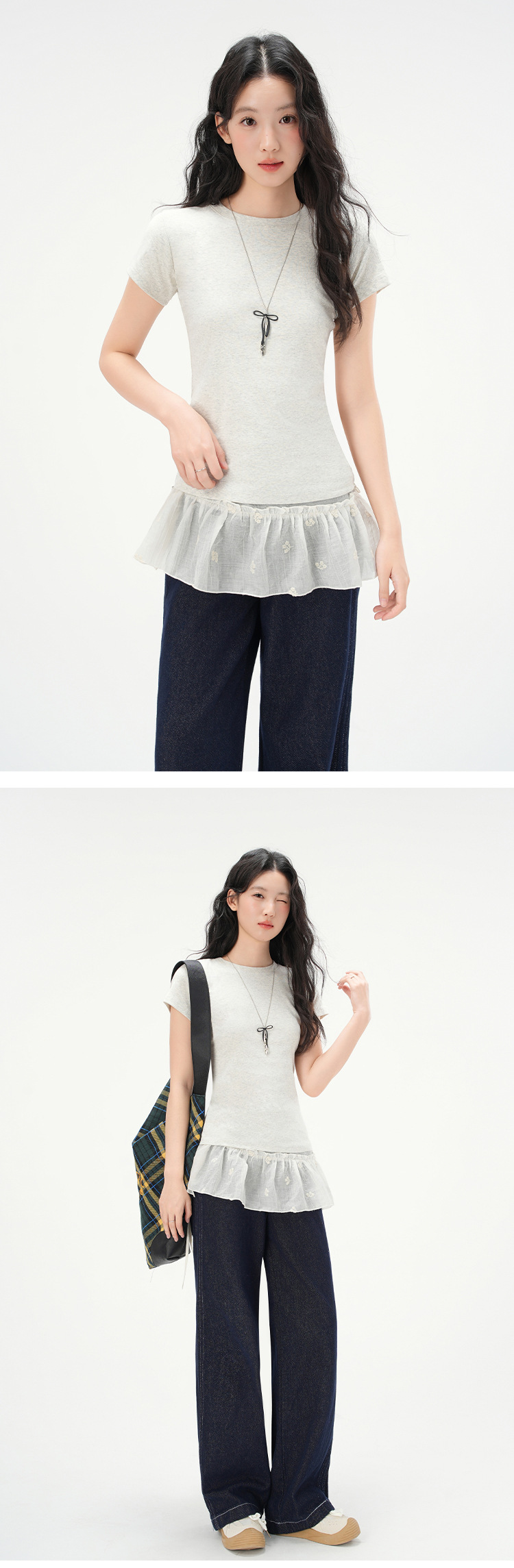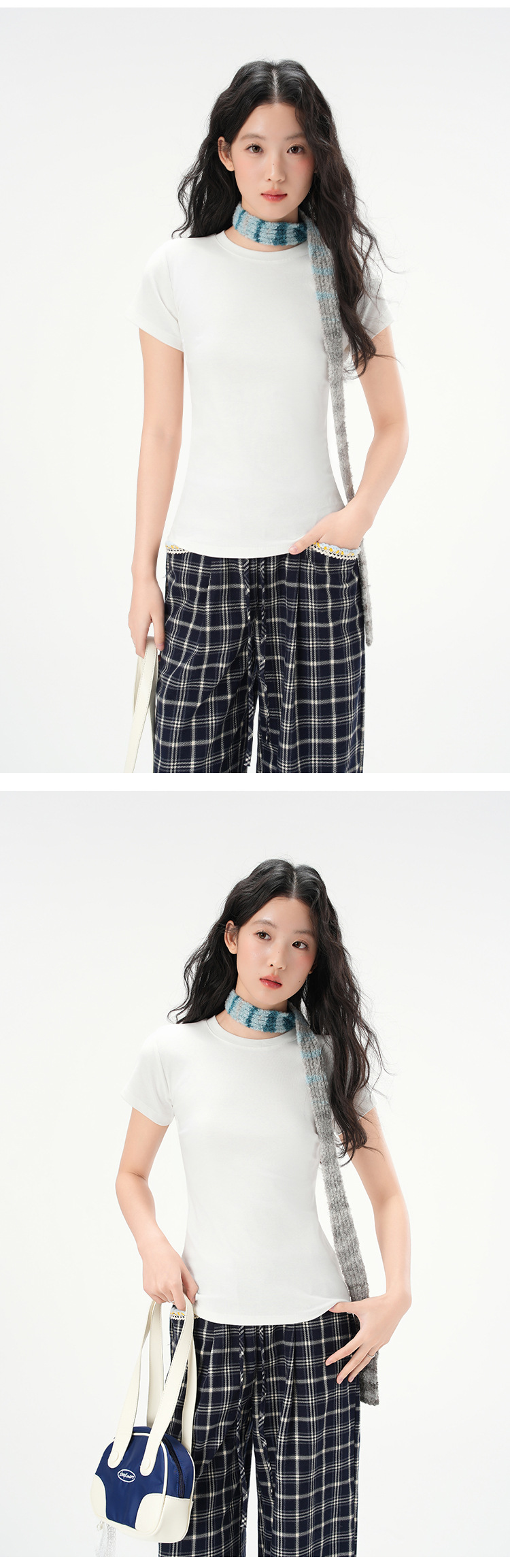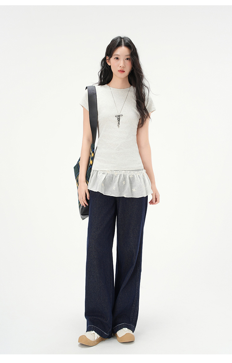 지유 2026 여름 라운드넥 기본 스타일 순면 오른쪽 어깨 티셔츠 여성용 미국 스타일 슬림핏 반팔 상의스토어 가기