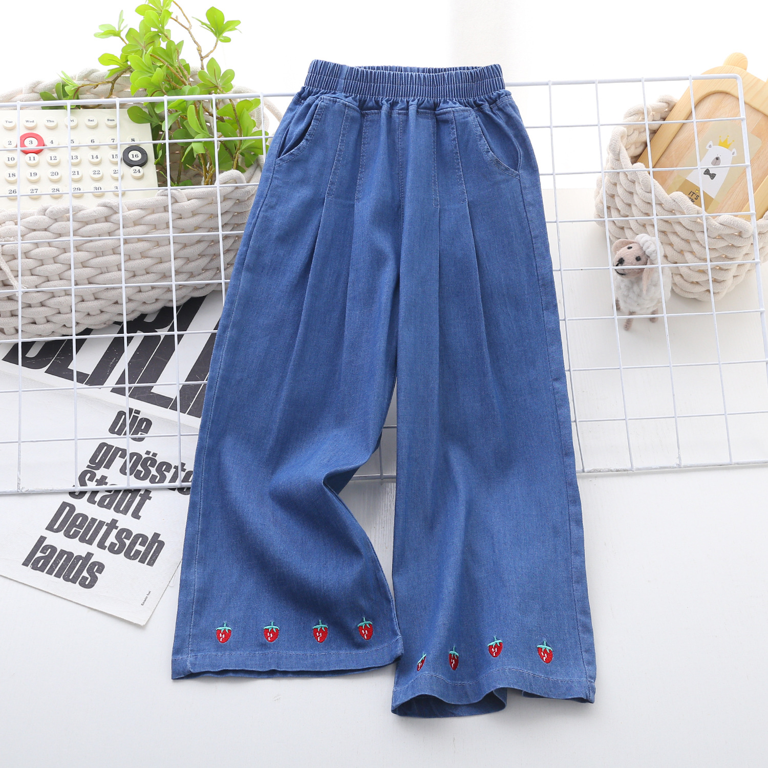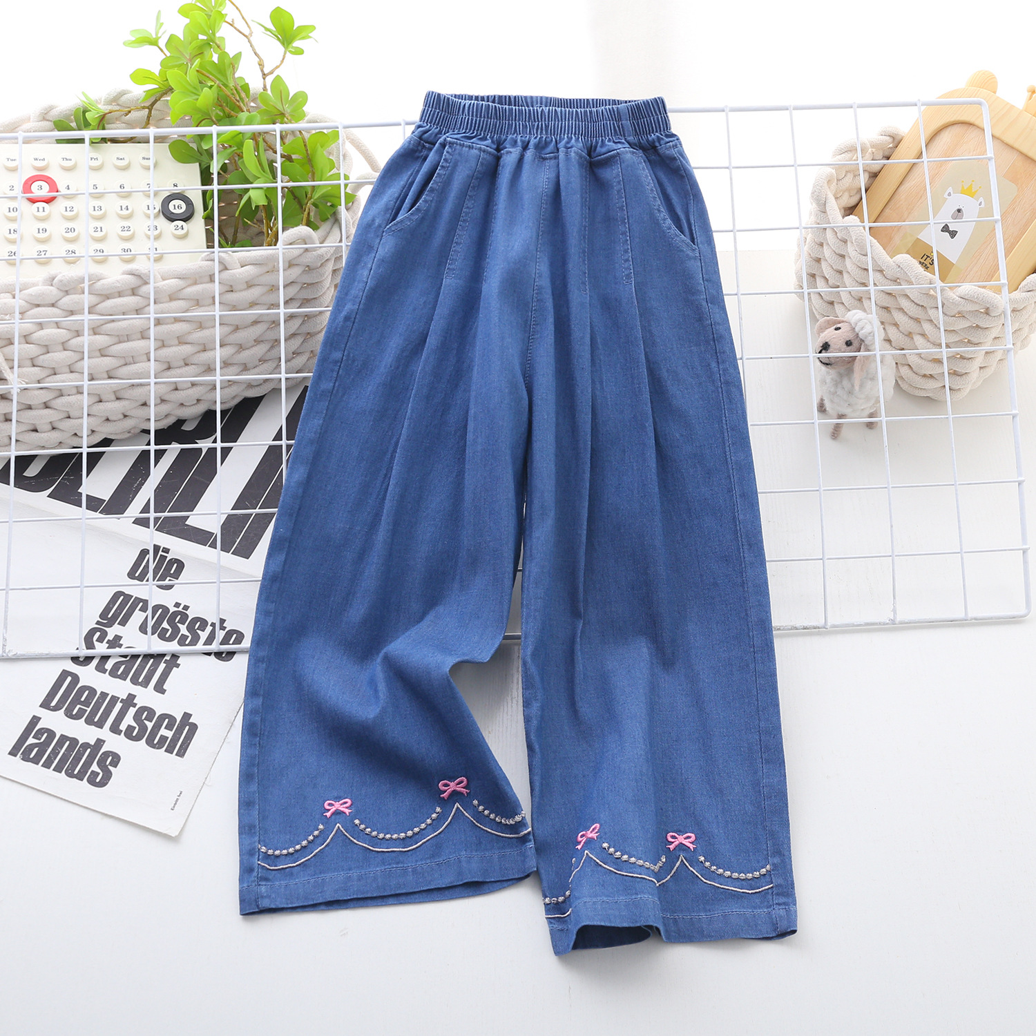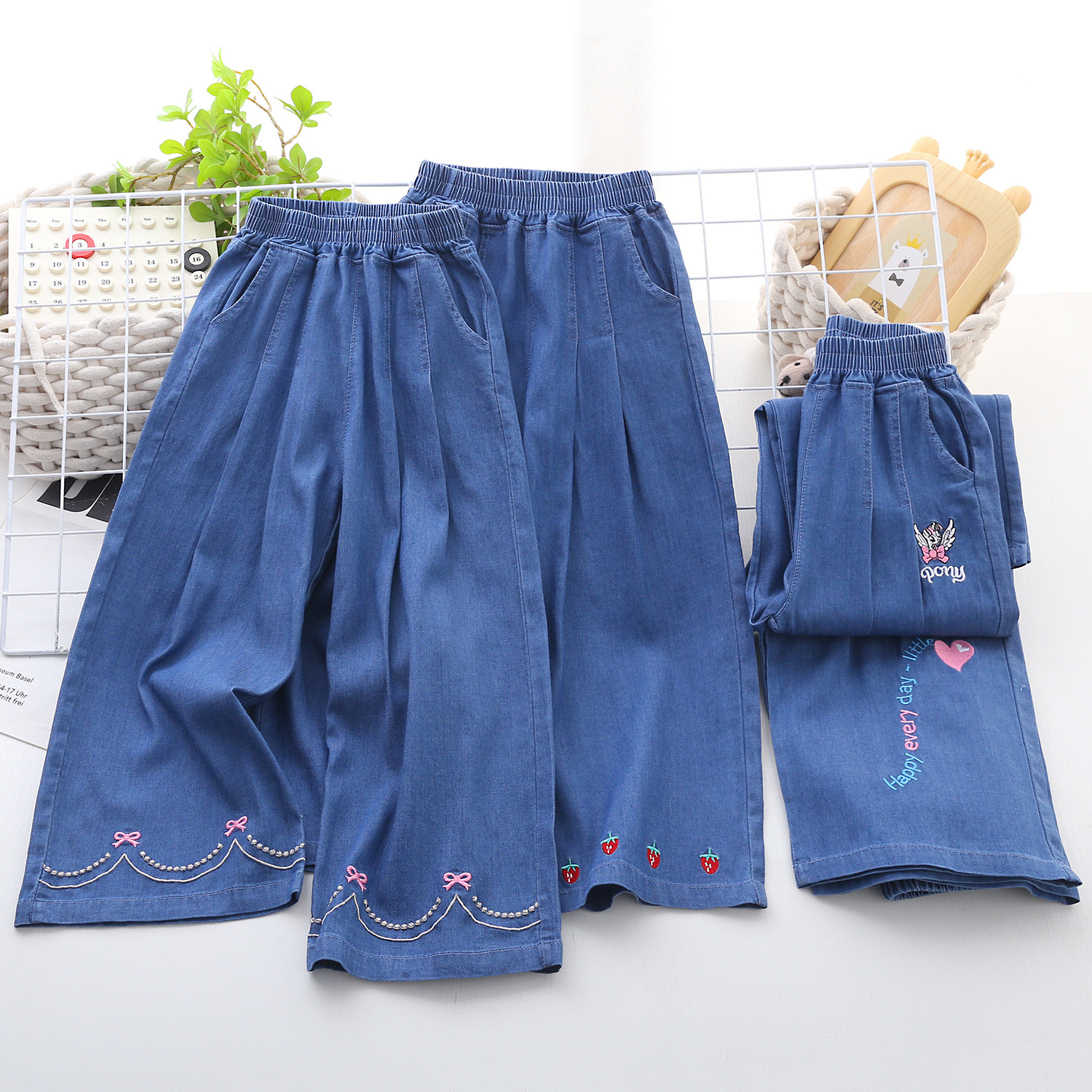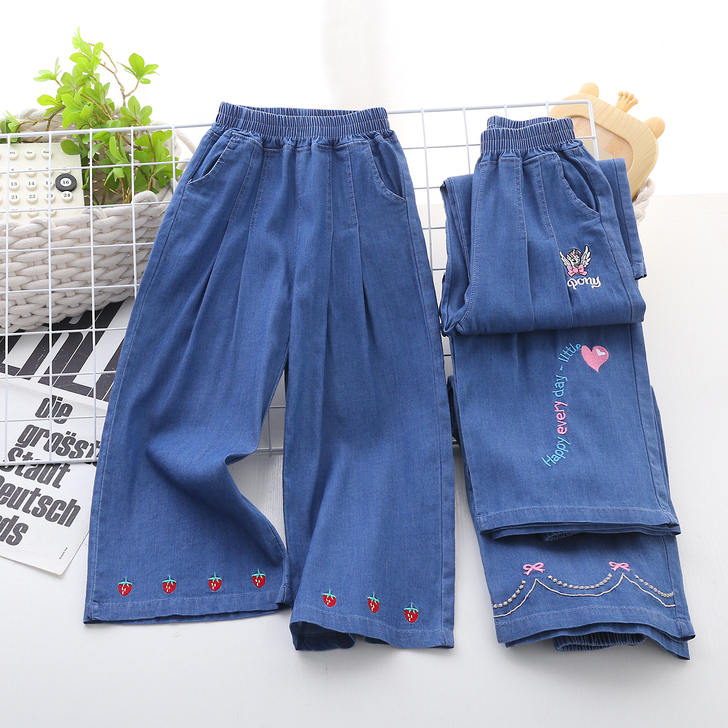 2025 년 여름 소녀 텐셀 데님 넓은 다리 바지 100-170 넓은 다리 바지 소녀 여름 청바지스토어 가기