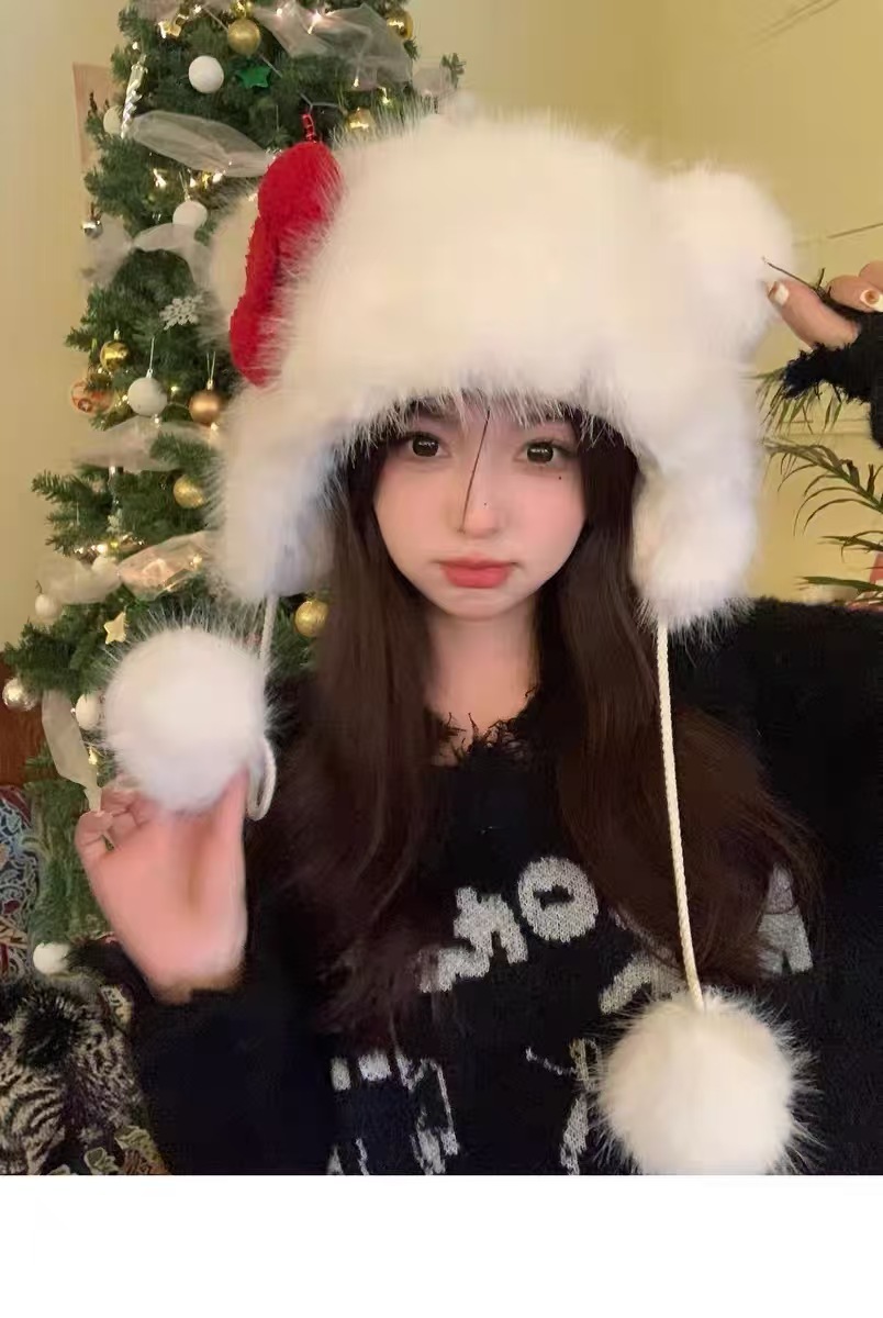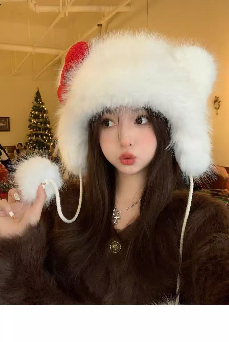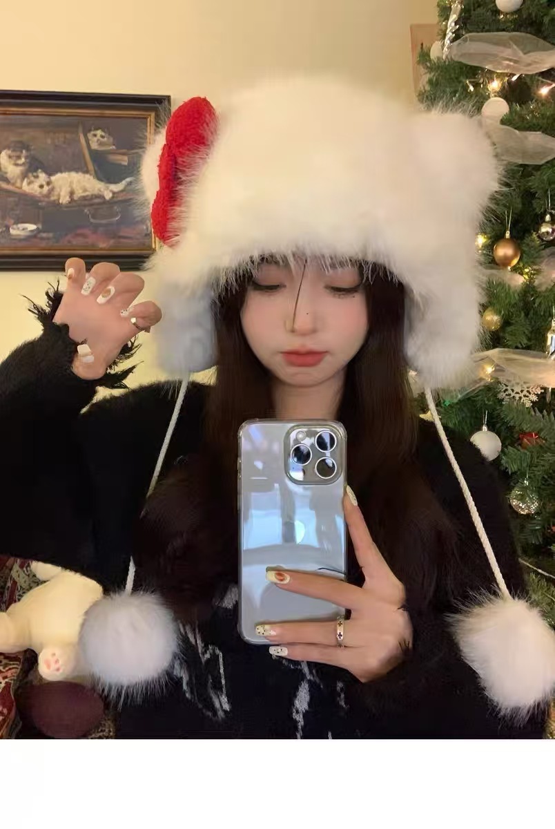 2025 새로운 플러시 모자 한국 스타일 헬로 키티 리본 모자 귀여운 동물 패션 따뜻한 KT 고양이 소녀
