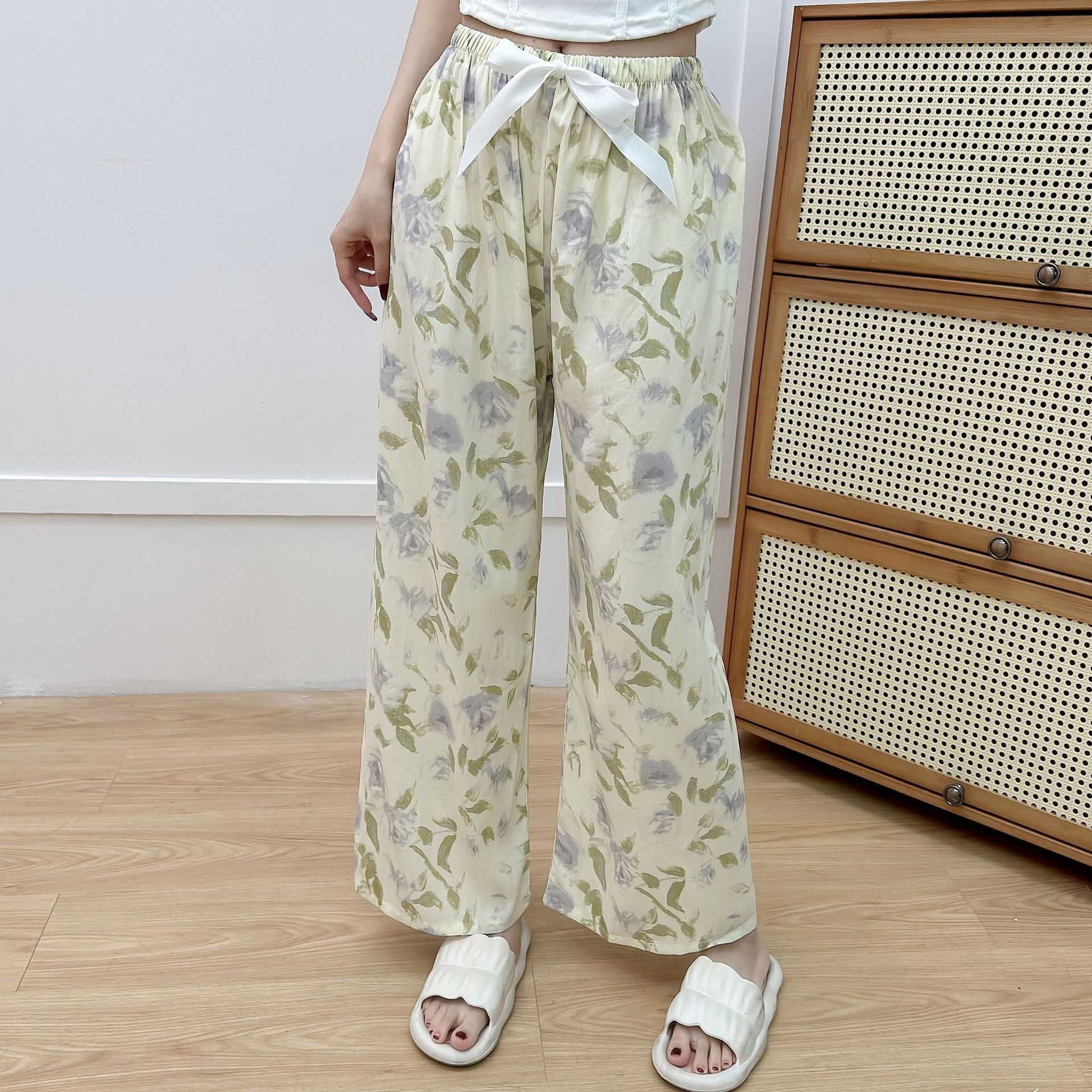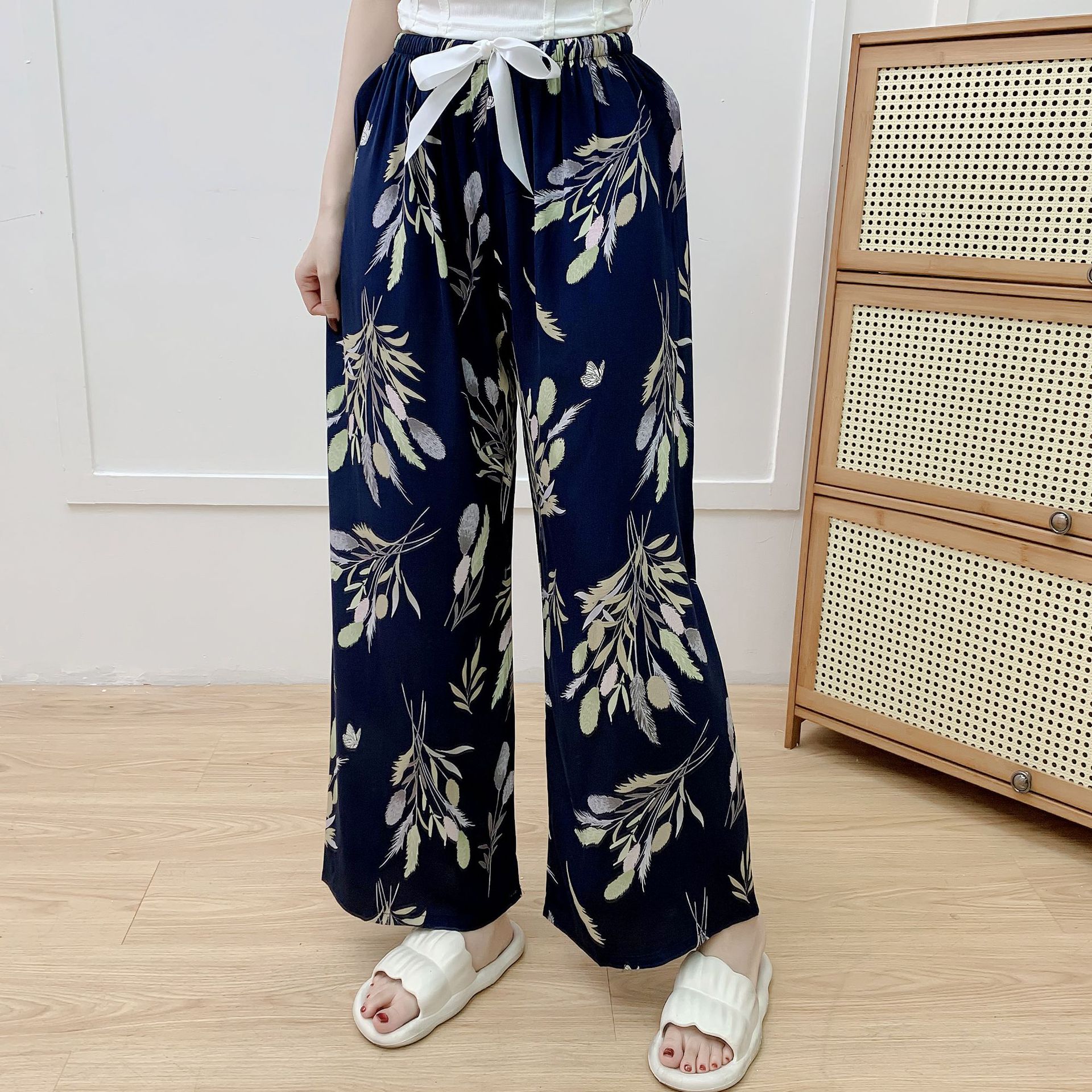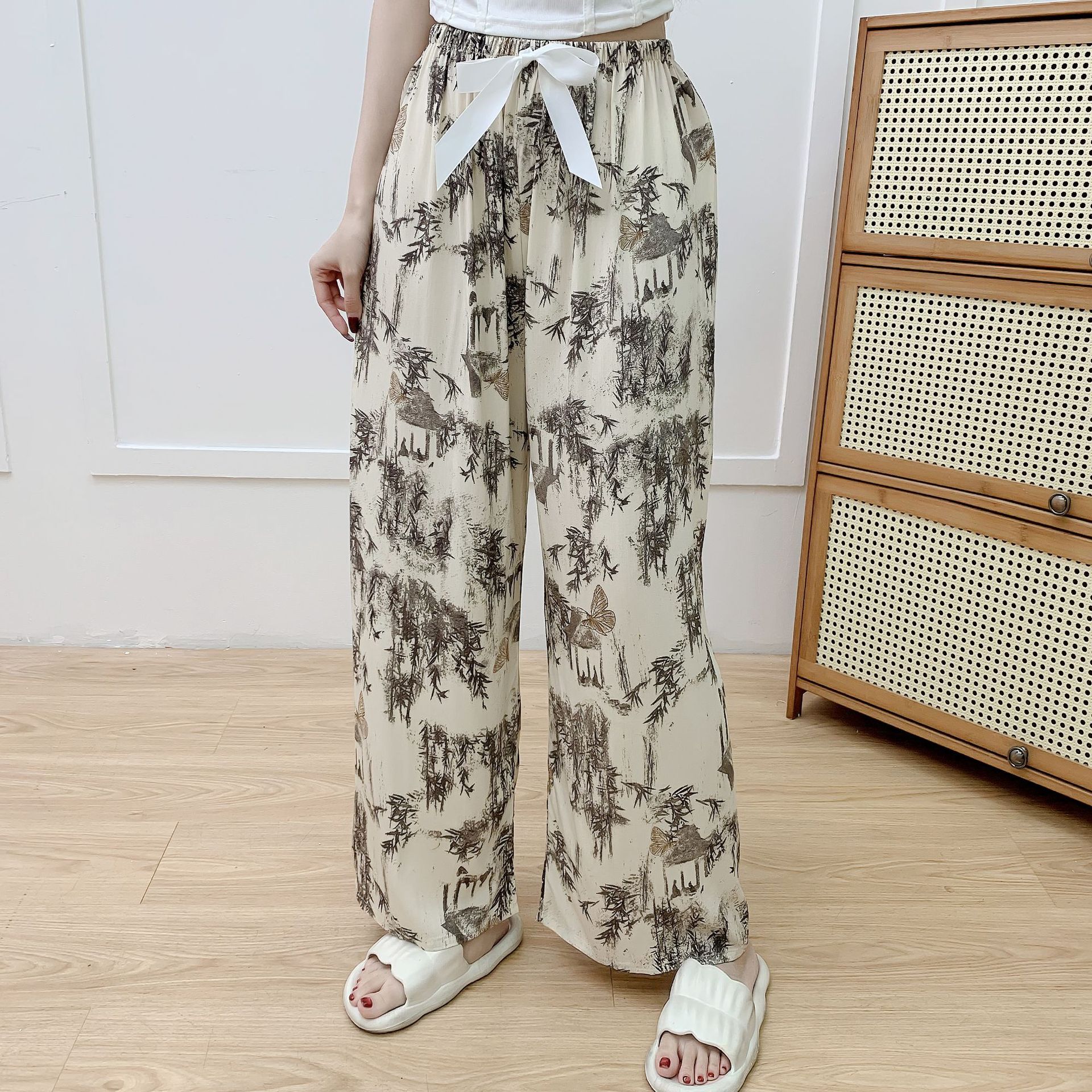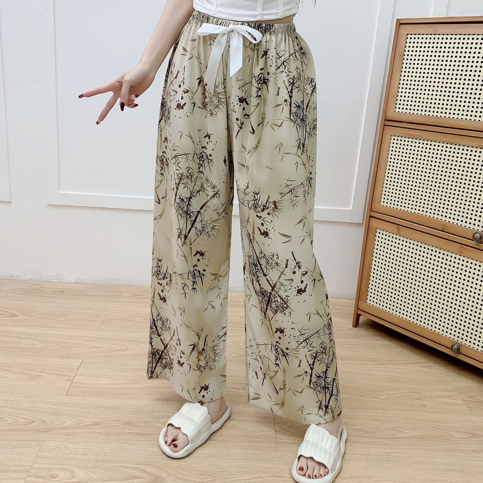 면 실크 파자마 바지 여성의 여름 새로운 인터넷 빨간 바지 인공 면 얇은 캐주얼 바지 겉옷 안티 모기 플러스 사이즈 홈 바지스토어 가기