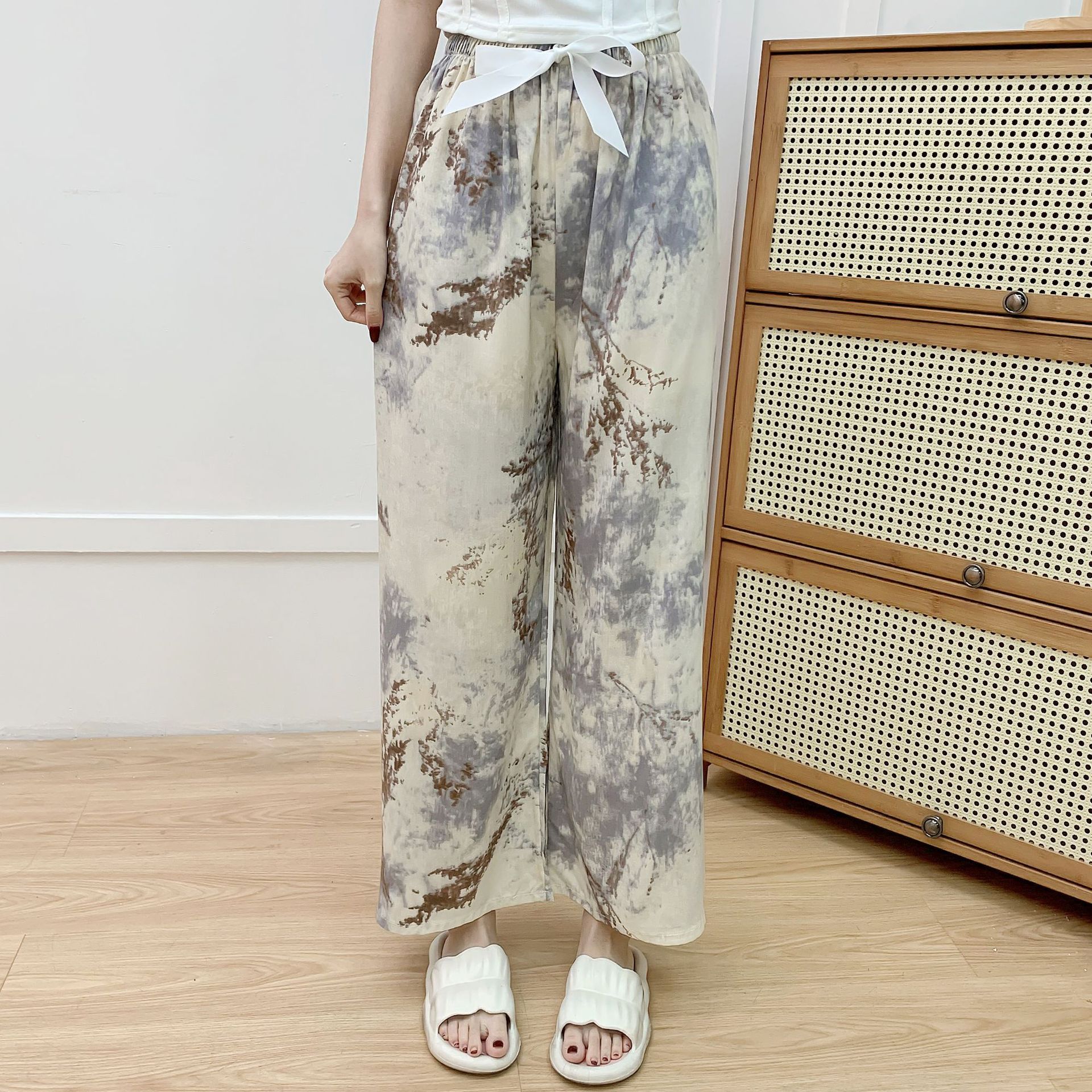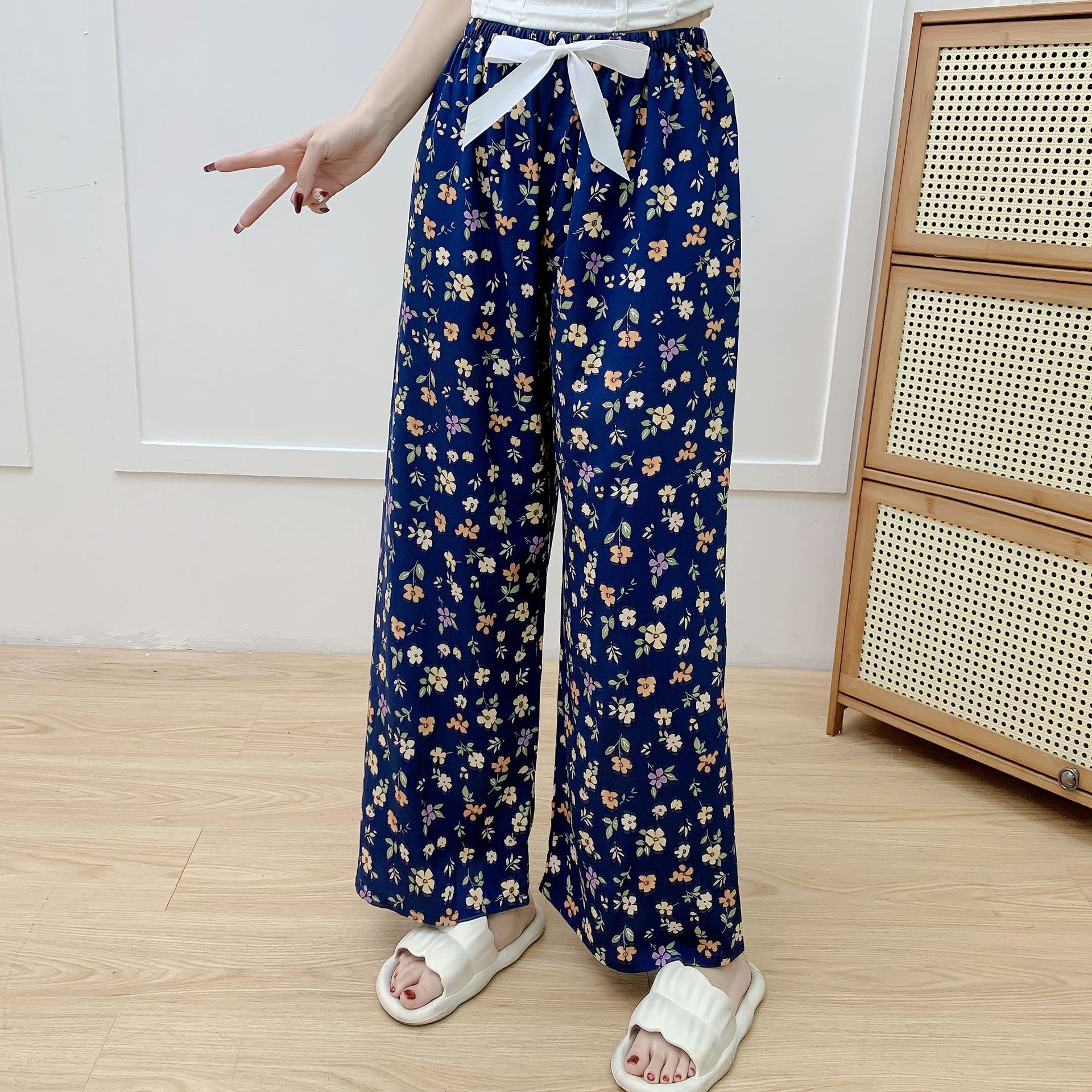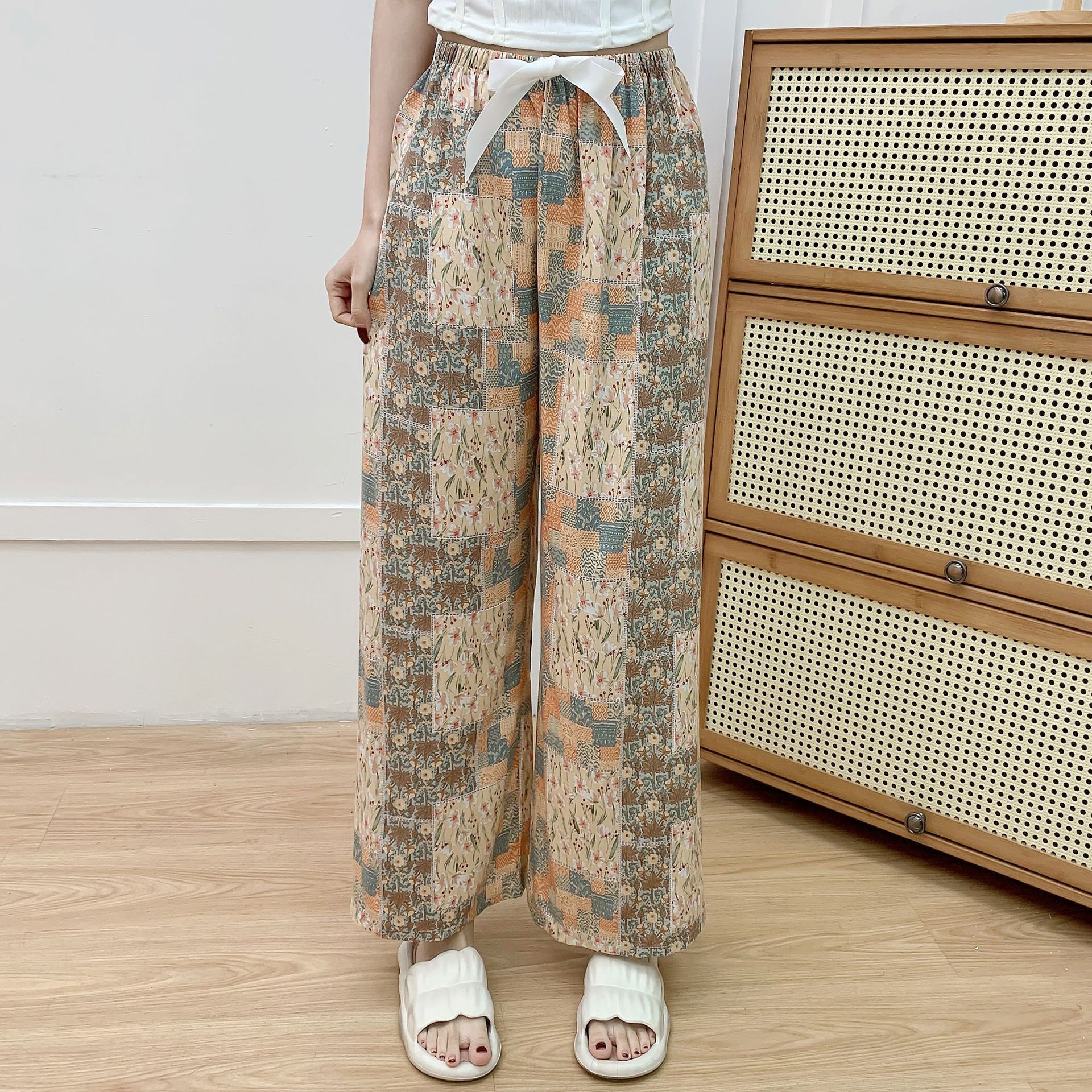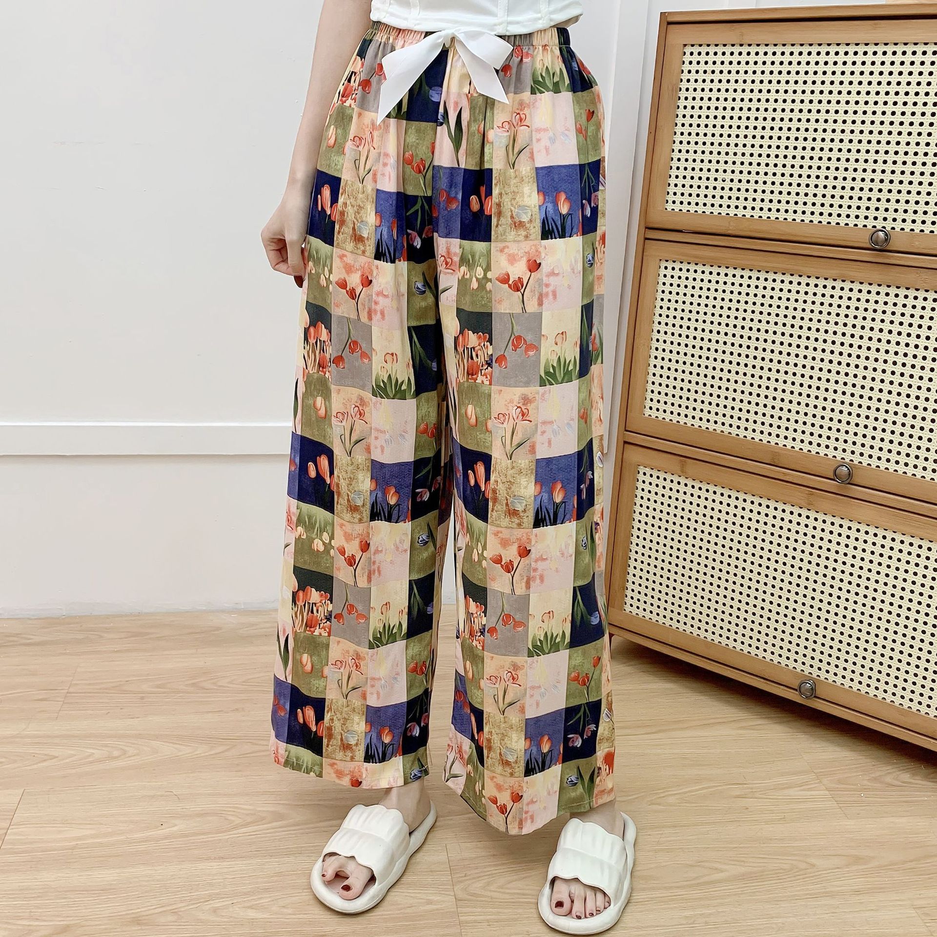 면 실크 파자마 바지 여성의 여름 새로운 인터넷 빨간 바지 인공 면 얇은 캐주얼 바지 겉옷 안티 모기 플러스 사이즈 홈 바지스토어 가기