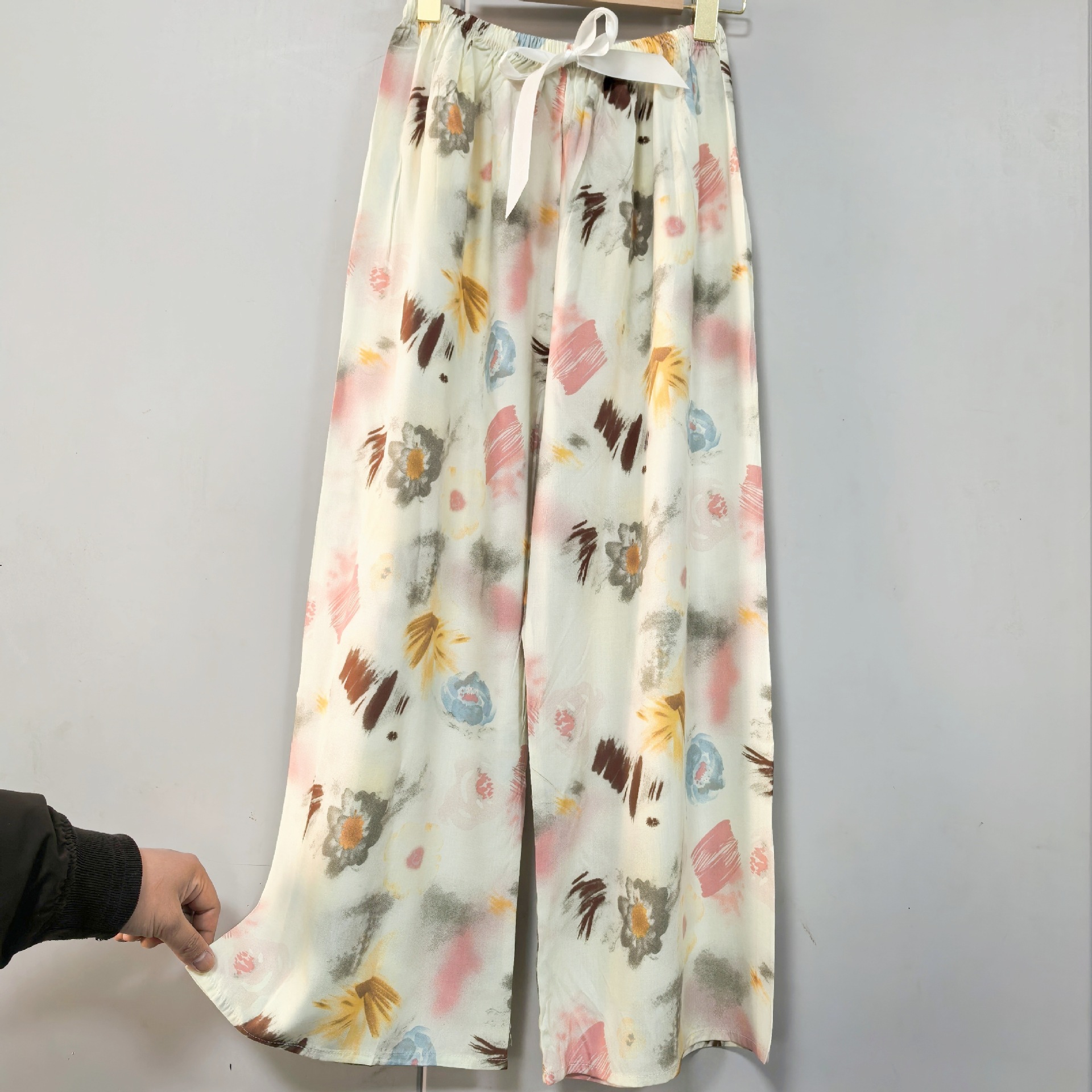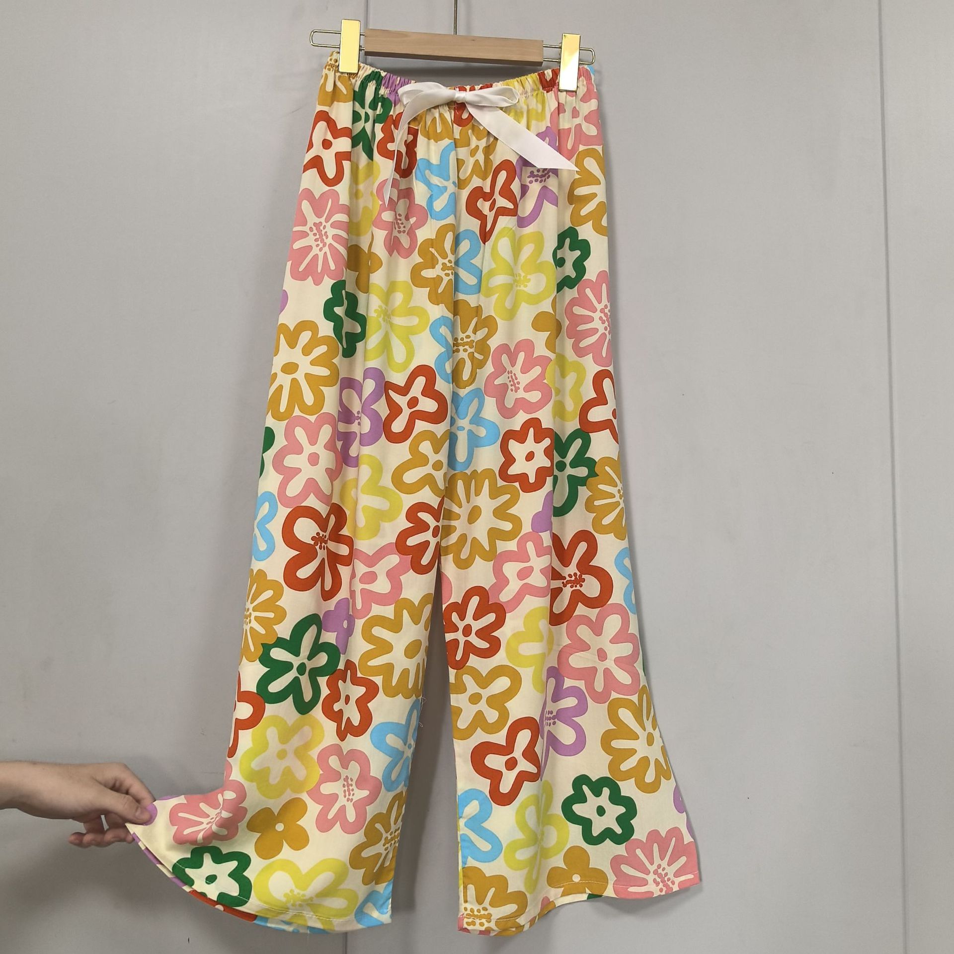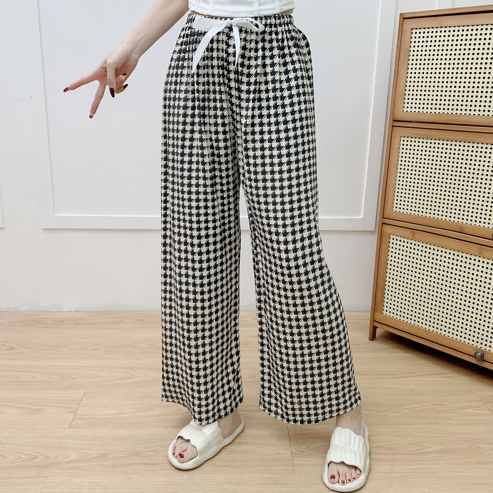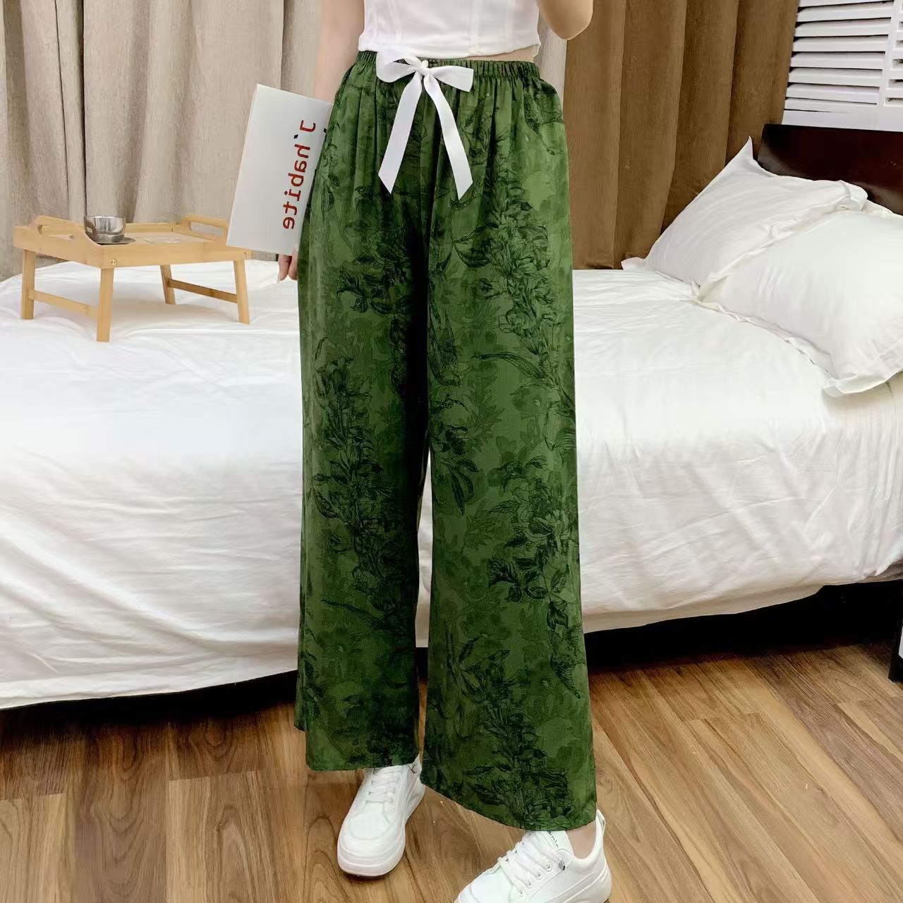 면 실크 파자마 바지 여성의 여름 새로운 인터넷 빨간 바지 인공 면 얇은 캐주얼 바지 겉옷 안티 모기 플러스 사이즈 홈 바지스토어 가기