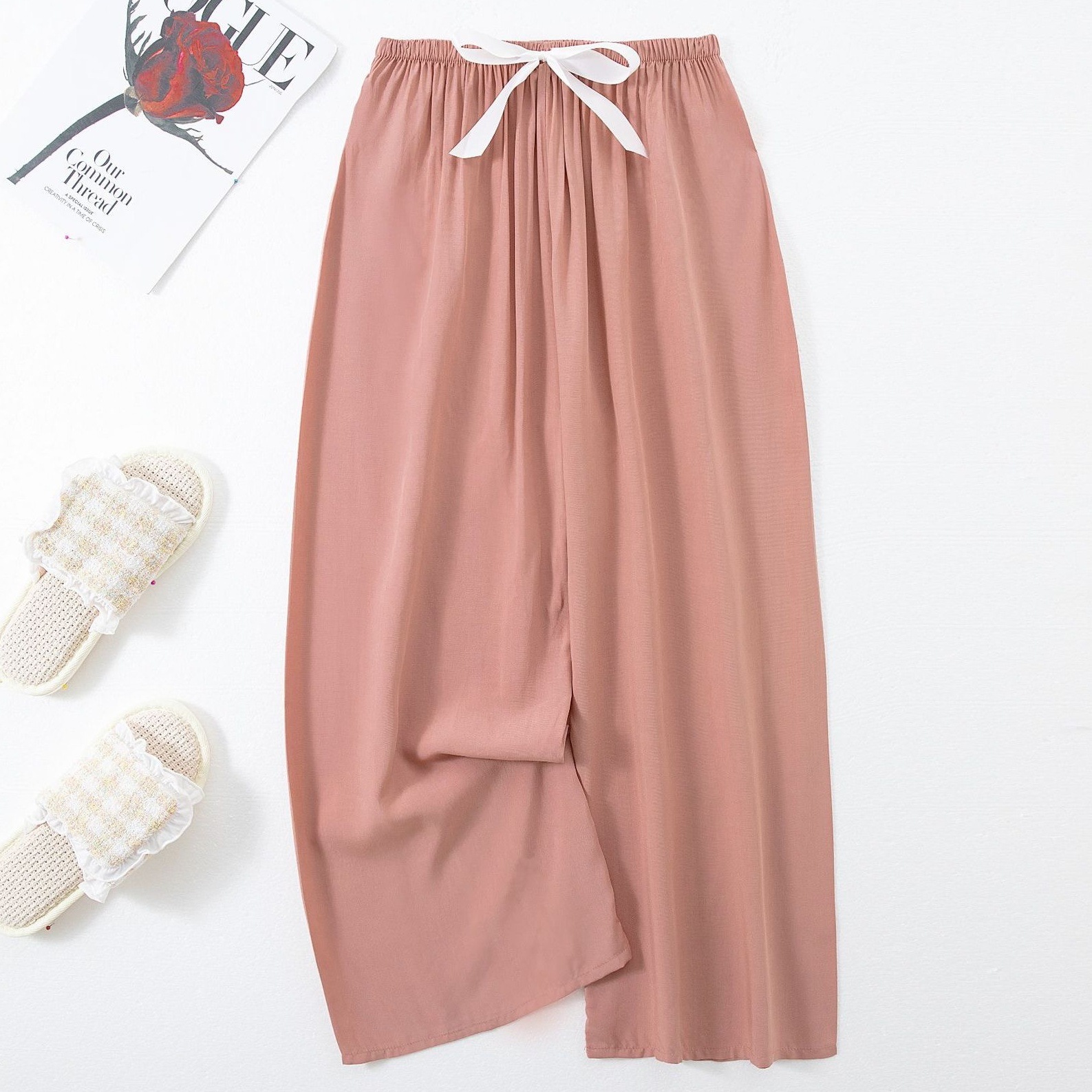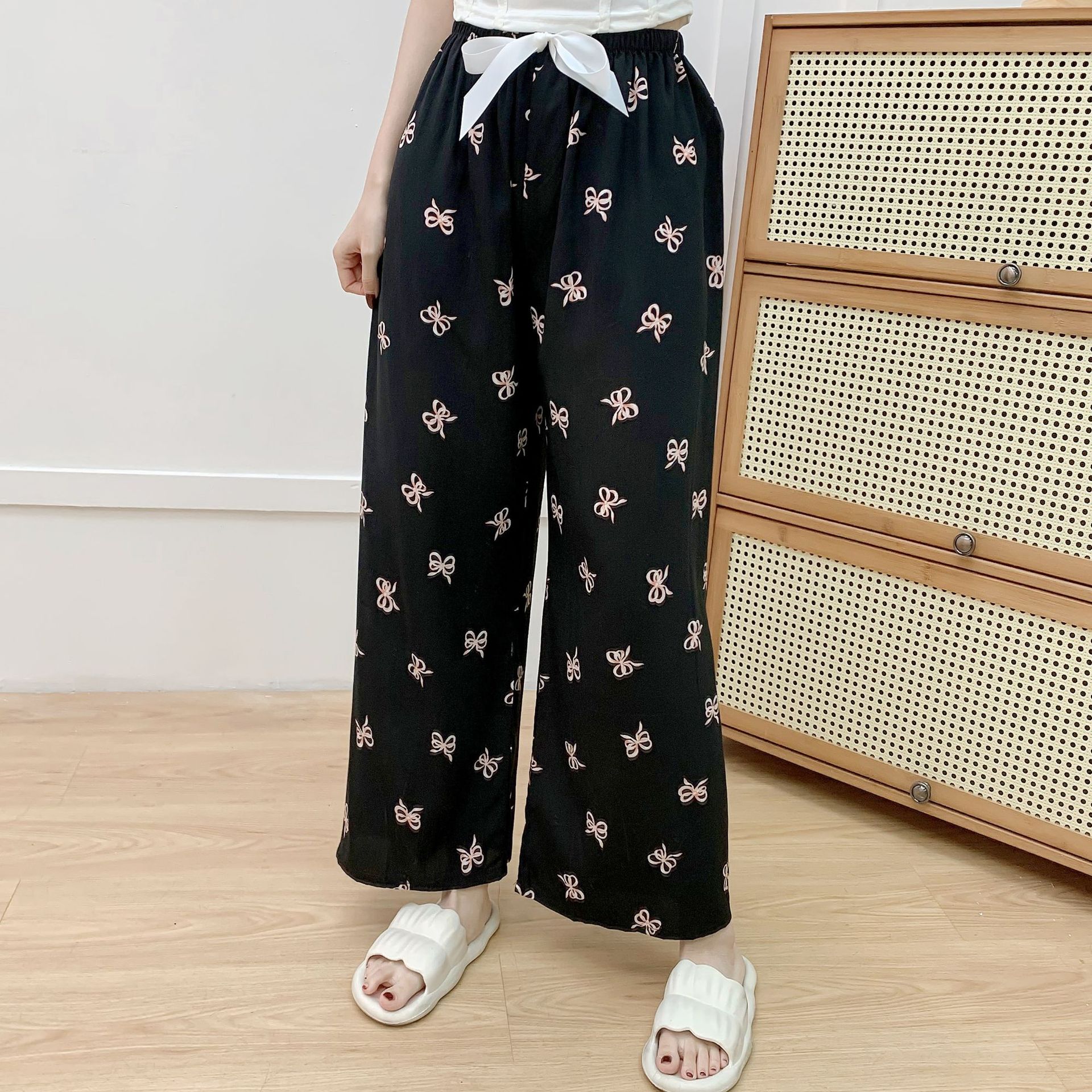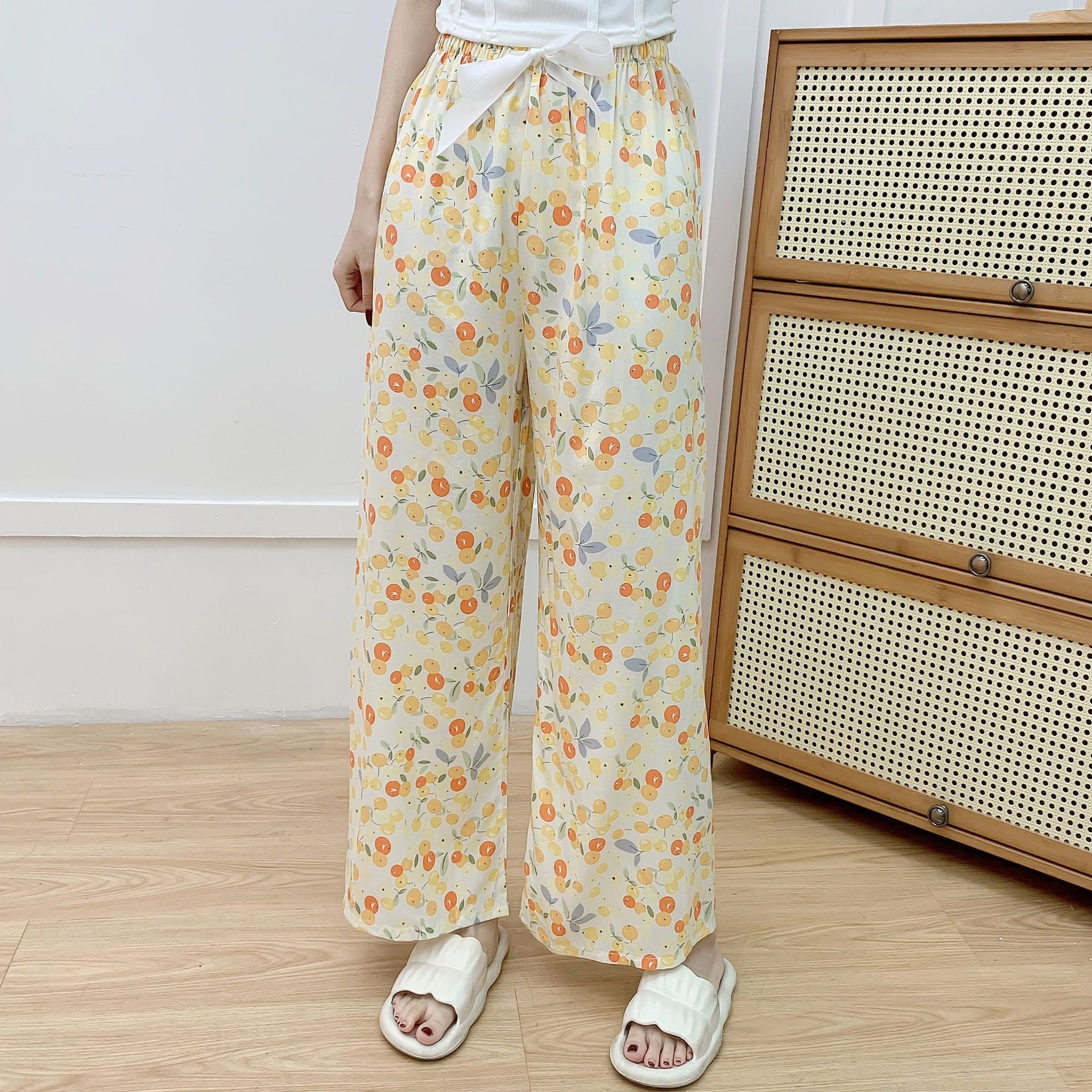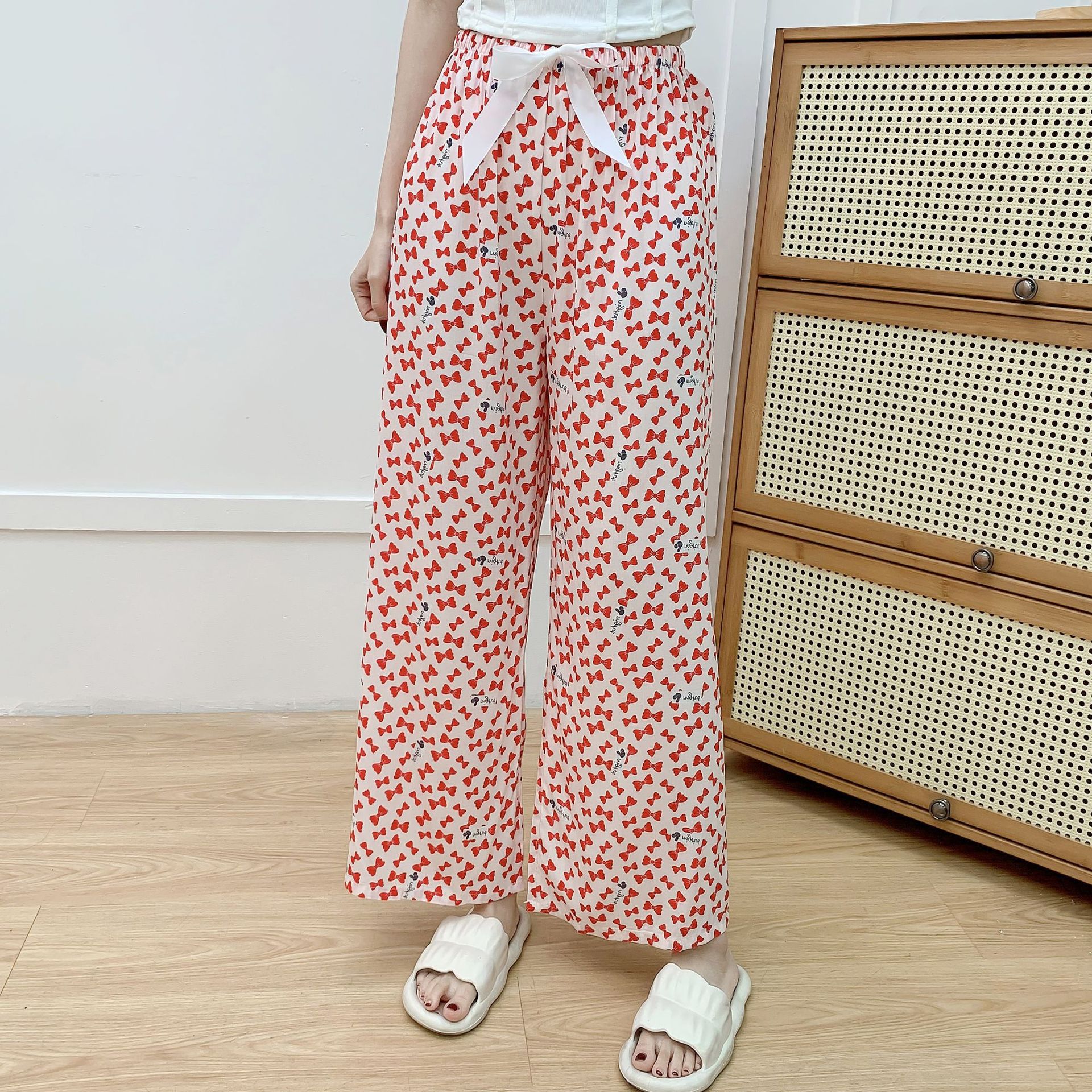 면 실크 파자마 바지 여성의 여름 새로운 인터넷 빨간 바지 인공 면 얇은 캐주얼 바지 겉옷 안티 모기 플러스 사이즈 홈 바지