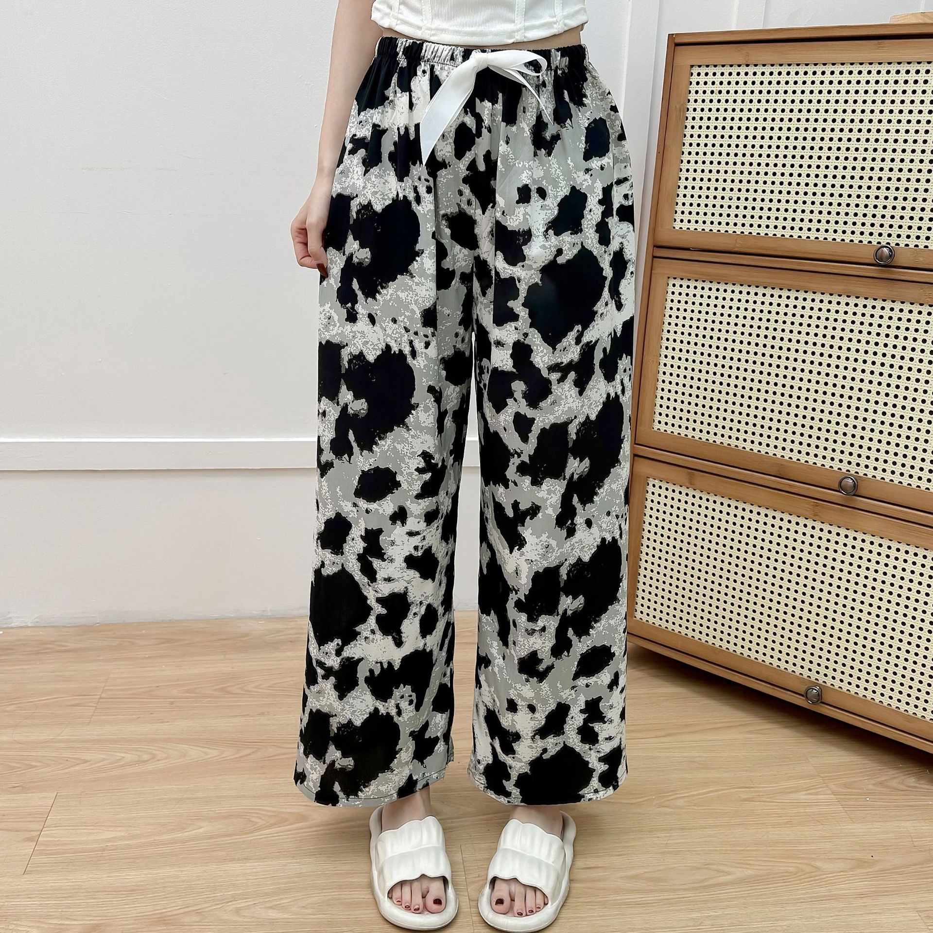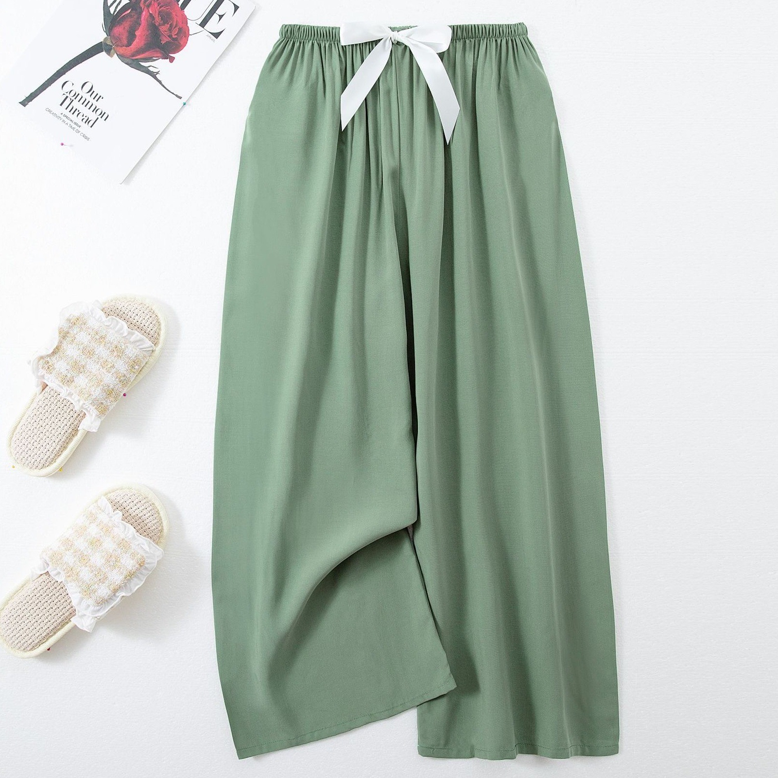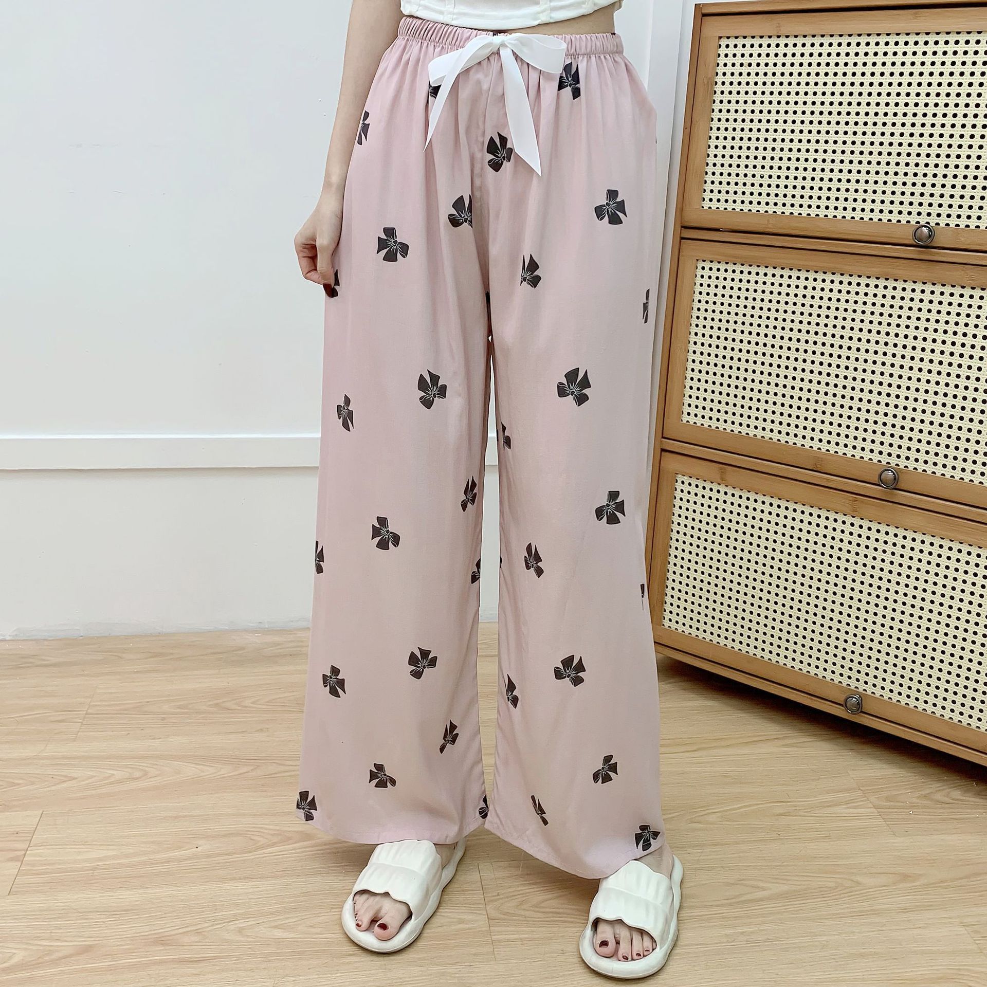 면 실크 파자마 바지 여성의 여름 새로운 인터넷 빨간 바지 인공 면 얇은 캐주얼 바지 겉옷 안티 모기 플러스 사이즈 홈 바지