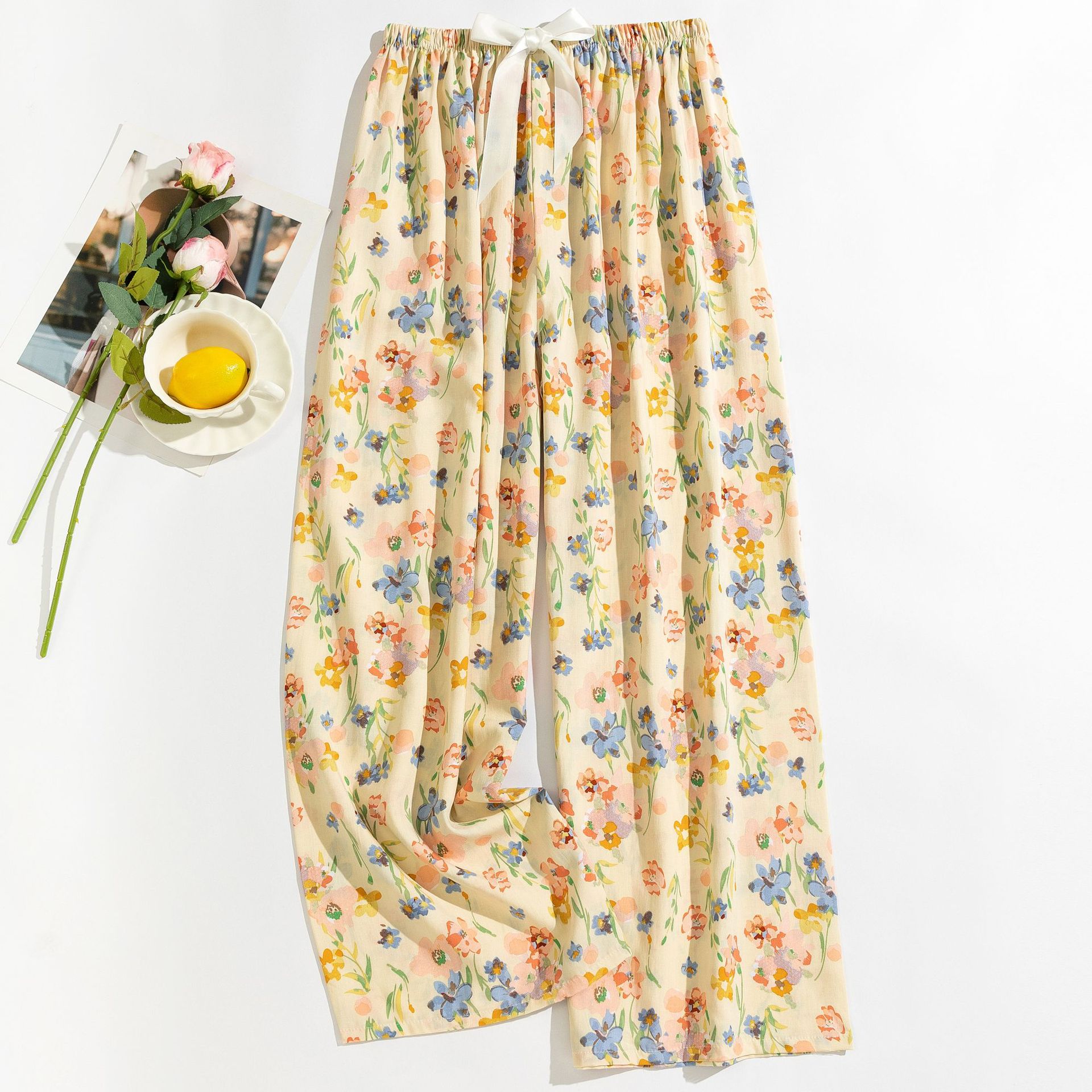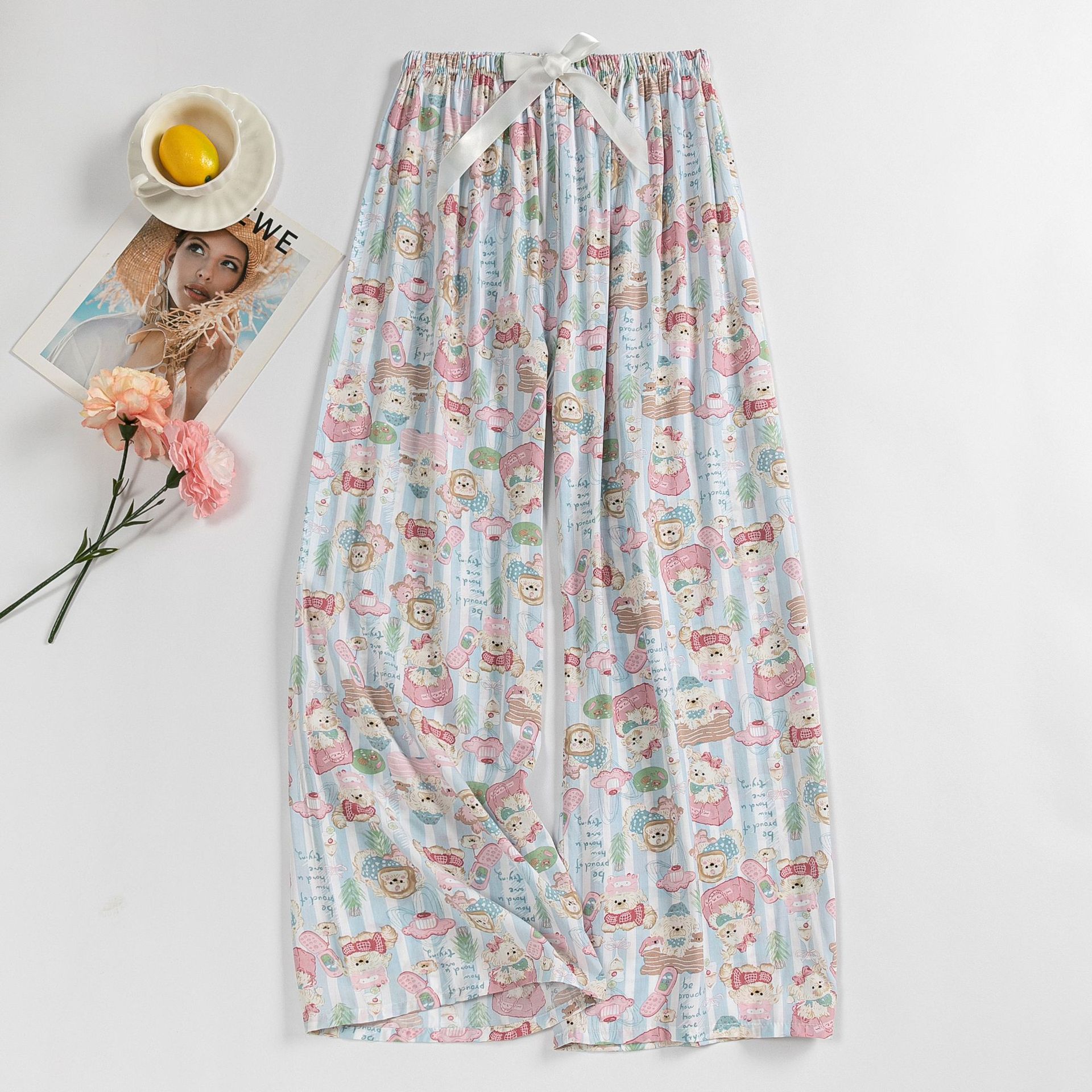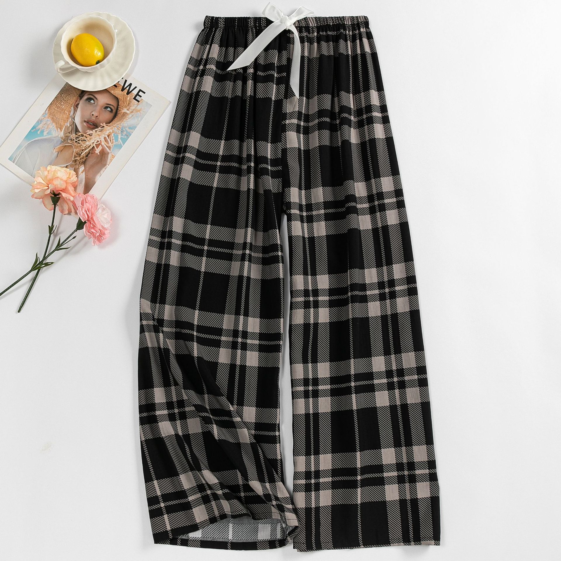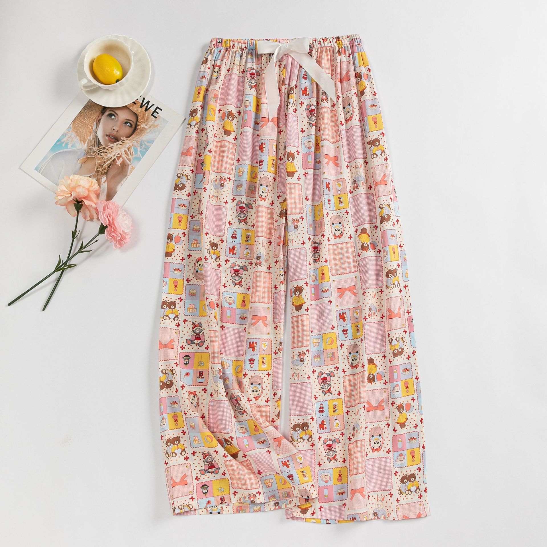 면 실크 파자마 바지 여성의 여름 새로운 인터넷 빨간 바지 인공 면 얇은 캐주얼 바지 겉옷 안티 모기 플러스 사이즈 홈 바지