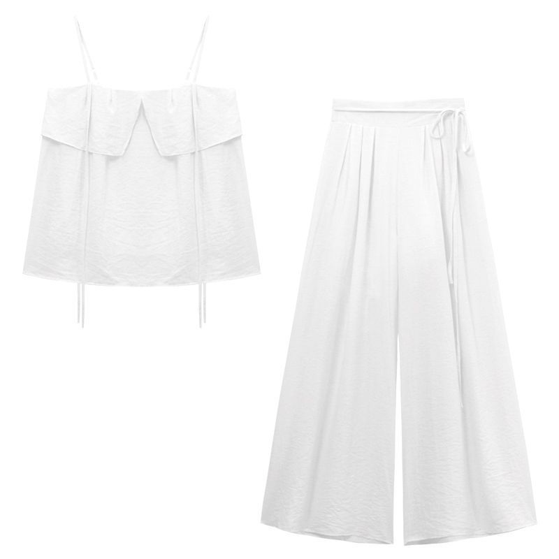 清冷系白色时尚套装女夏季2024时尚新款荷叶边吊带山本裤裙两件套