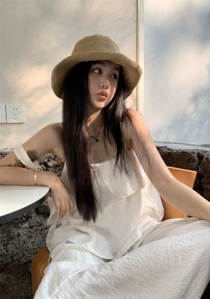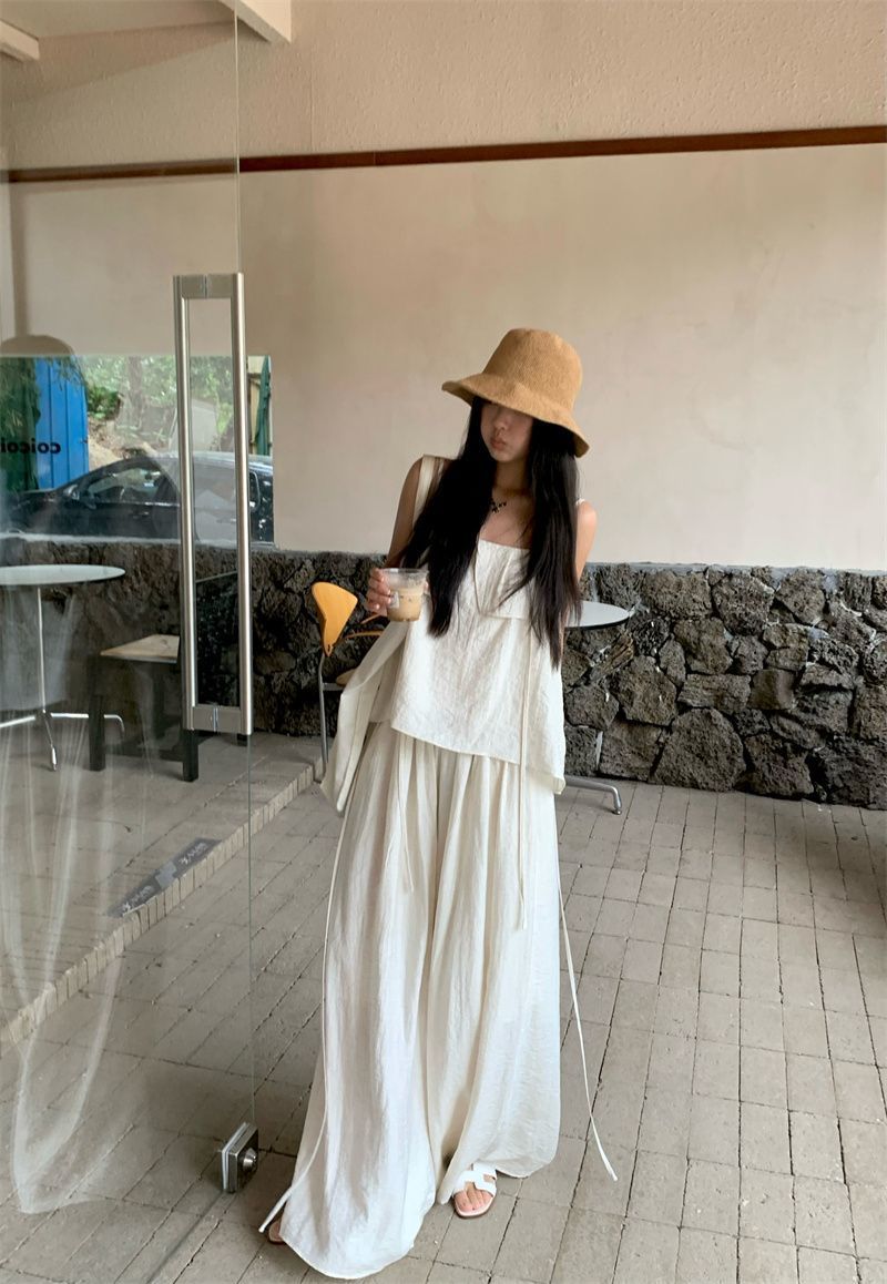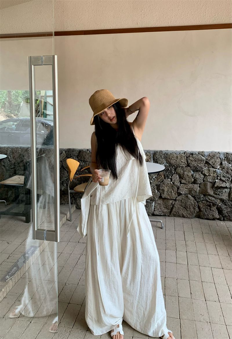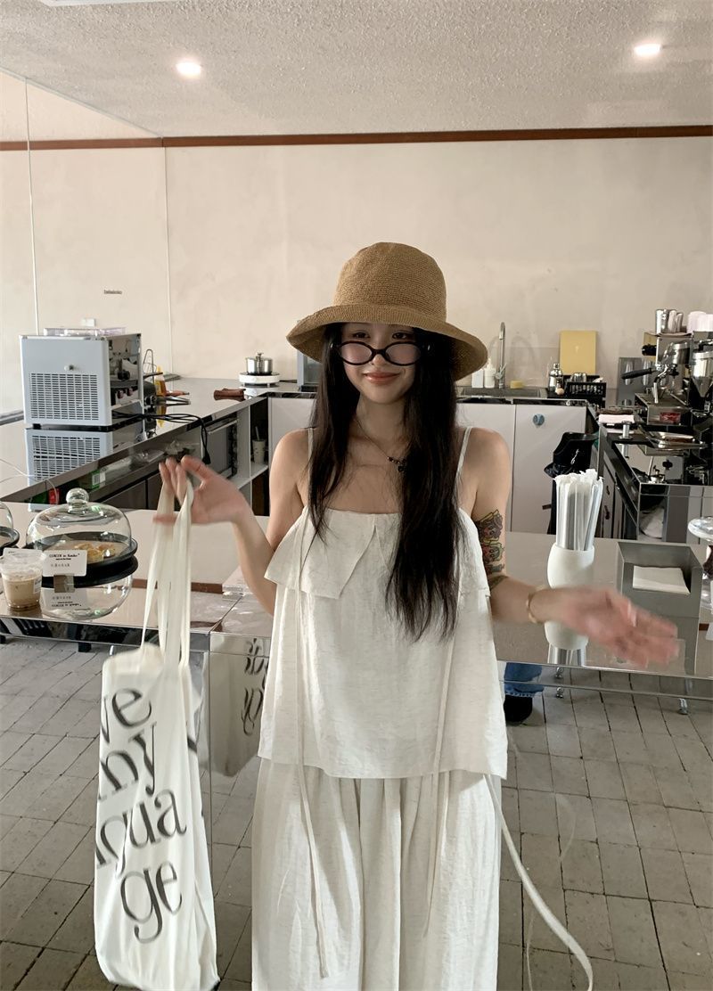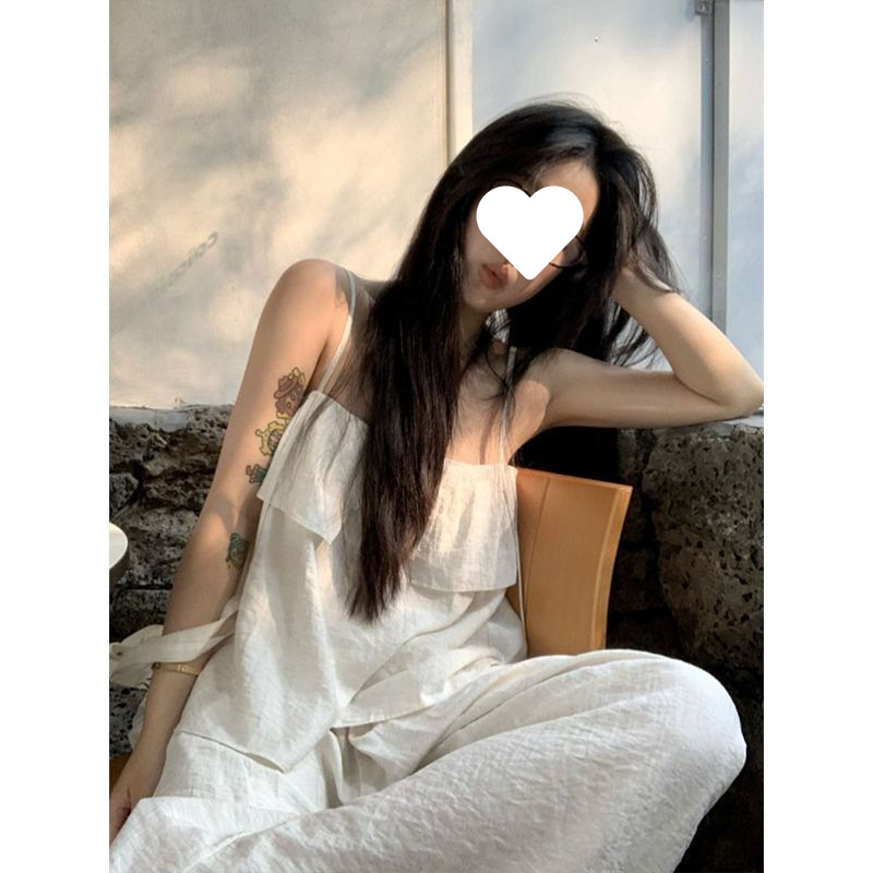 쿨 스타일 화이트 유행 세트 여성 여름 2025 유행 새로운 러플 슬링 야마모토 투피스 바지 스커트스토어 가기