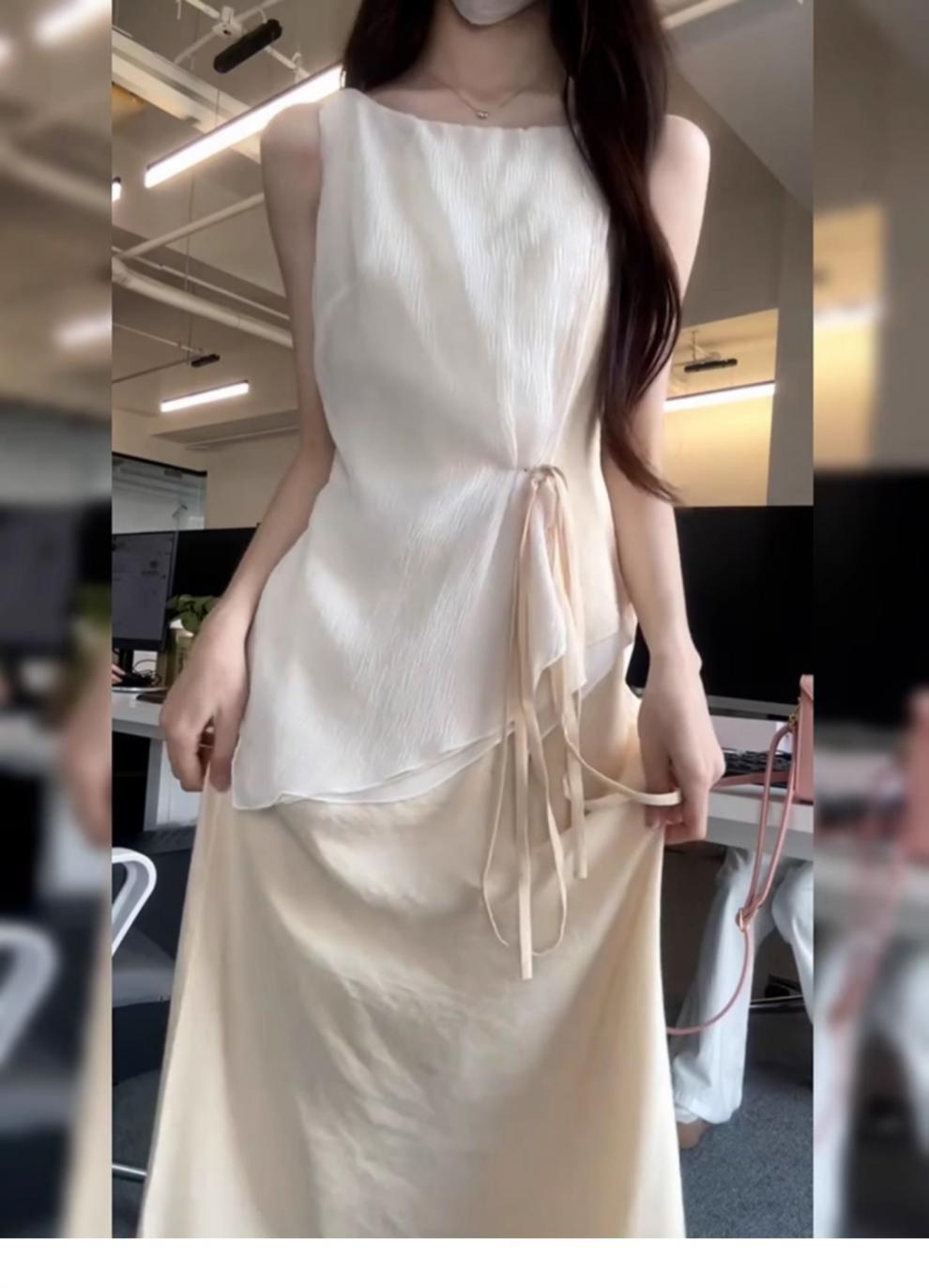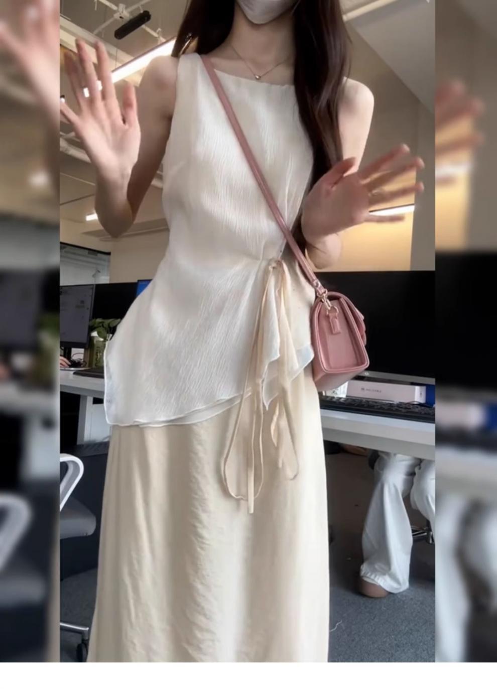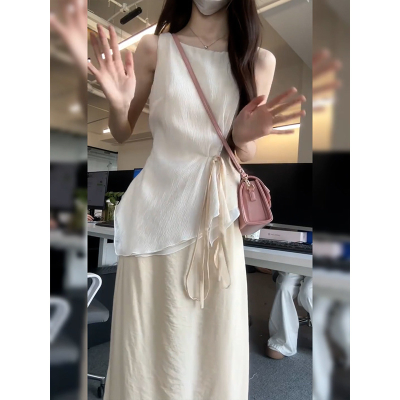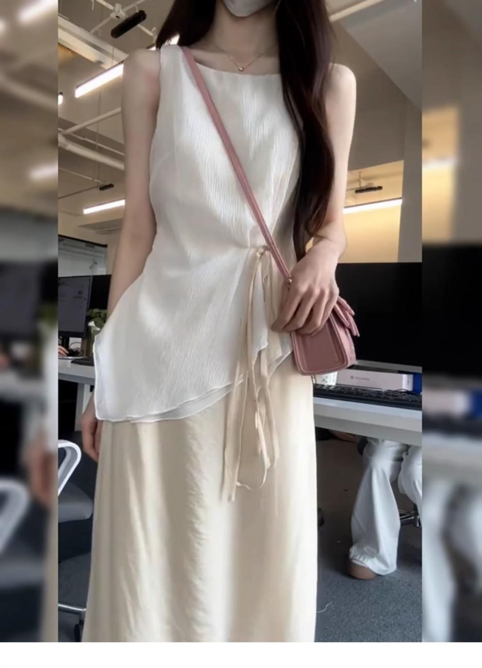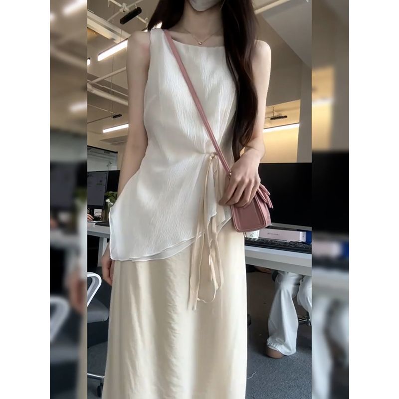 새로운 중국 선 스타일 불규칙한 민소매 셔츠 여성의 2025 여름 새로운 디자인 센스 틈새 우아한 타이트 허리 셔츠스토어 가기