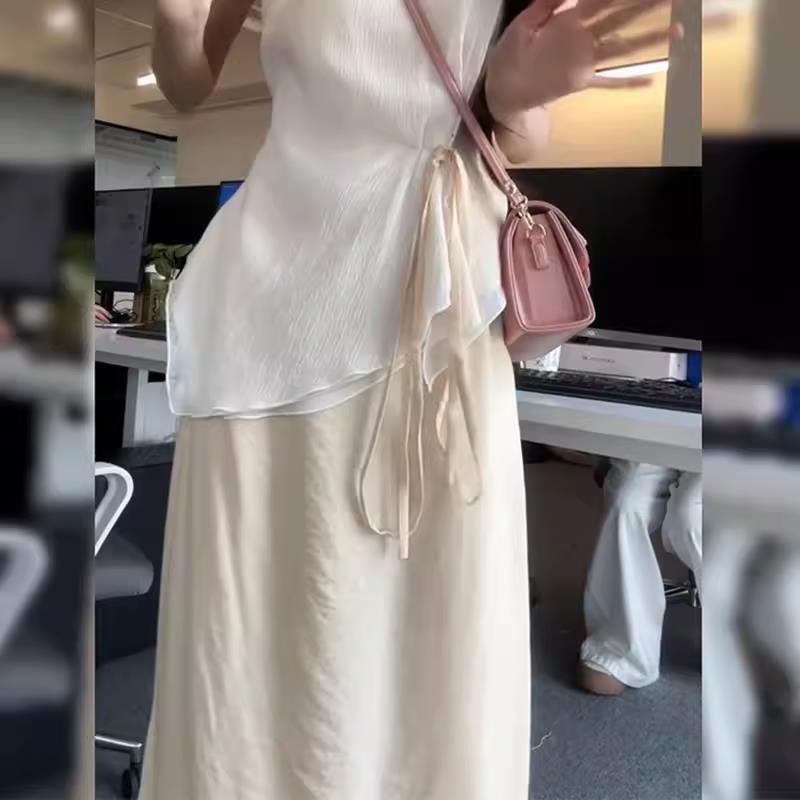 새로운 중국 선 스타일 불규칙한 민소매 셔츠 여성의 2025 여름 새로운 디자인 센스 틈새 우아한 타이트 허리 셔츠