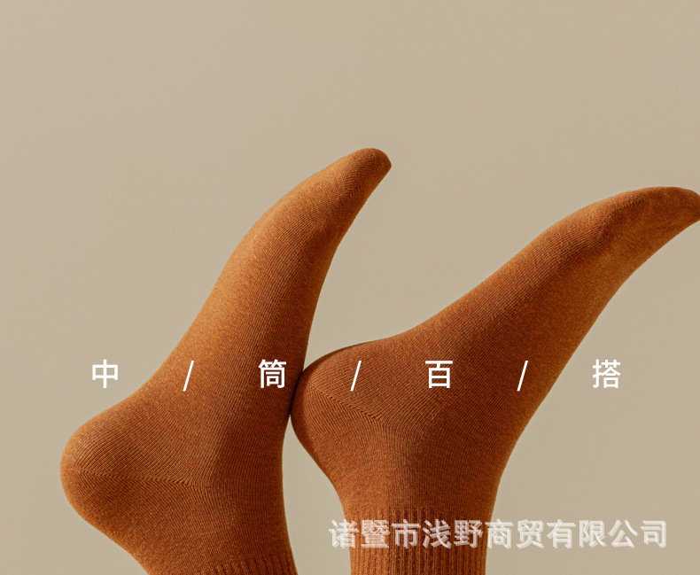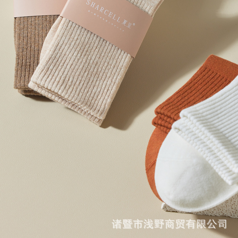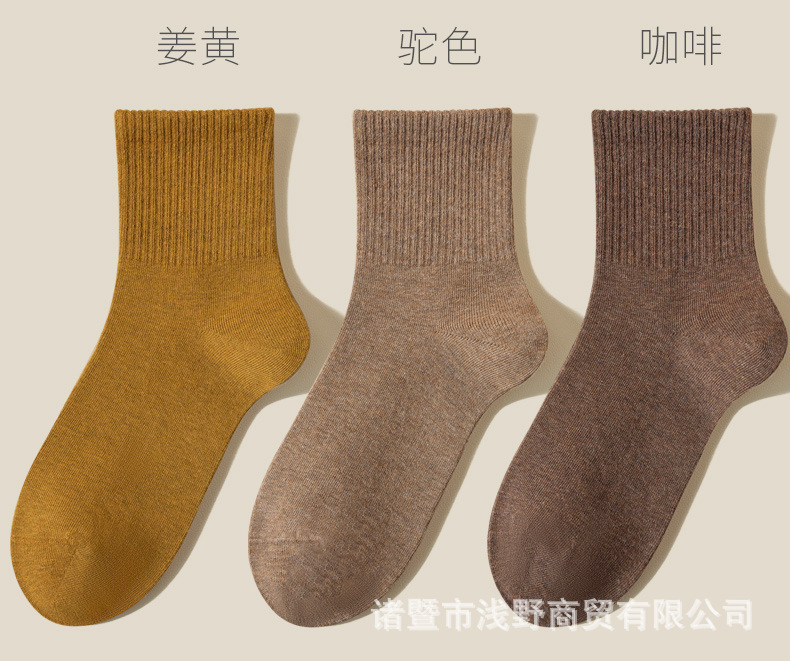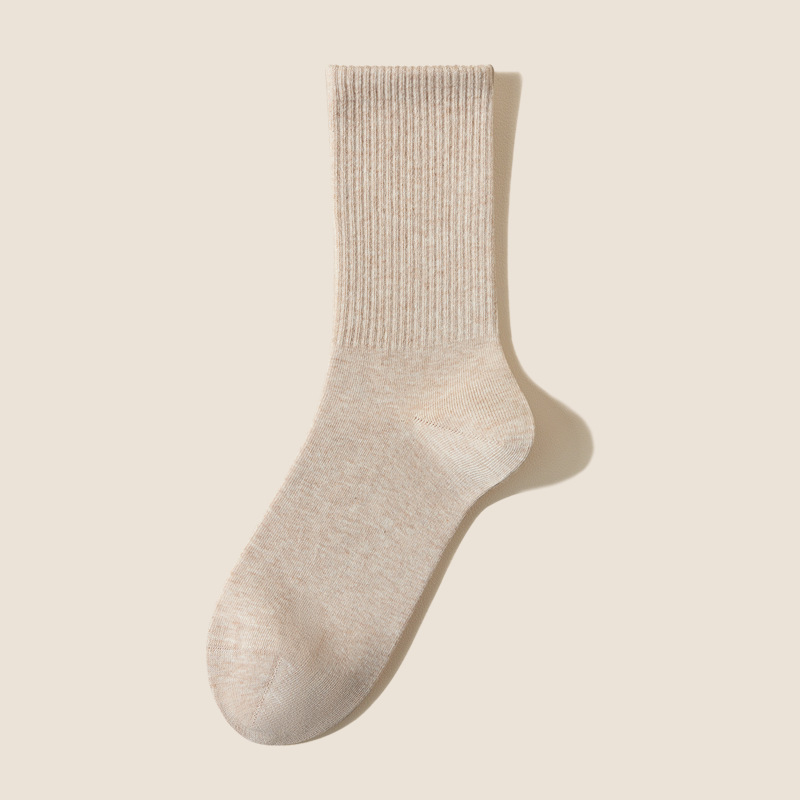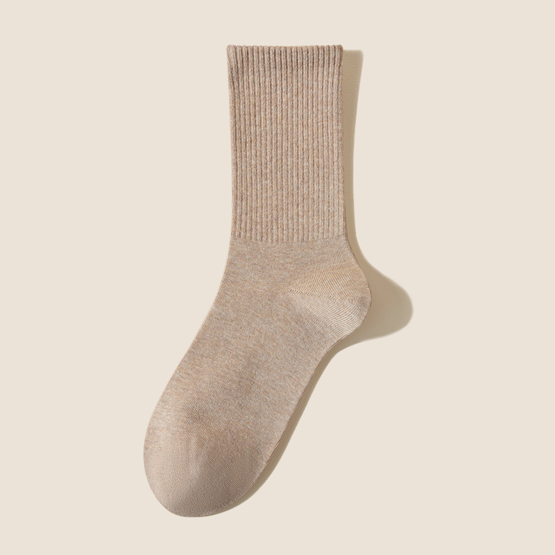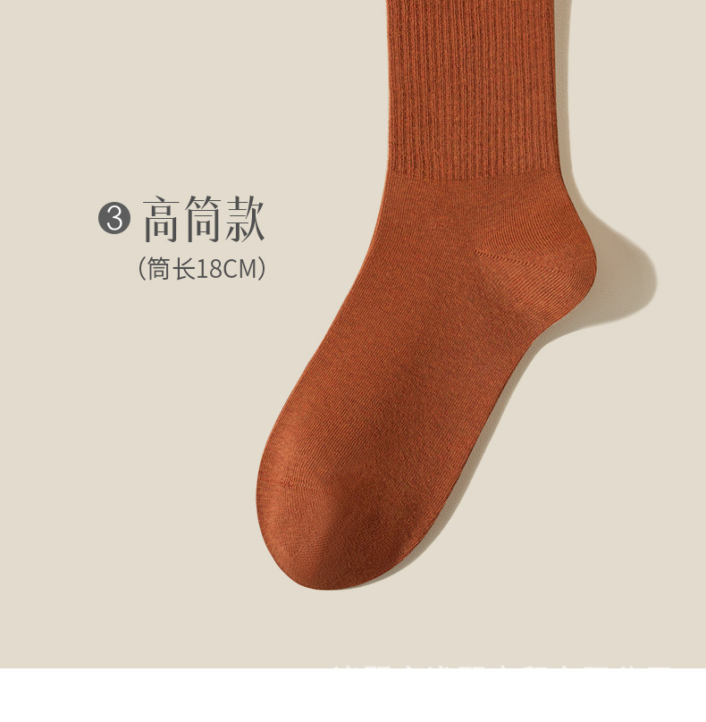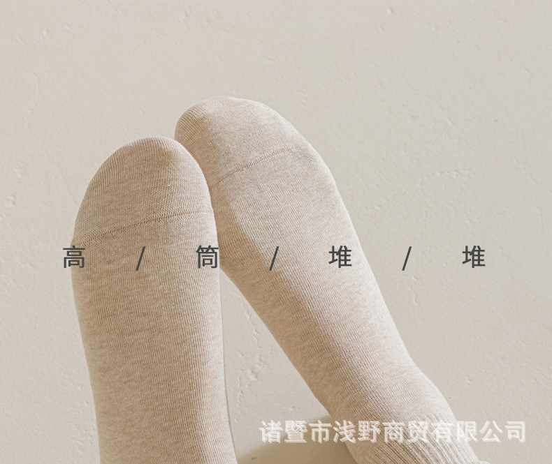 여성용 봄가을 순면 중목 양말, 무봉제 커피색 롱 양말, 사계절 면 양말, 가을겨울 하이탑 메일라드 롱 양말스토어 가기