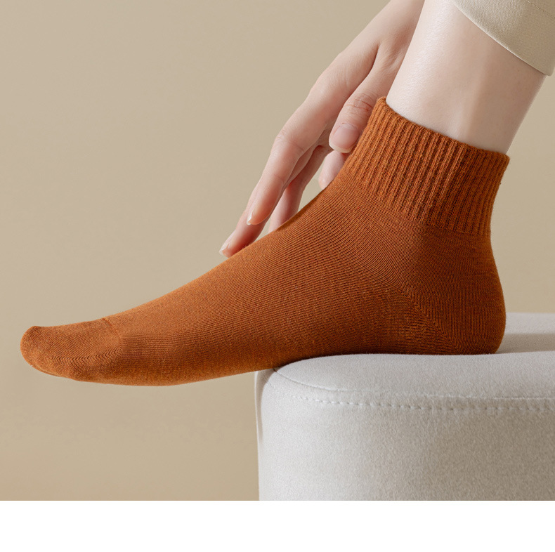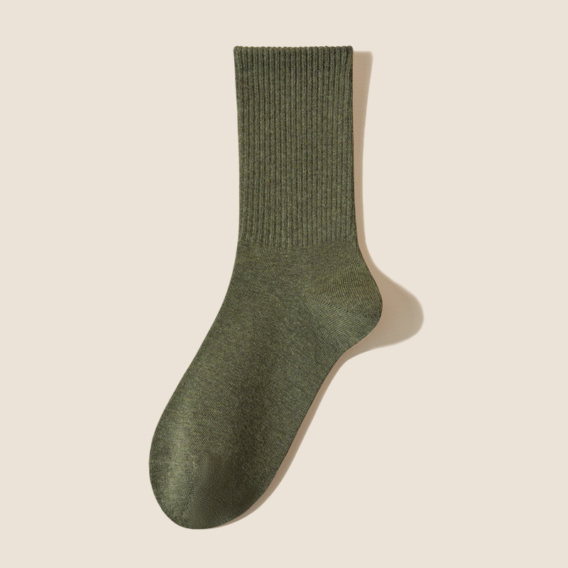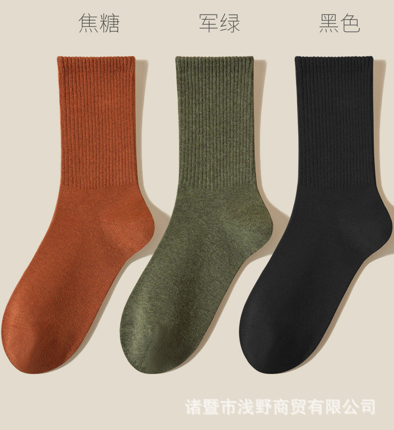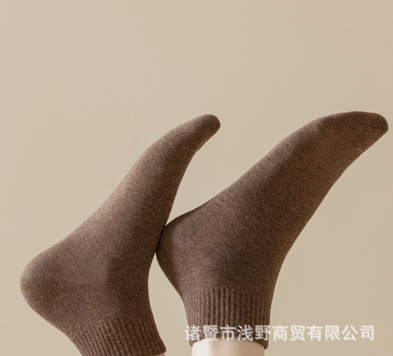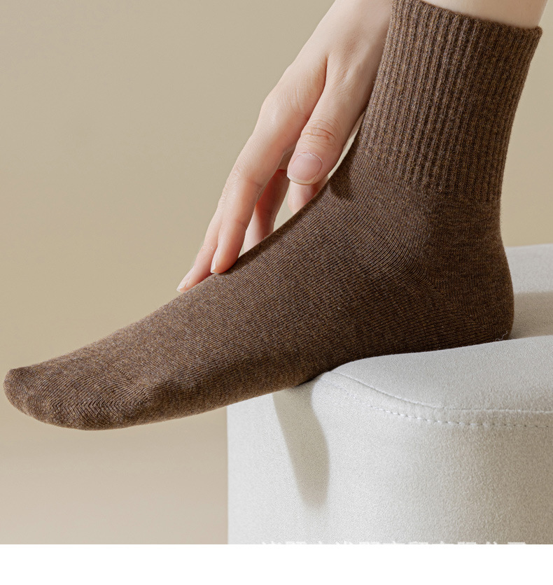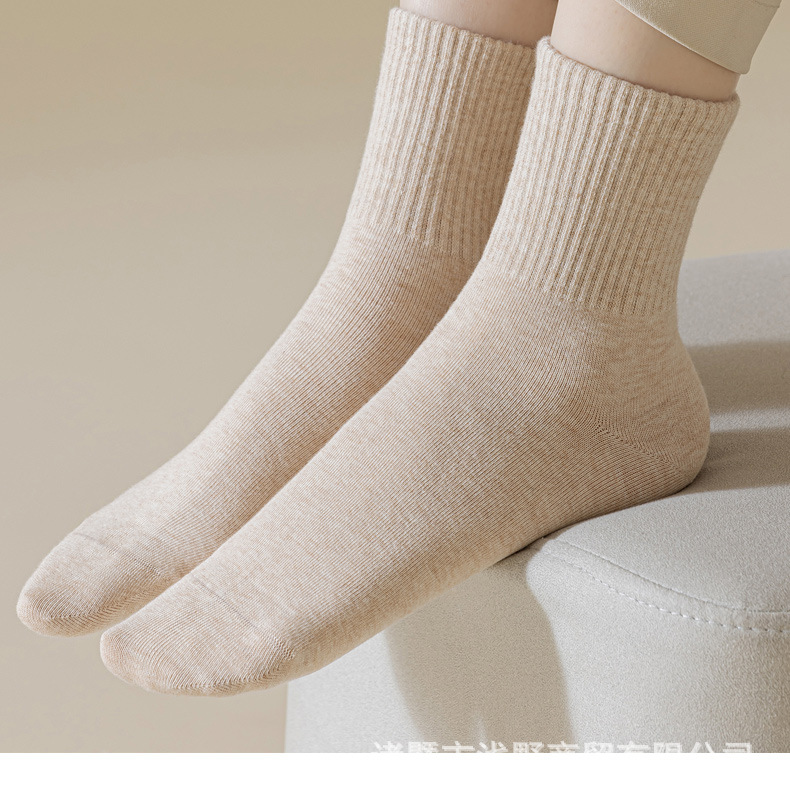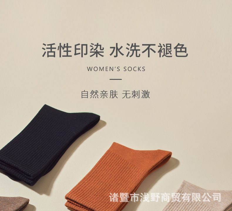 여성용 봄가을 순면 중목 양말, 무봉제 커피색 롱 양말, 사계절 면 양말, 가을겨울 하이탑 메일라드 롱 양말스토어 가기