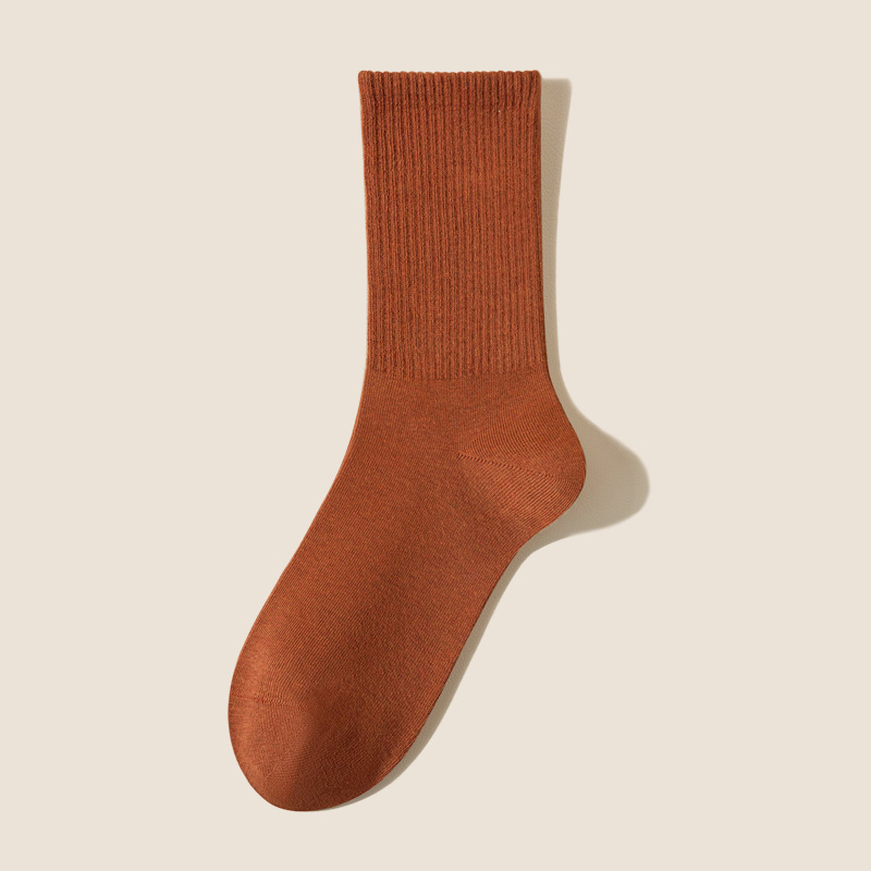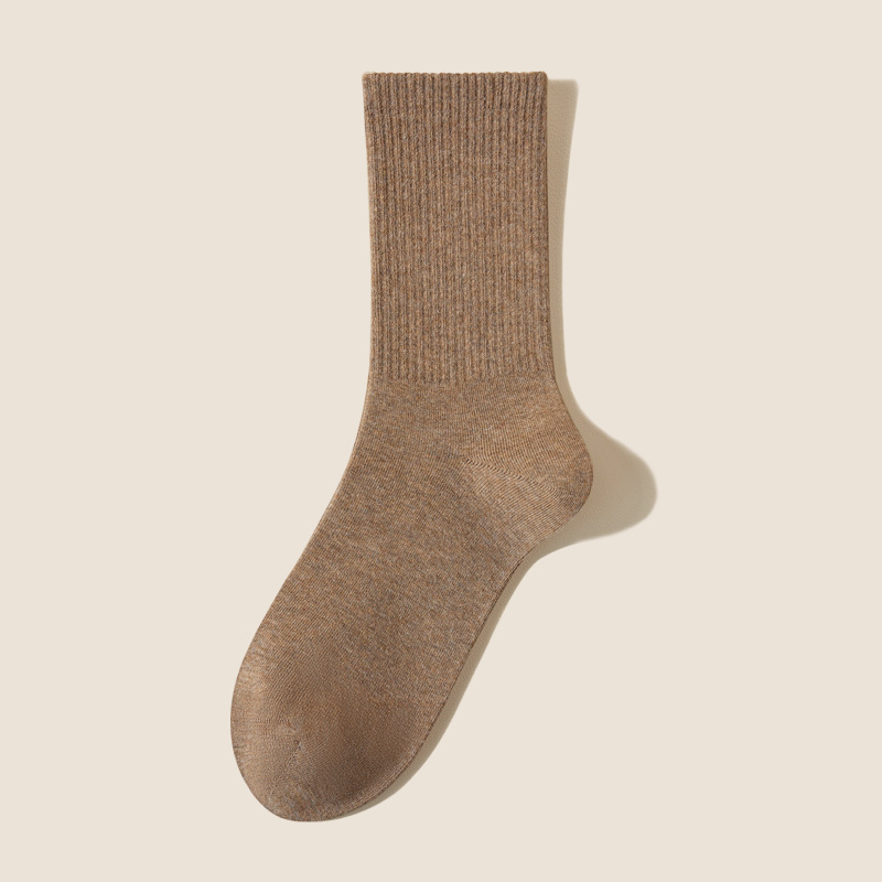 여성용 봄가을 순면 중목 양말, 무봉제 커피색 롱 양말, 사계절 면 양말, 가을겨울 하이탑 메일라드 롱 양말