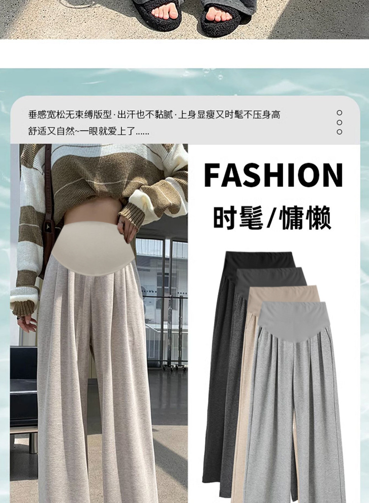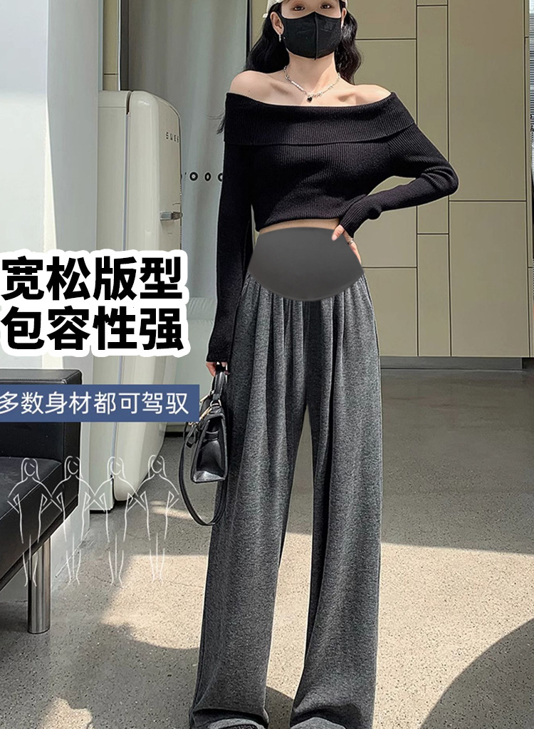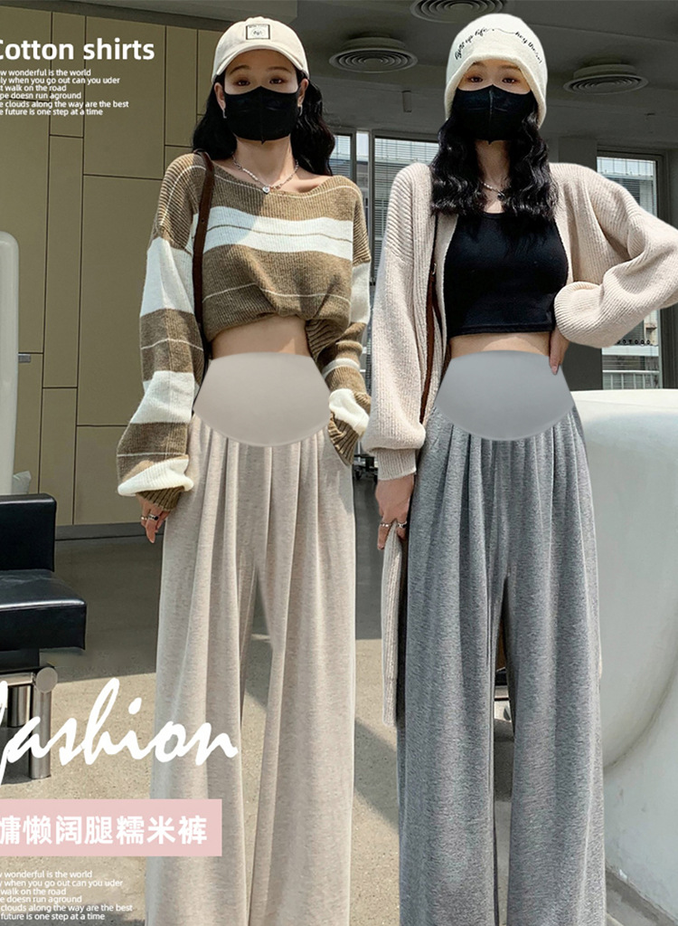 임산부 바지 봄과 가을 외부 착용 패션 2025 새로운 도착 와이드 레그 팬츠 소프트 왁스 왁스 왁스 밥 바지 캐주얼 바지 여성용스토어 가기