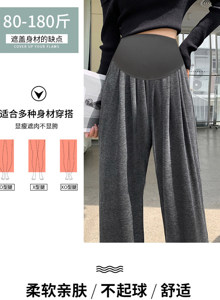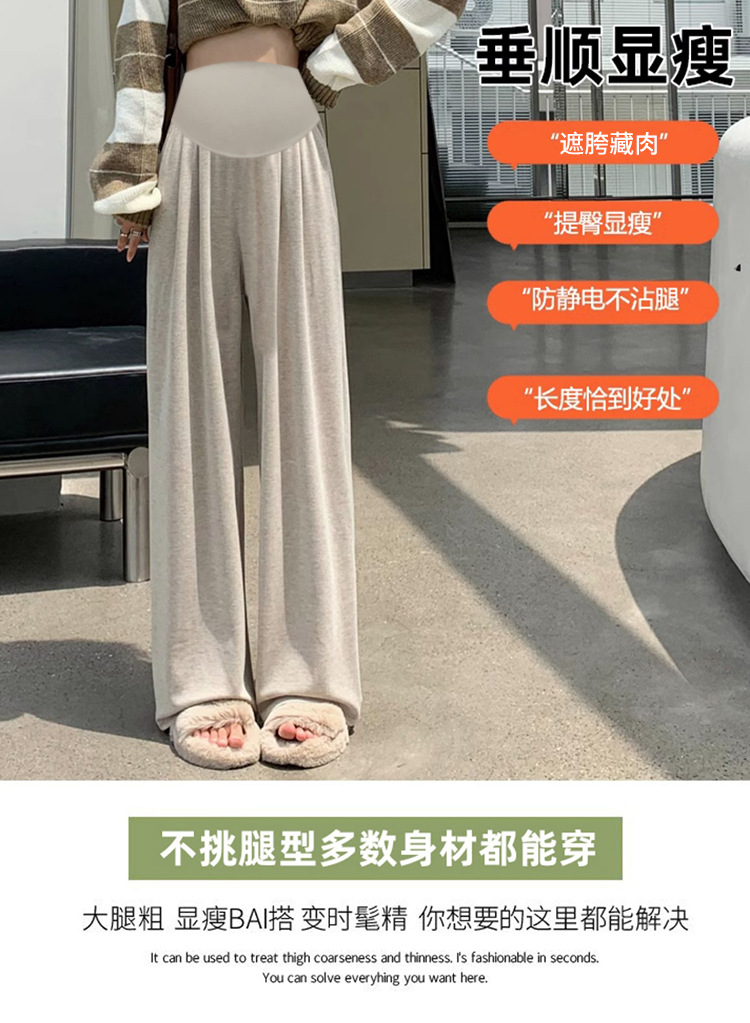 임산부 바지 봄과 가을 외부 착용 패션 2025 새로운 도착 와이드 레그 팬츠 소프트 왁스 왁스 왁스 밥 바지 캐주얼 바지 여성용