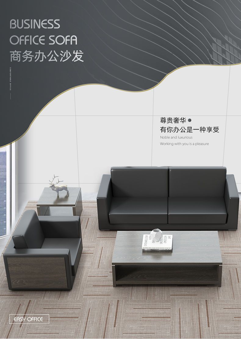 사무용 가구 비즈니스 사무실 소파 간단한 현대 3 인 리셉션 소파 커피 테이블 조합스토어 가기