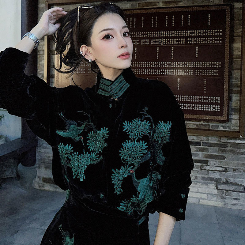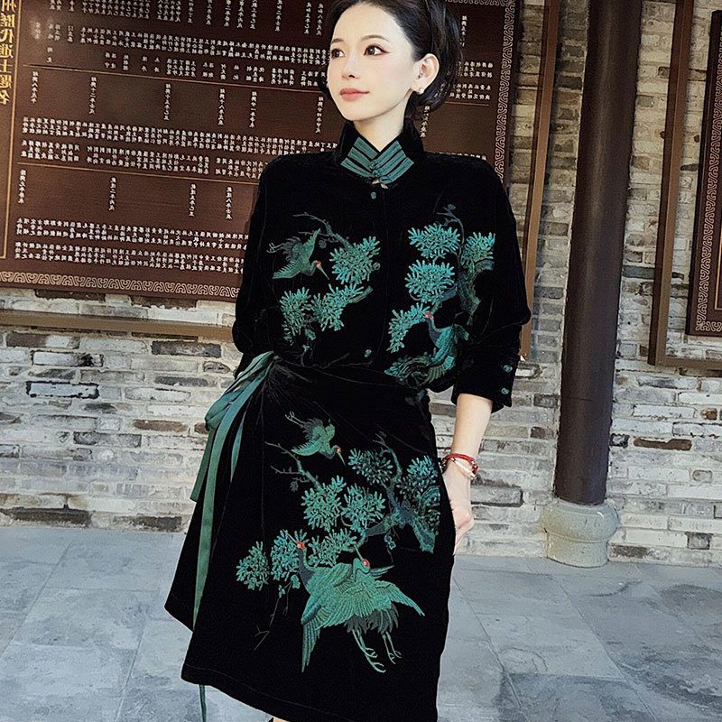 하이 엔드 감각 작은 원피스 투피스 세트 2025 봄 새로운 중국 스타일 슈퍼 잘 보이는 프린트 코트 스커트 세트