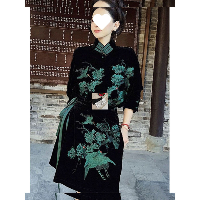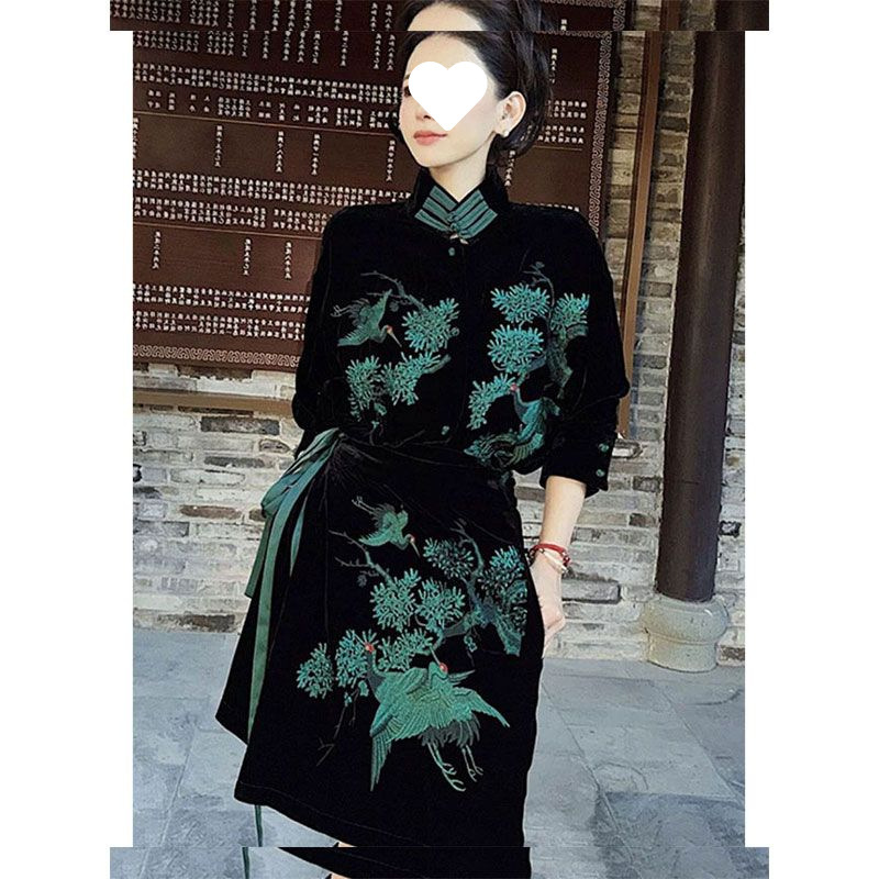 하이 엔드 감각 작은 원피스 투피스 세트 2025 봄 새로운 중국 스타일 슈퍼 잘 보이는 프린트 코트 스커트 세트스토어 가기
