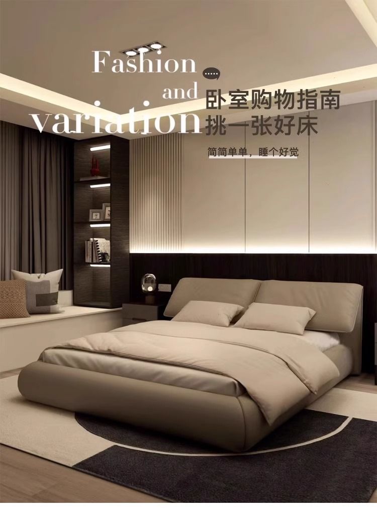 이탈리아 스타일 미니멀리스트 백스터 코끼리 귀 가죽 침대 조명 럭셔리 현대 간단한 더블 마스터 침실 웨딩 침대 큰 침대스토어 가기