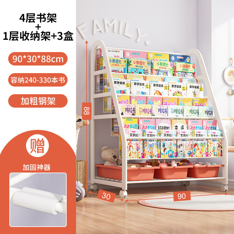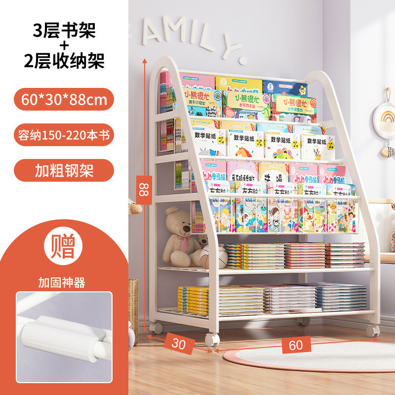 儿童书架家用绘本架阅读区移动玩具收纳架简易宝宝书柜置物架落地