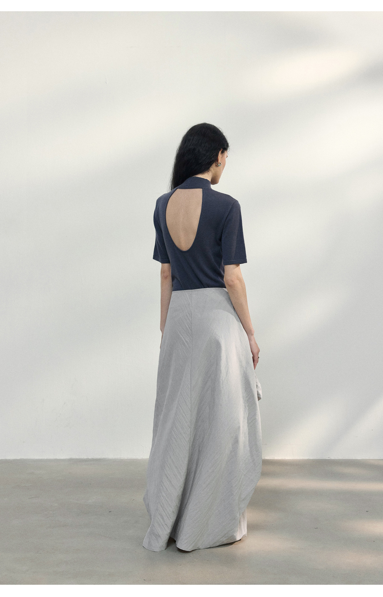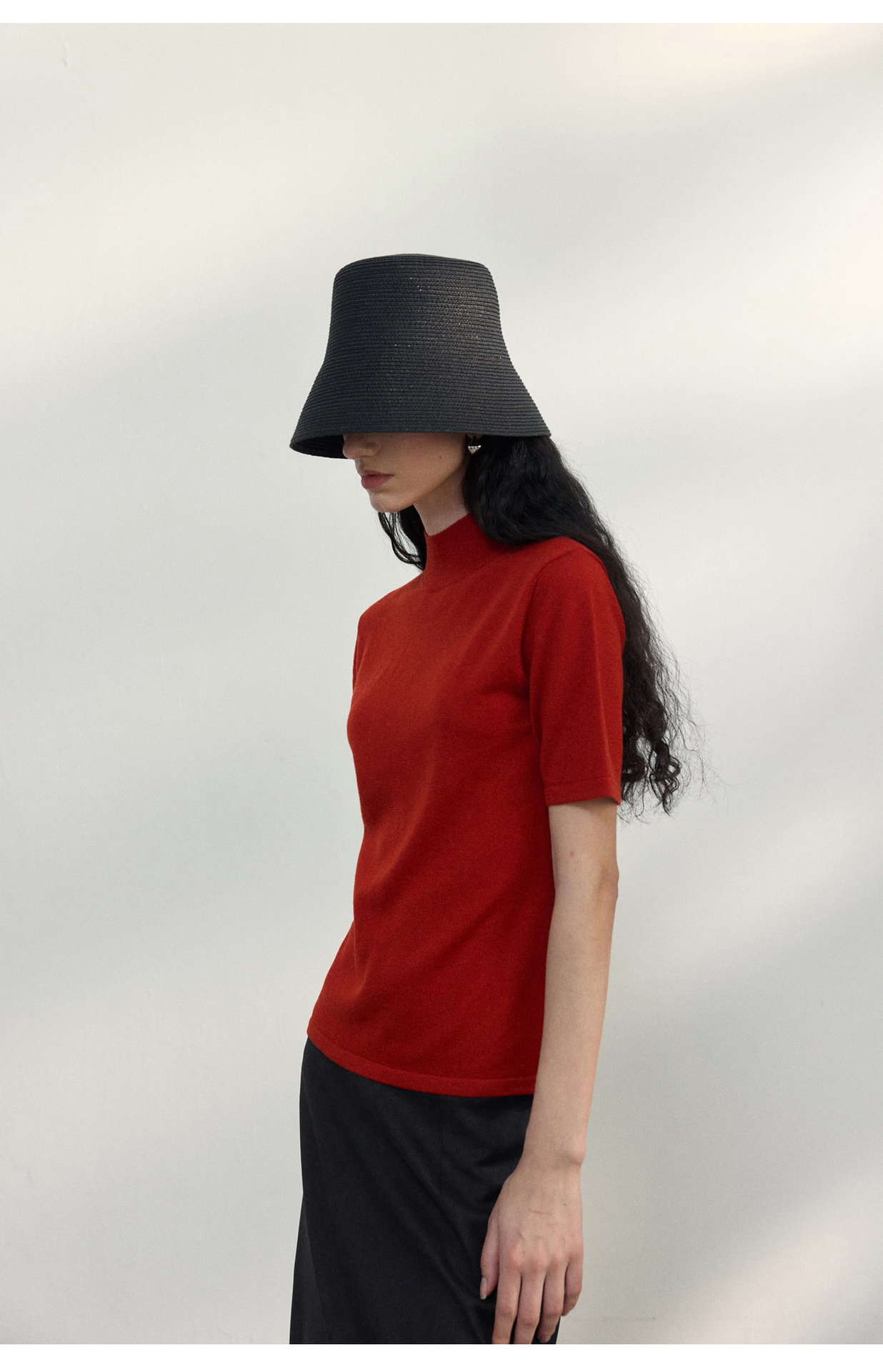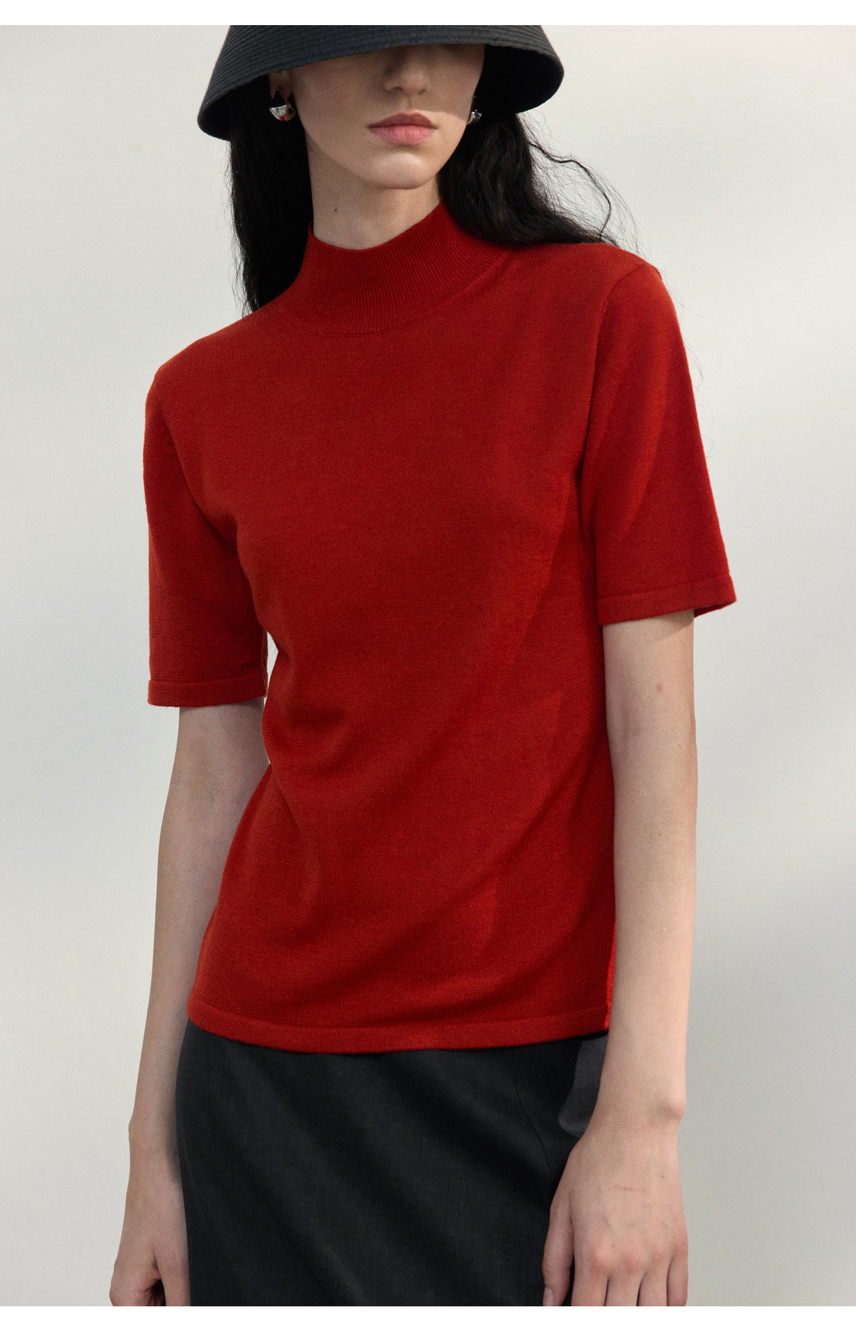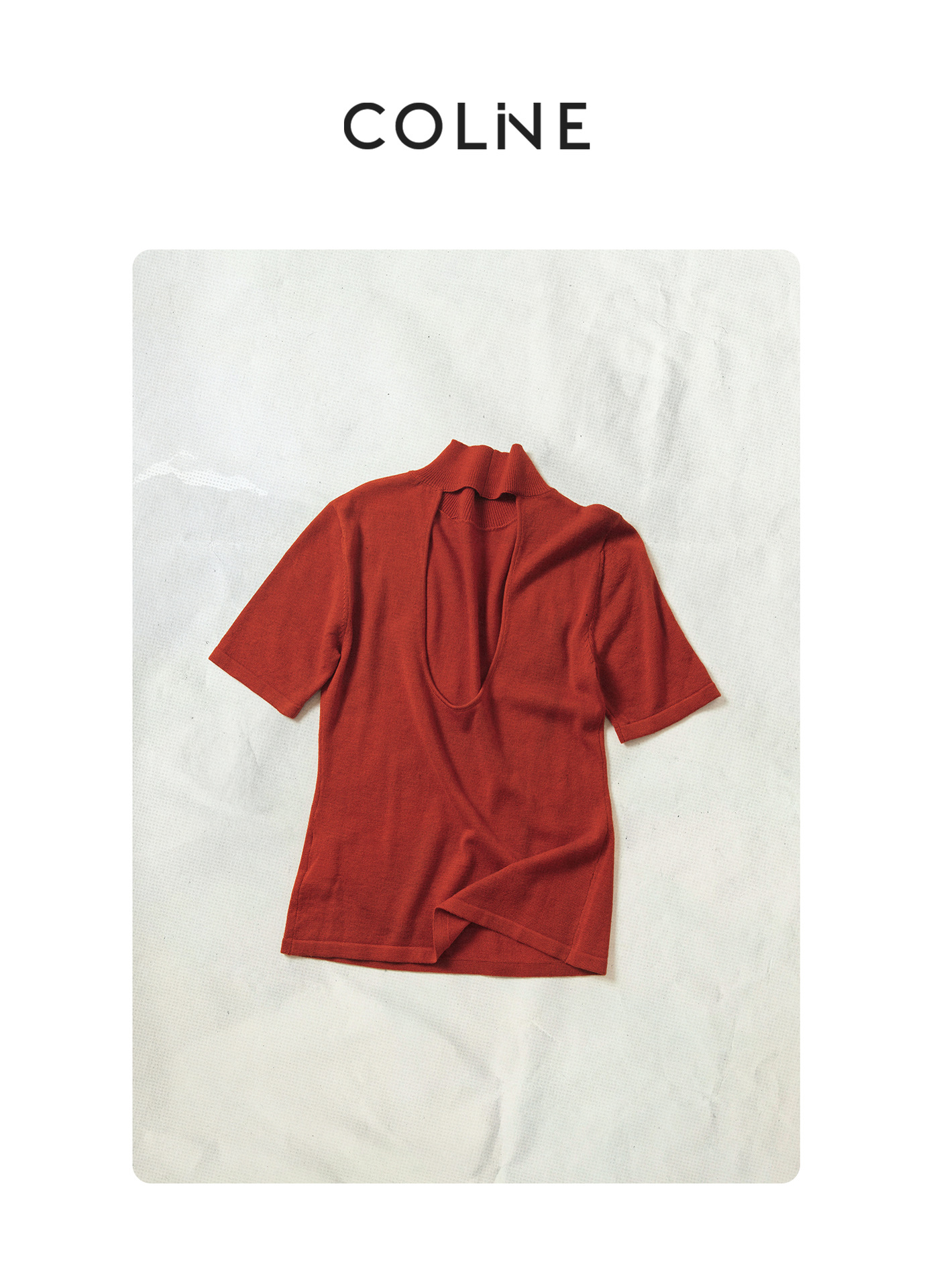 [공통라인] COLNE 뉴 통근 디자인 백리스 하이넥 울 반팔 티셔츠 탑 C5088