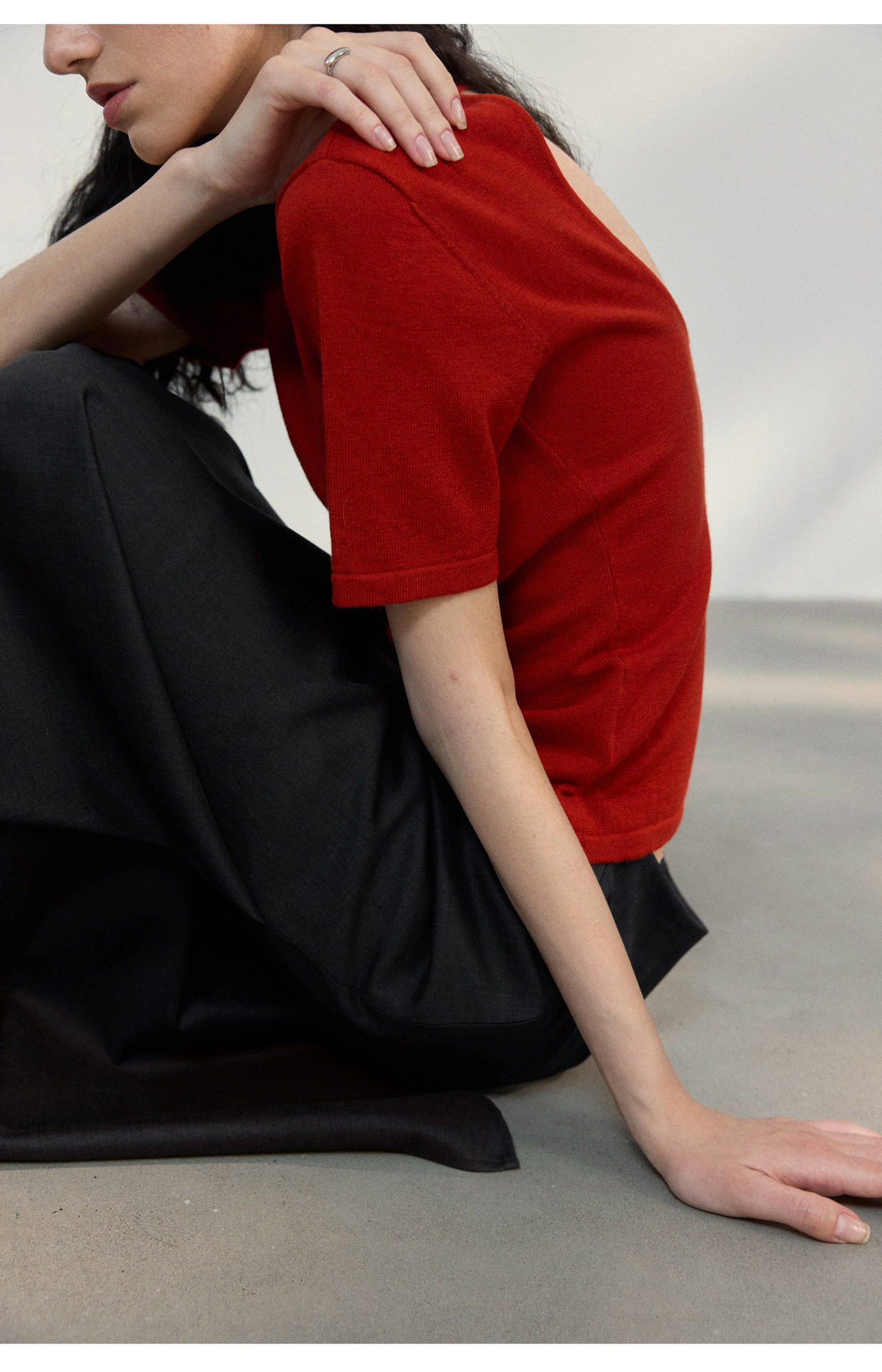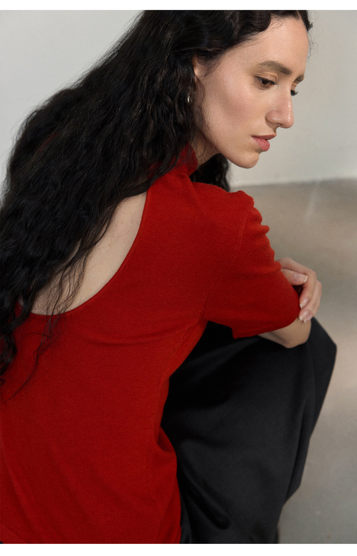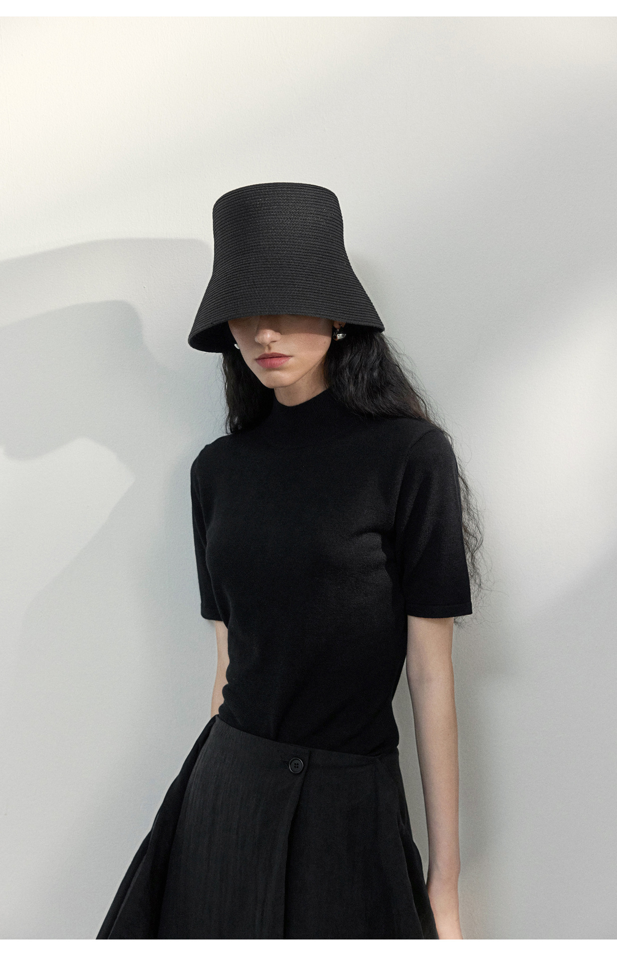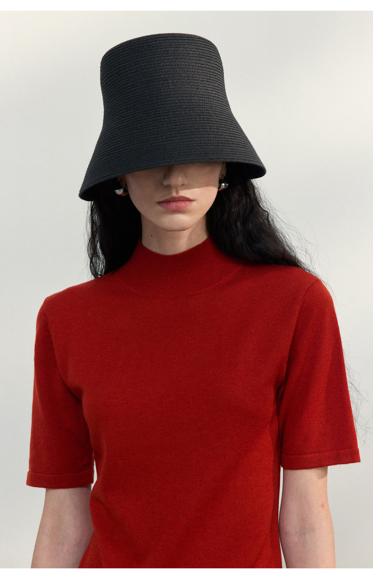[공통라인] COLNE 뉴 통근 디자인 백리스 하이넥 울 반팔 티셔츠 탑 C5088