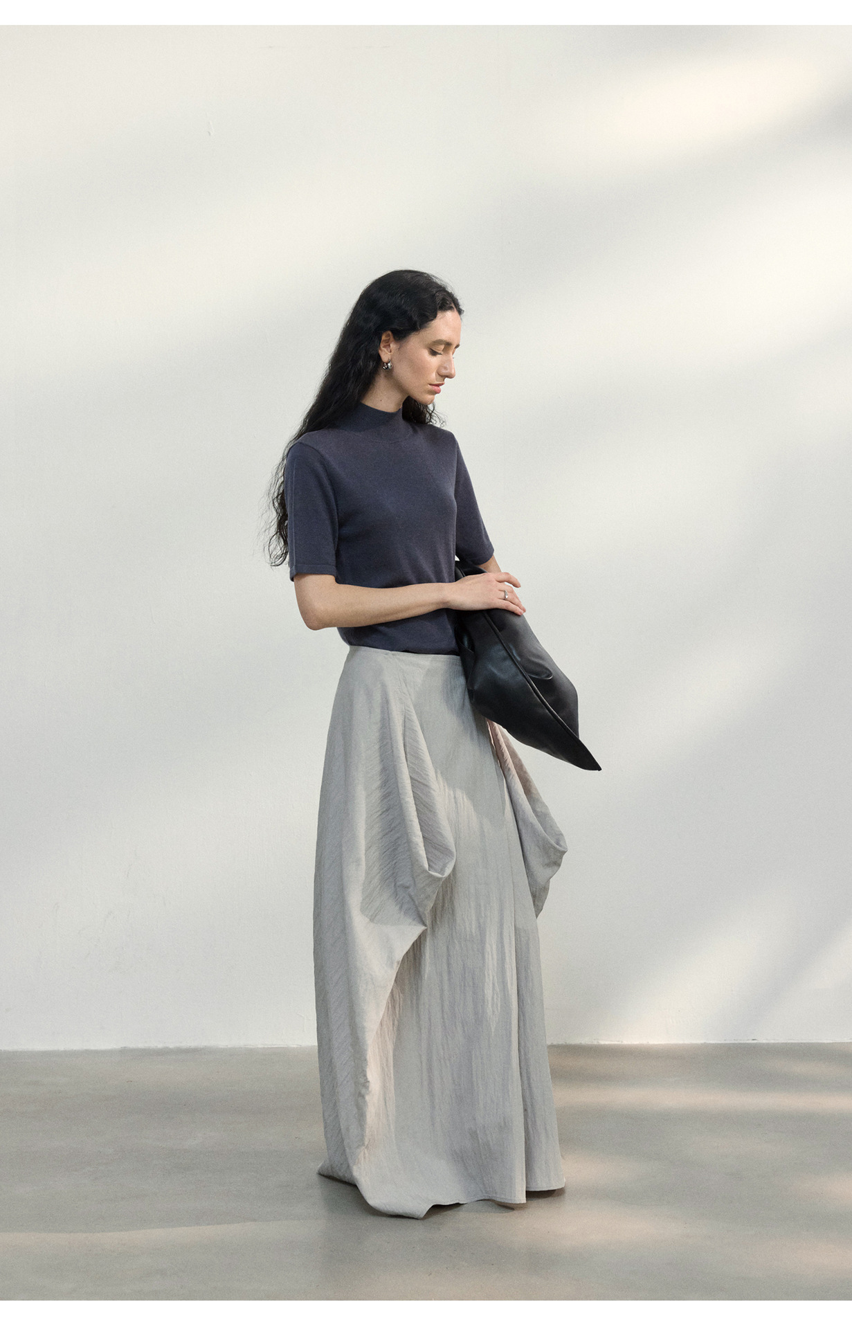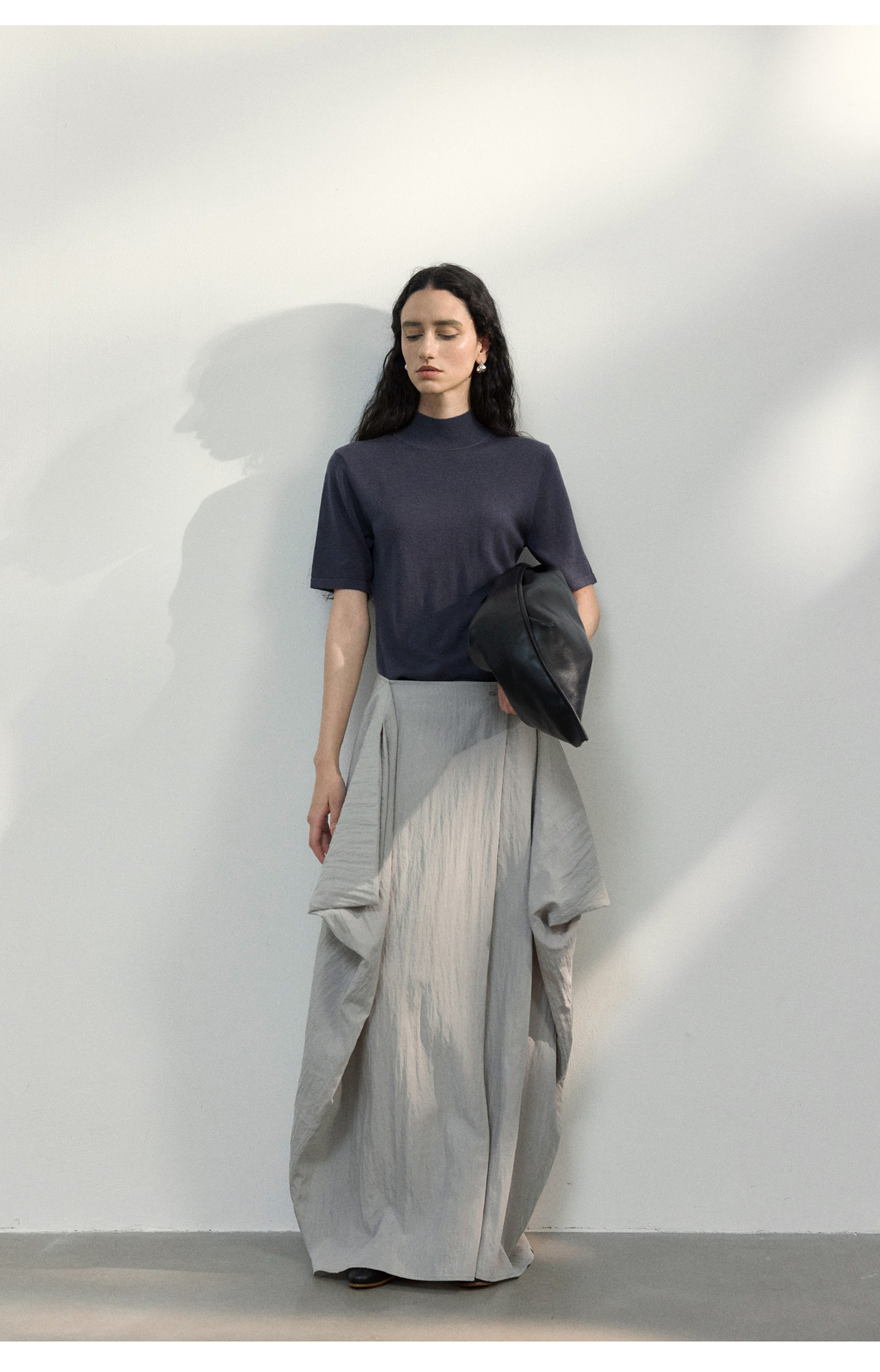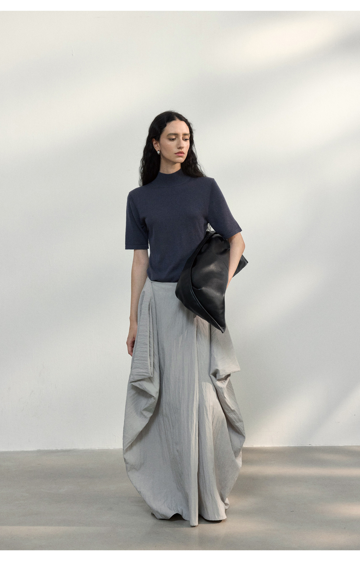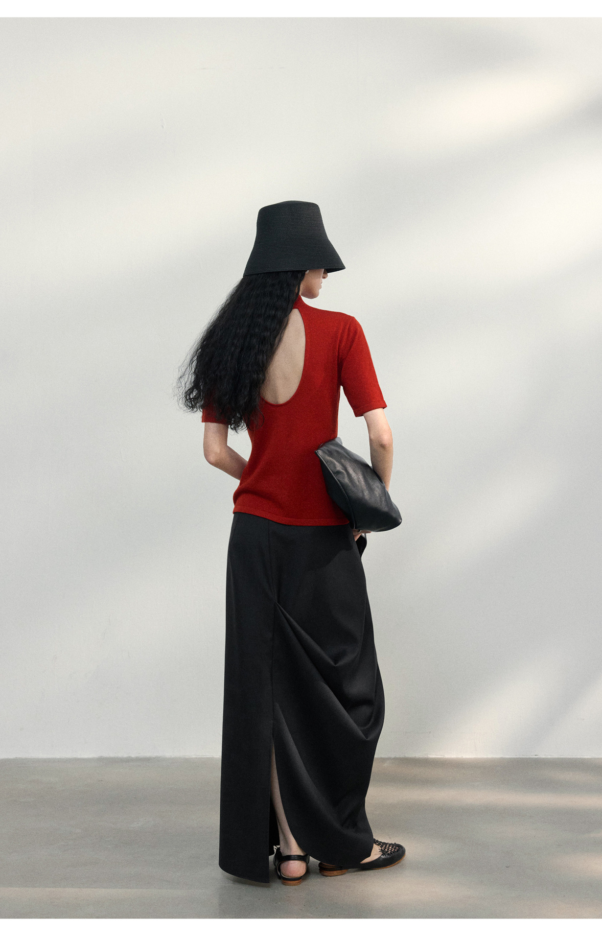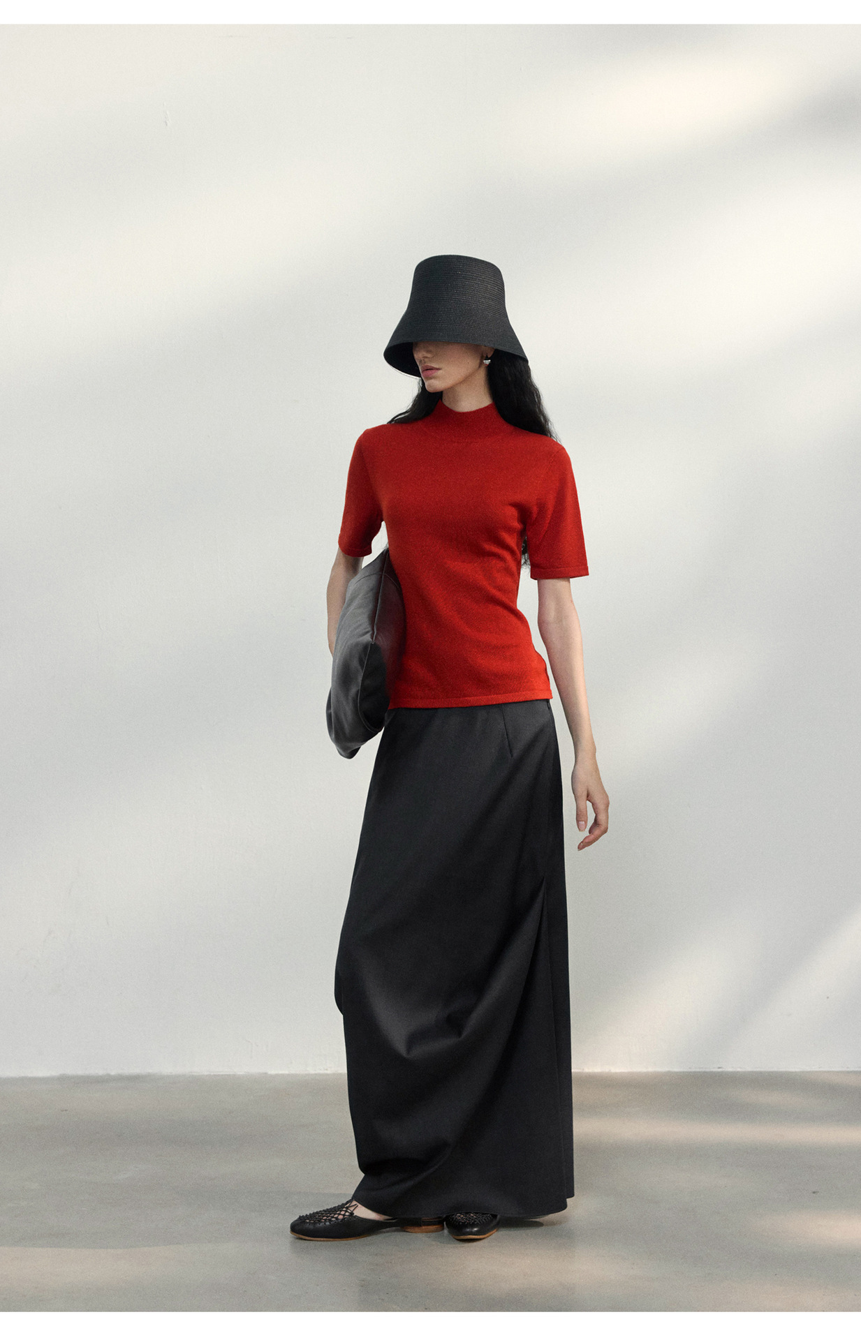 [공통라인] COLNE 뉴 통근 디자인 백리스 하이넥 울 반팔 티셔츠 탑 C5088