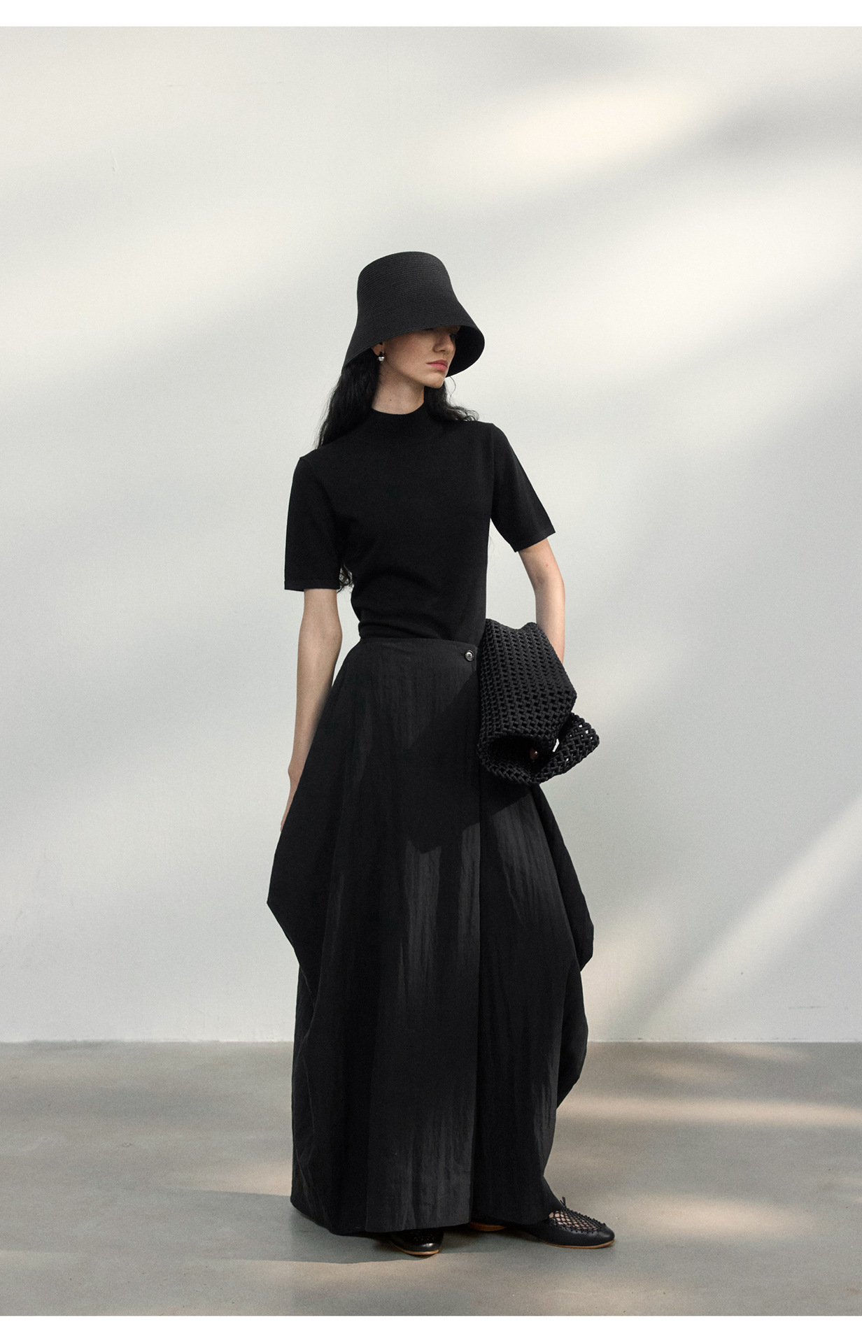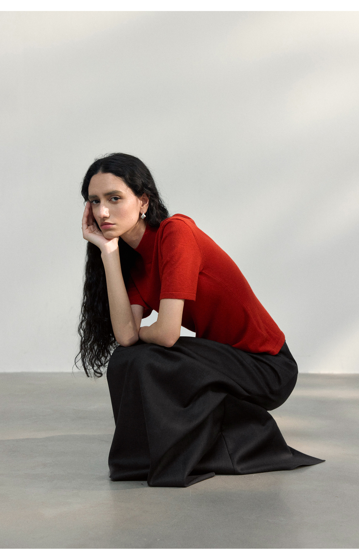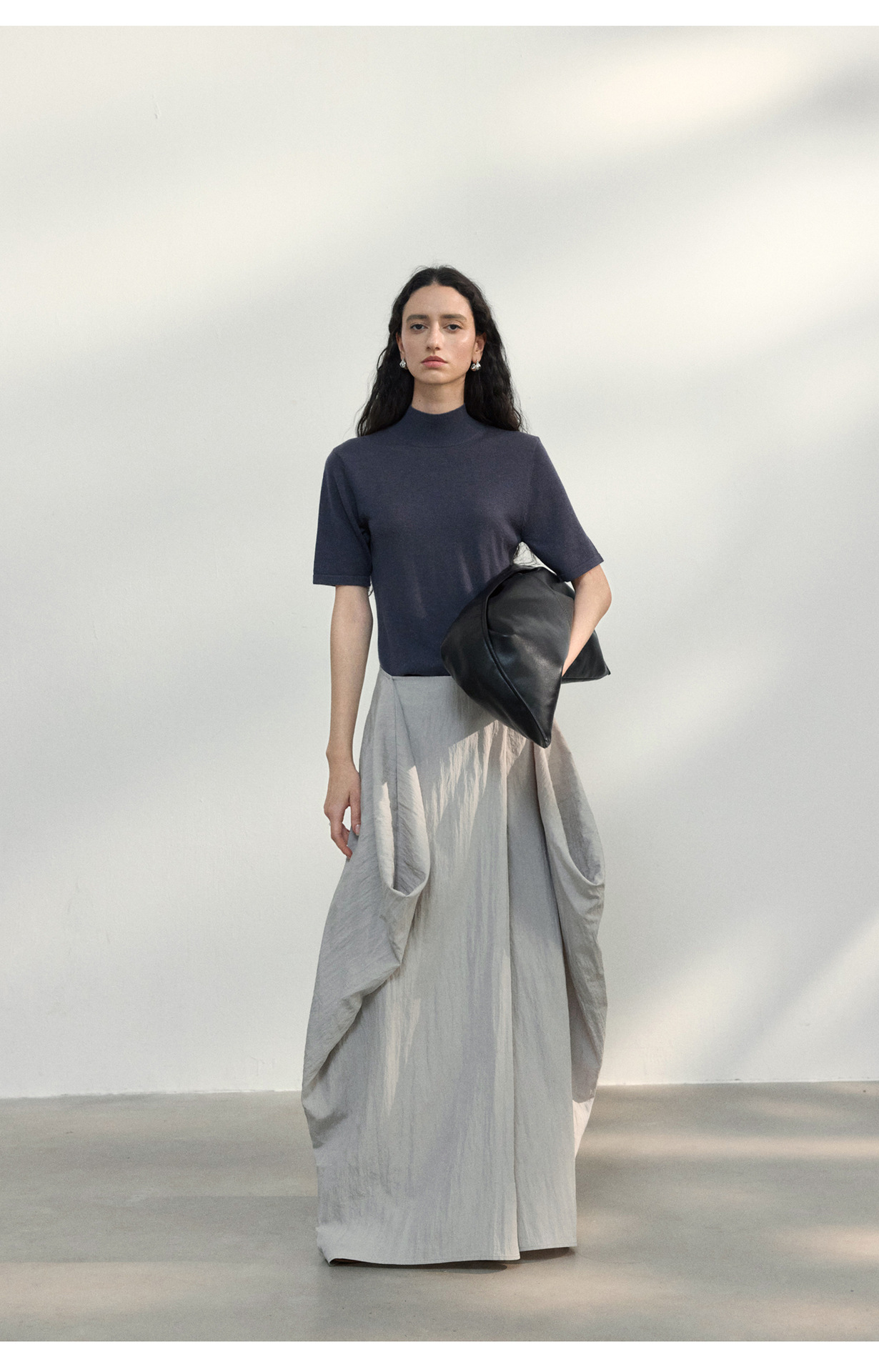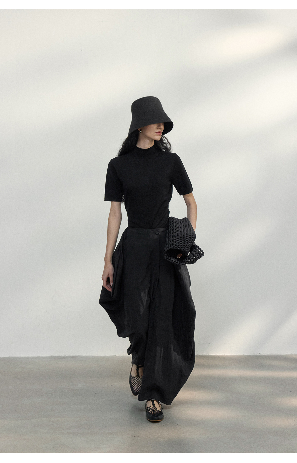 [공통라인] COLNE 뉴 통근 디자인 백리스 하이넥 울 반팔 티셔츠 탑 C5088