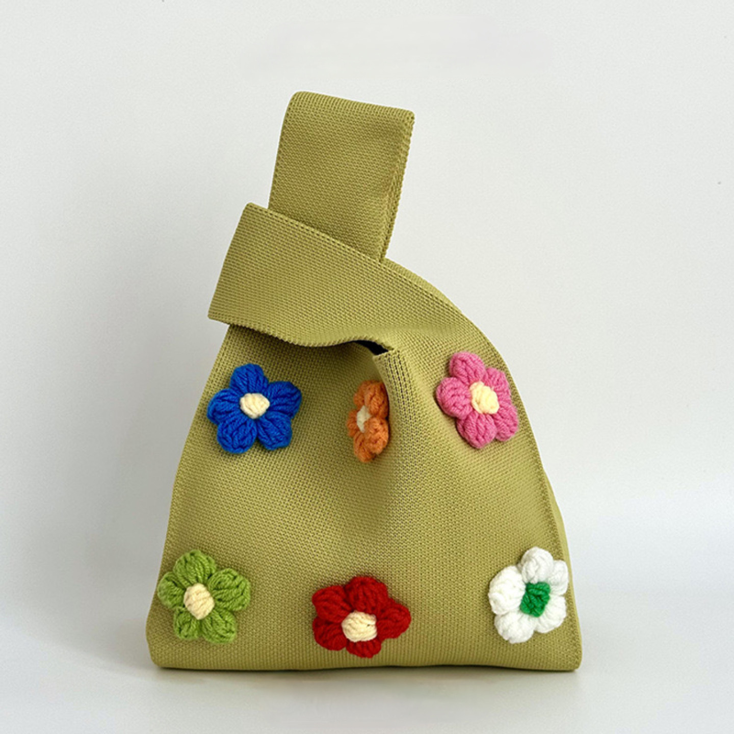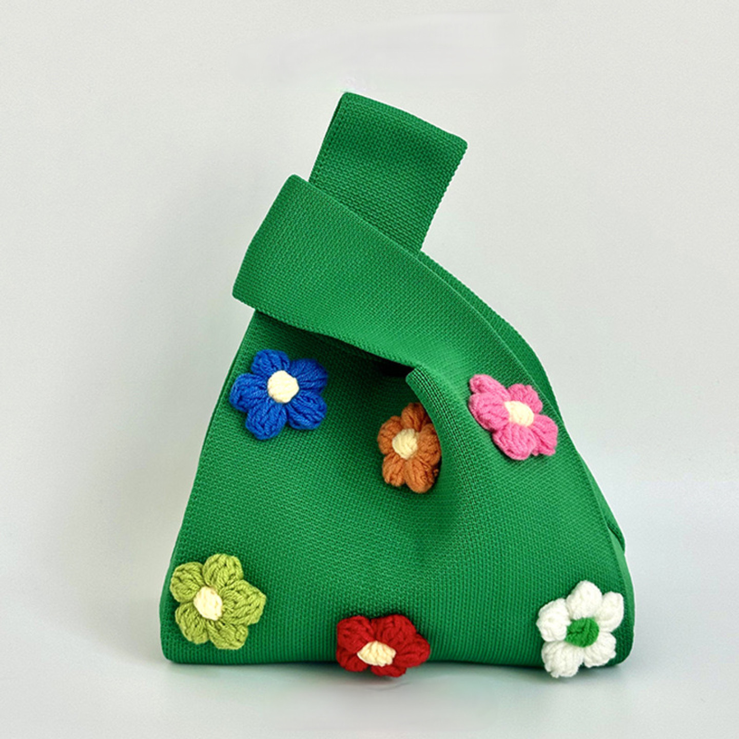 인터넷 연예인 Ins 니트 핸드 헬드 여성 울 플라워 캐주얼 버킷 토트 백 탱크 백 일본과 한국 스타일 귀여운스토어 가기