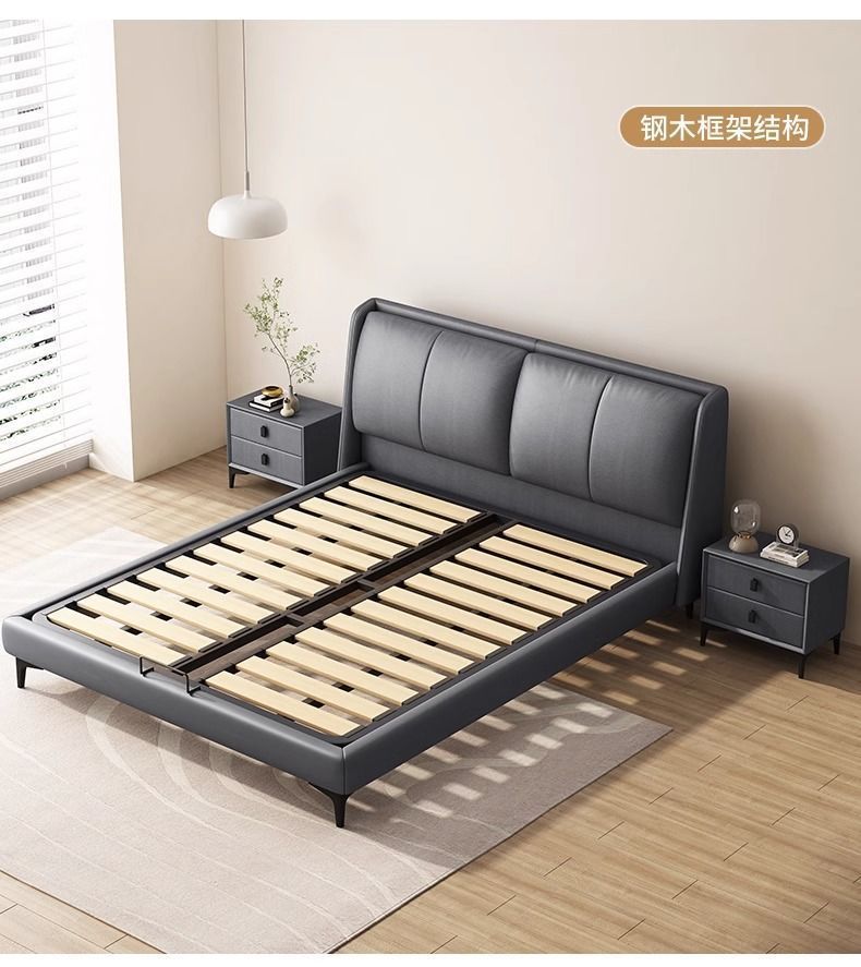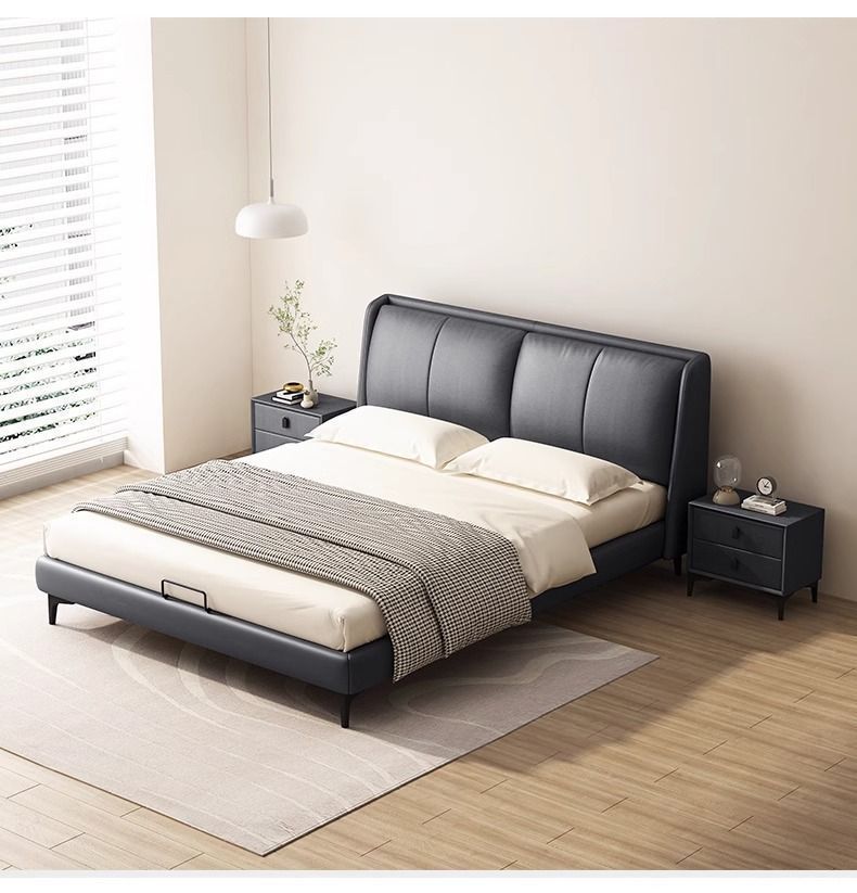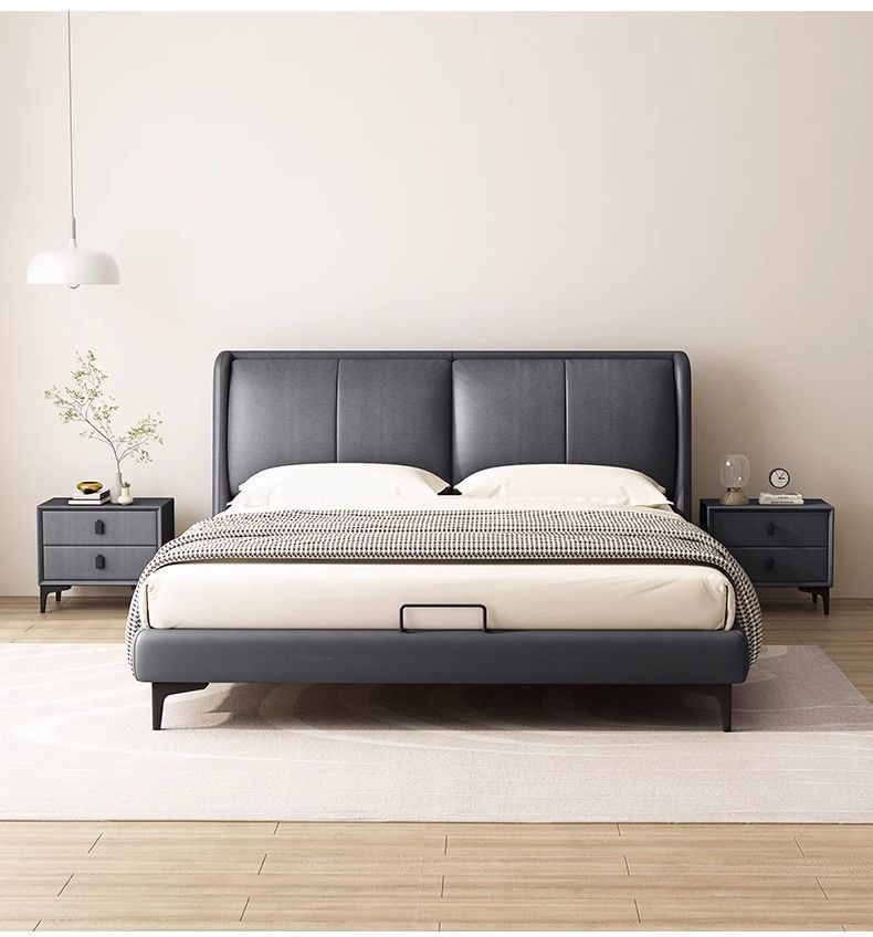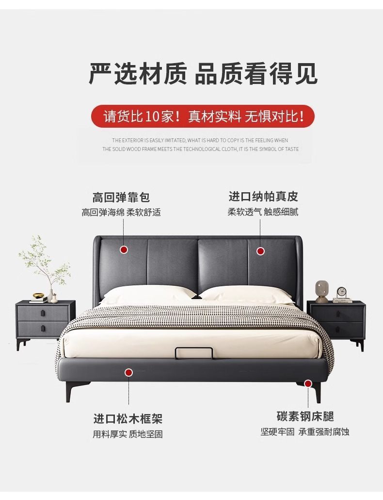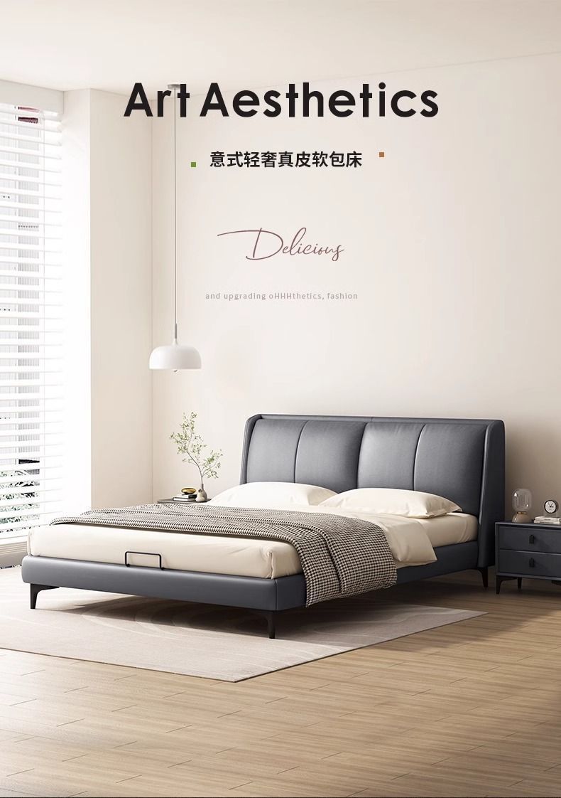침대 현대 간단한 더블 침대 작은 아파트 우수한 마스터 침실 큰 침대 웨딩 침대 가죽 부드러운 가방 침대 이탈리아 미니멀리스트 가죽 침대스토어 가기