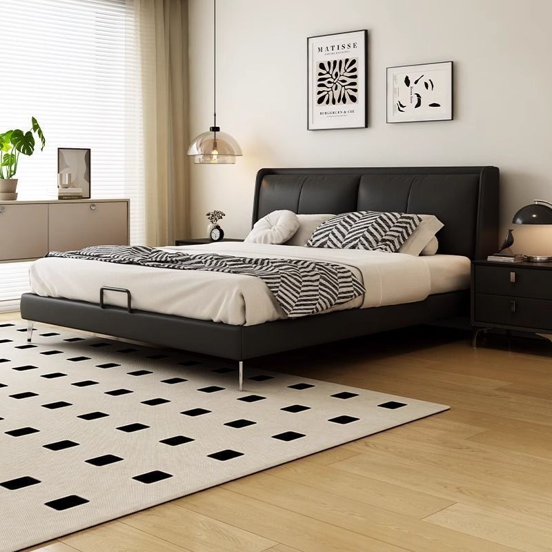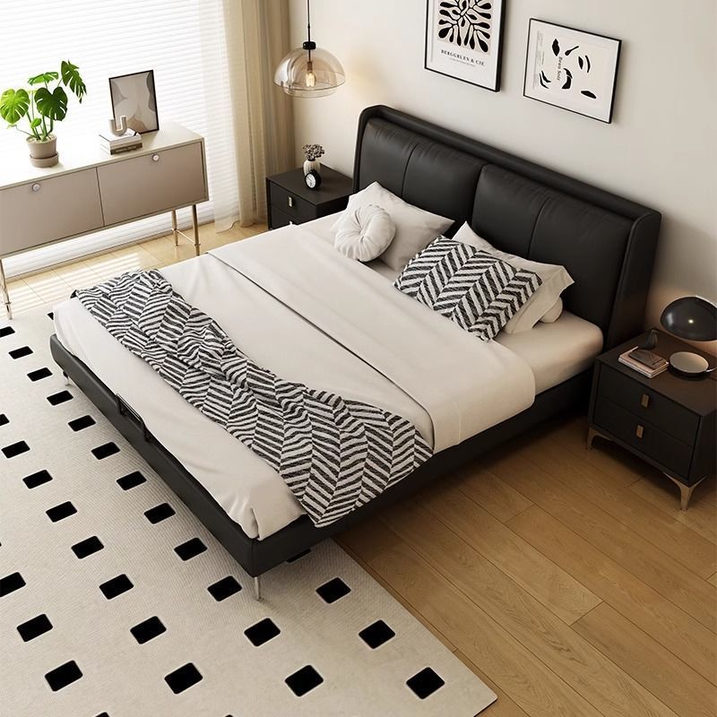 침대 현대 간단한 더블 침대 작은 아파트 우수한 마스터 침실 큰 침대 웨딩 침대 가죽 부드러운 가방 침대 이탈리아 미니멀리스트 가죽 침대