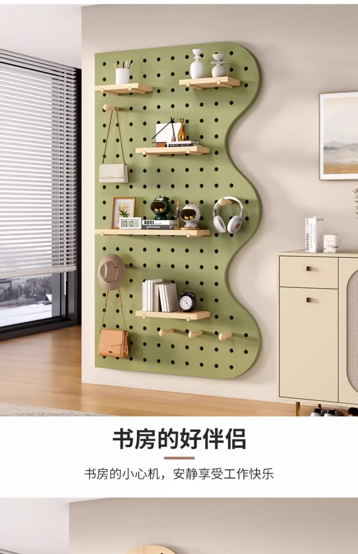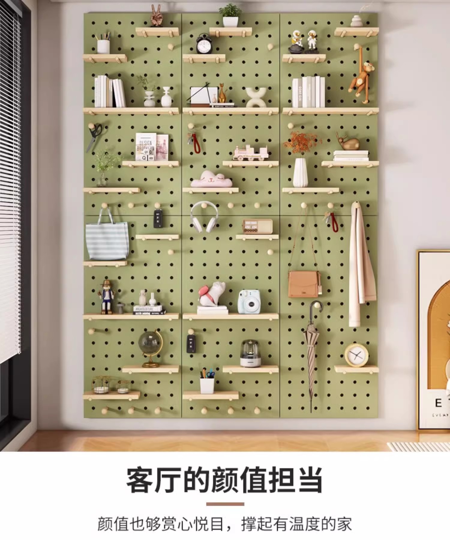 단단한 나무 구멍 보드 입구 현관 벽 저장 랙 액세서리 베이 창 배경 벽 디스플레이 랙 스토리지 랙으로 고정