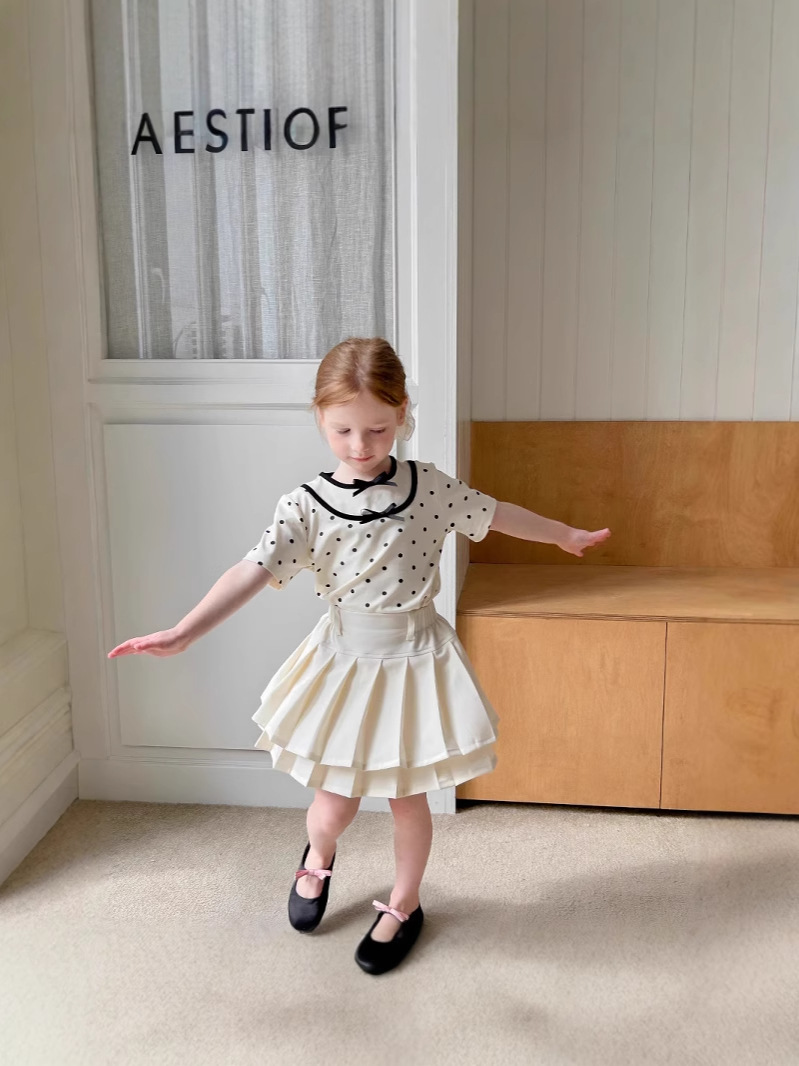 25 봄과 여름 새로운 소녀 간단한 패션 다목적 흰색 주름 치마 어린이 치마 달콤한 아기 치마