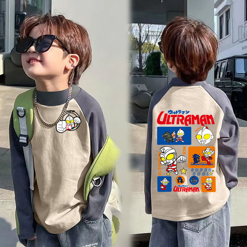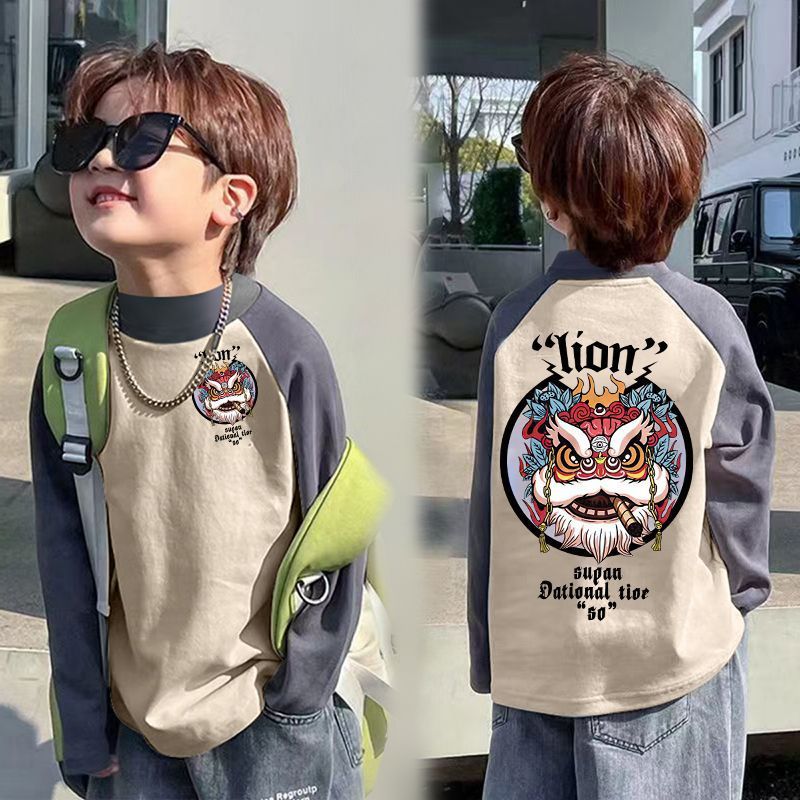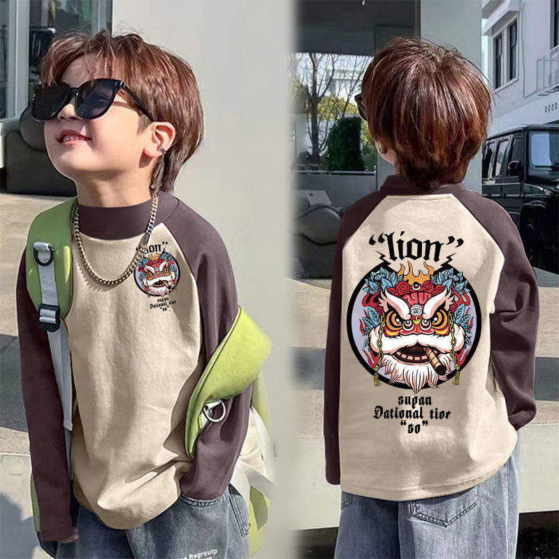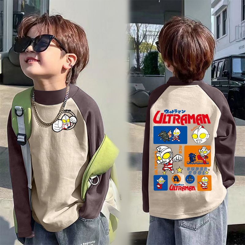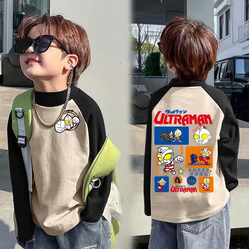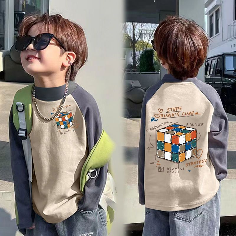 아동베이스 셔츠 드 벨벳 따뜻한 봄과 가을 새로운 중대형 어린이 하프 하이 칼라 티셔츠 아기 콘트라스트 컬러 베이스 셔츠스토어 가기