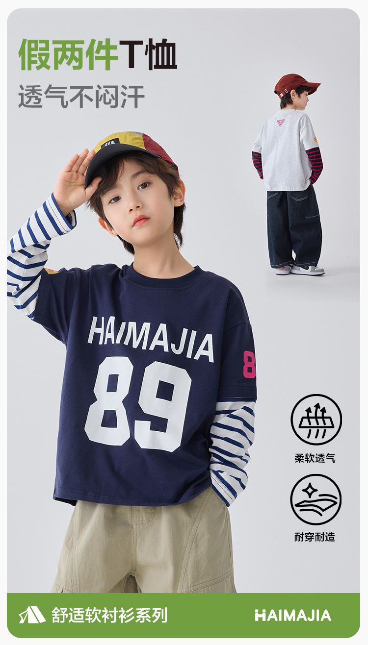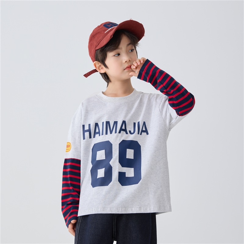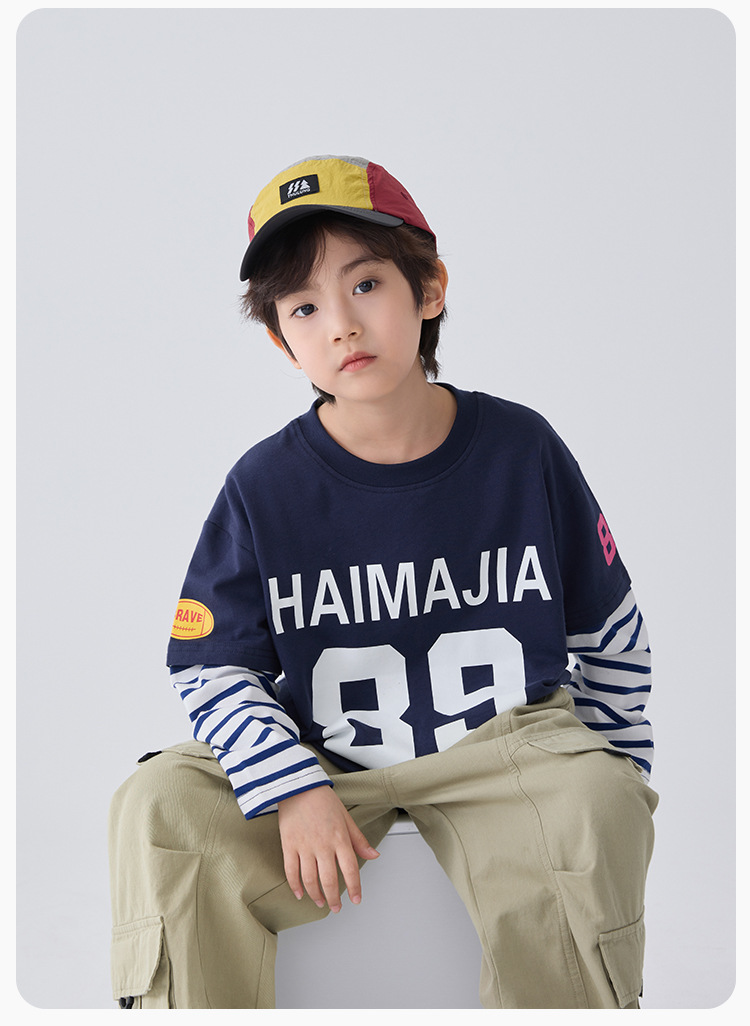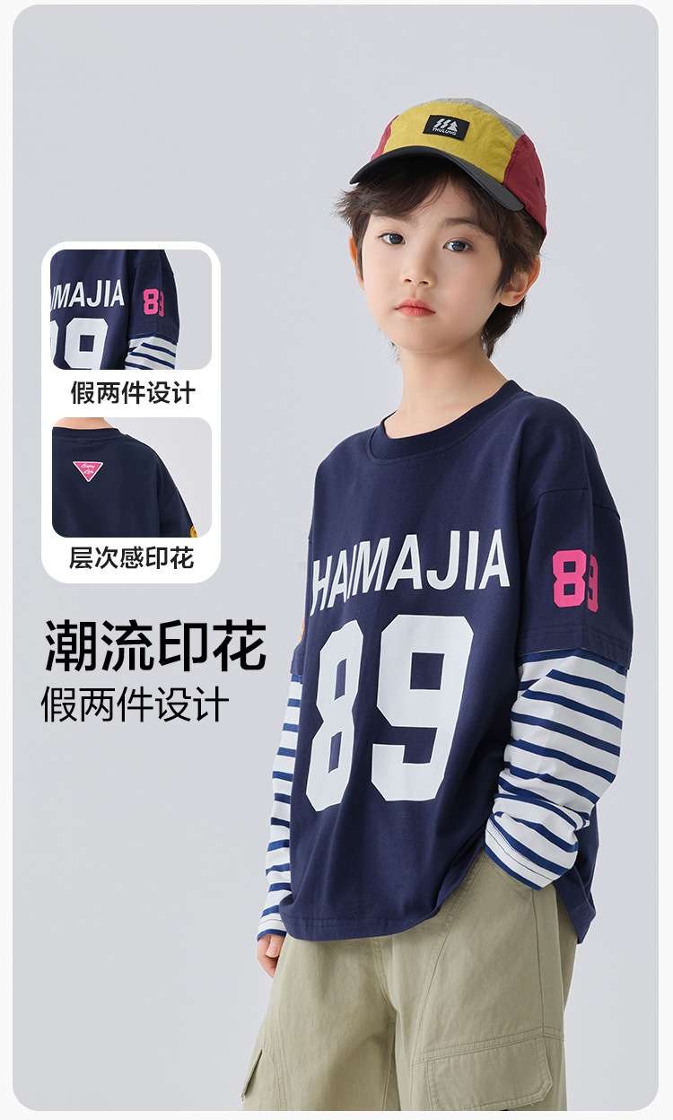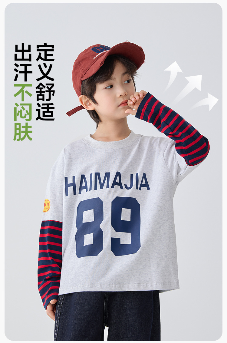 하이마 아동복 2026 봄 신상 남아 아메리칸 스타일 긴팔 티셔츠 유럽 및 미국 아동 봄 상의 스포츠 트렌드