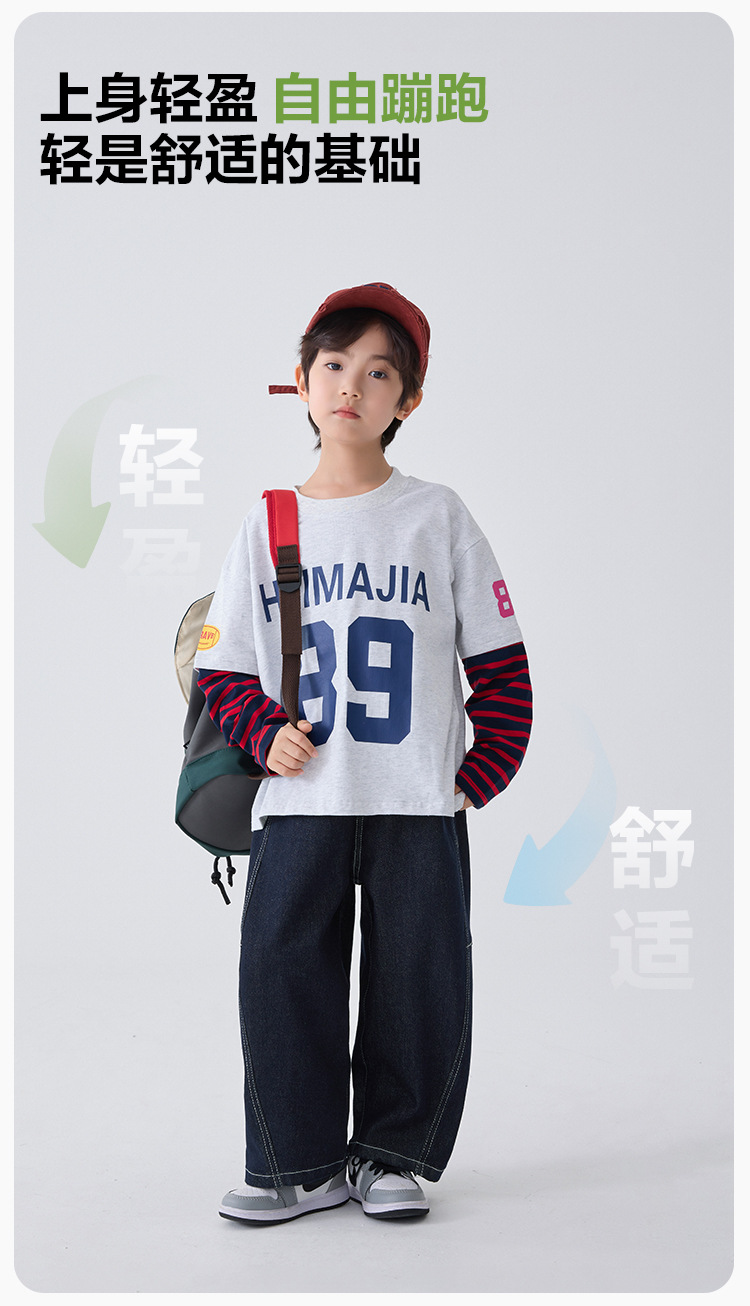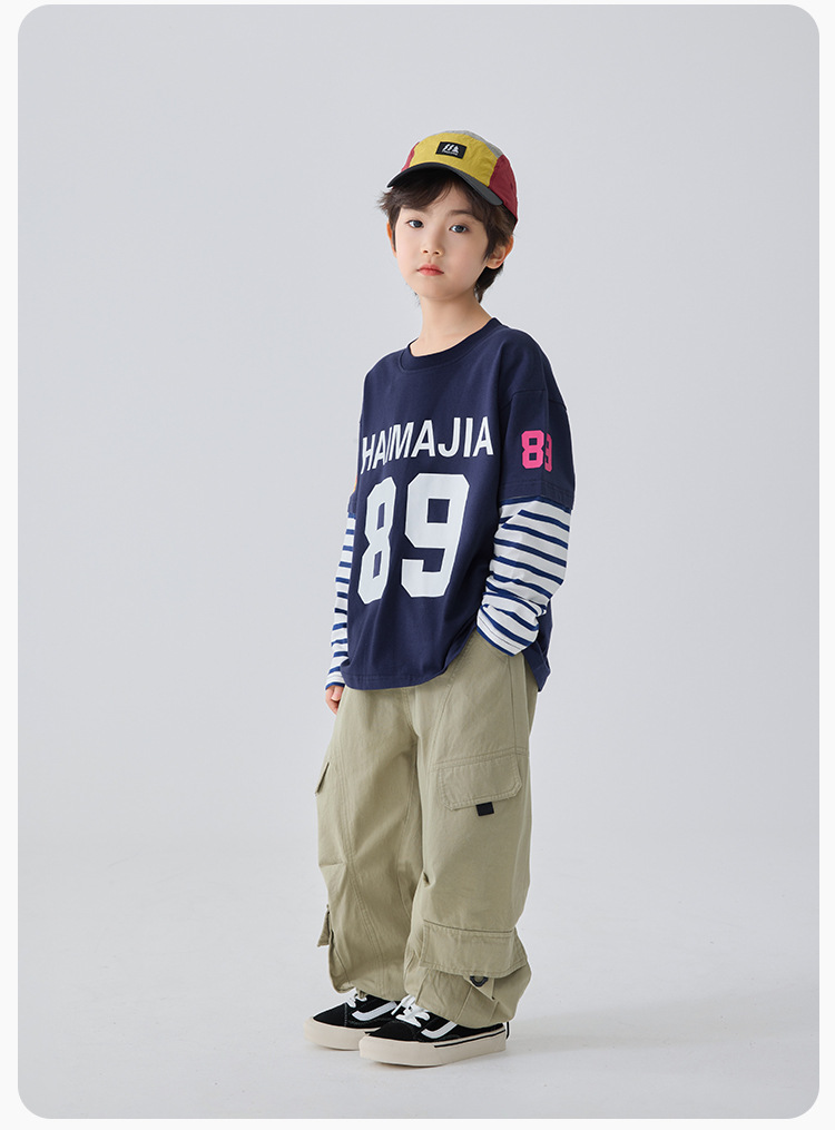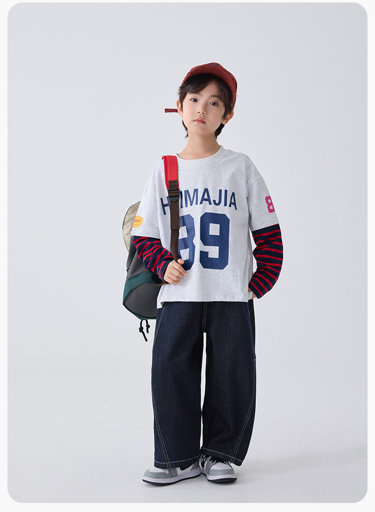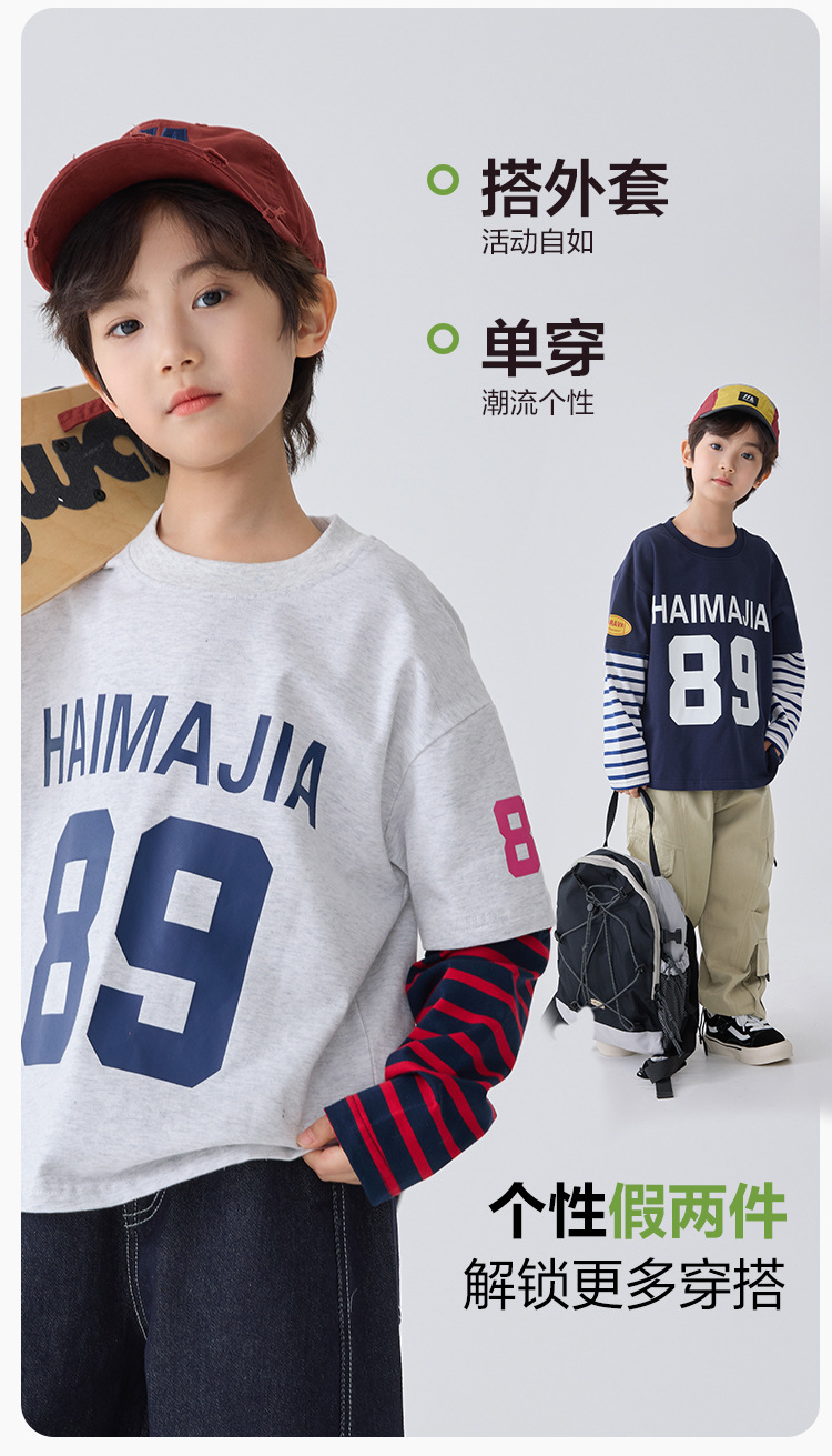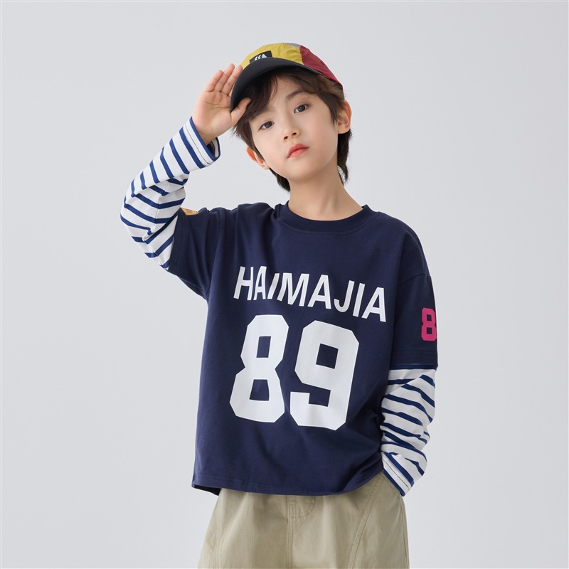 하이마 아동복 2026 봄 신상 남아 아메리칸 스타일 긴팔 티셔츠 유럽 및 미국 아동 봄 상의 스포츠 트렌드