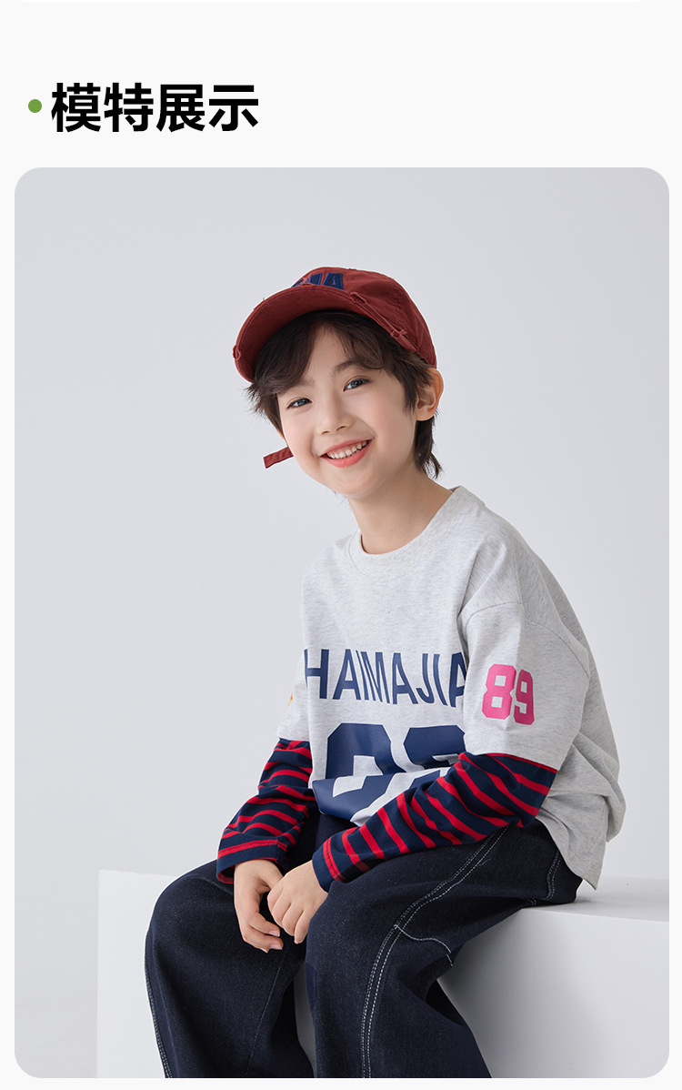 하이마 아동복 2026 봄 신상 남아 아메리칸 스타일 긴팔 티셔츠 유럽 및 미국 아동 봄 상의 스포츠 트렌드스토어 가기