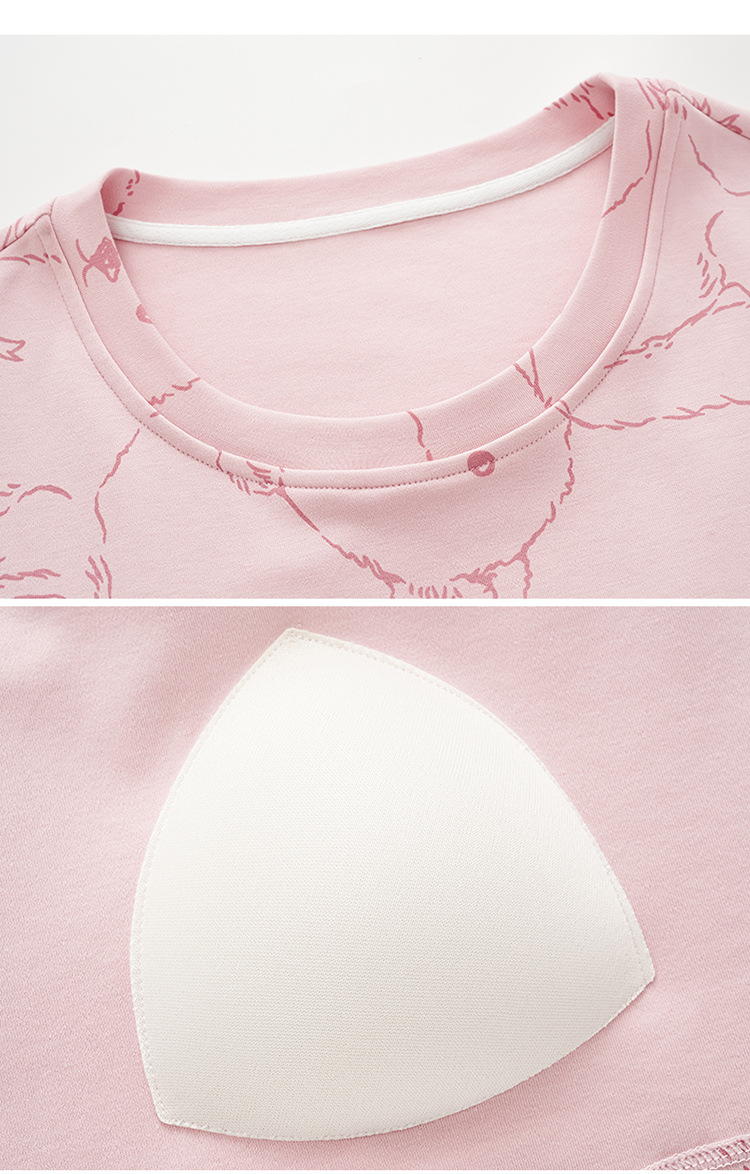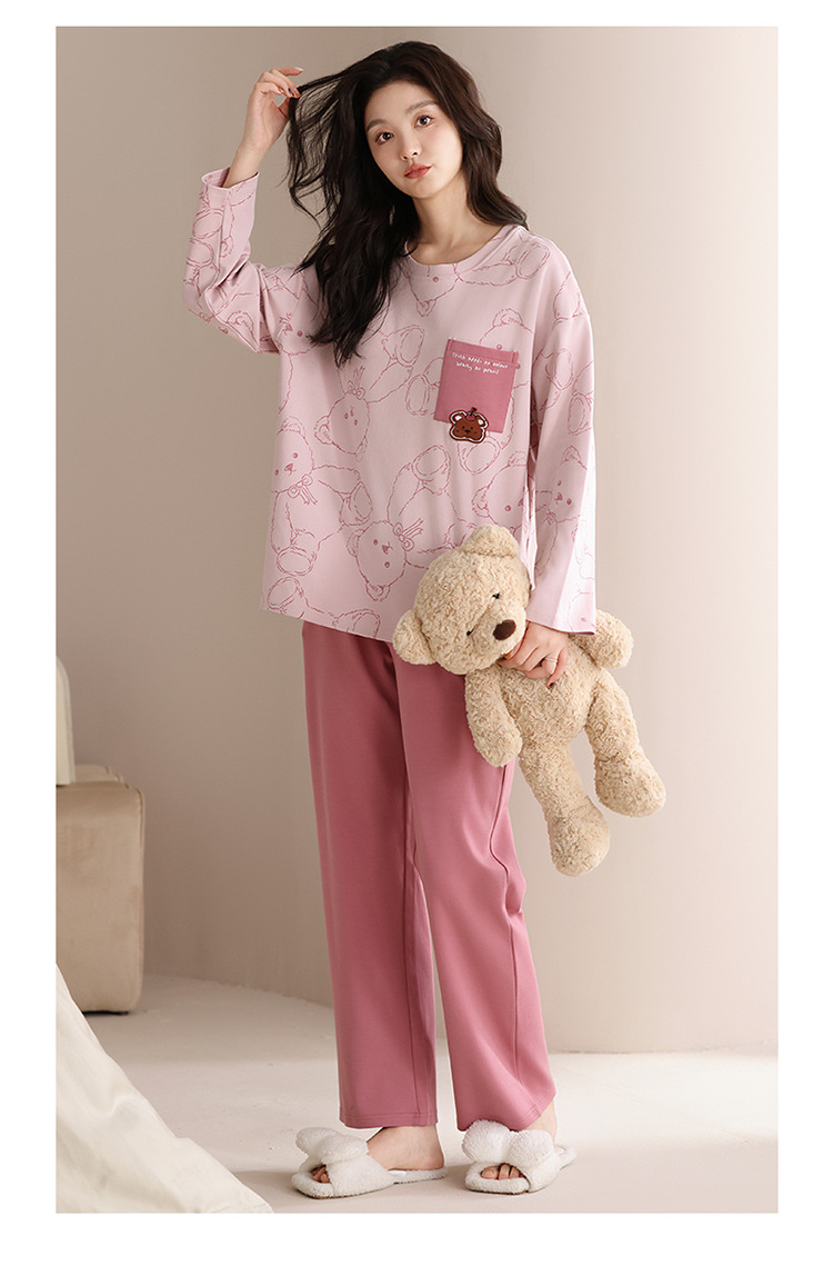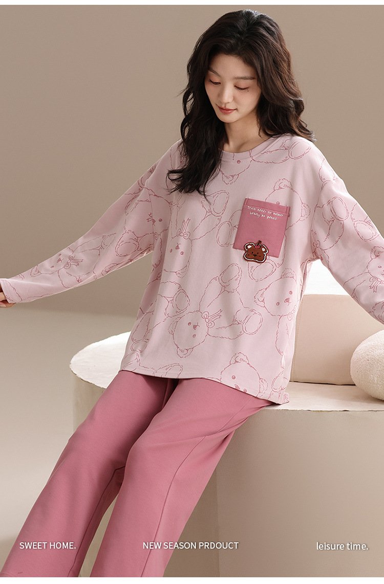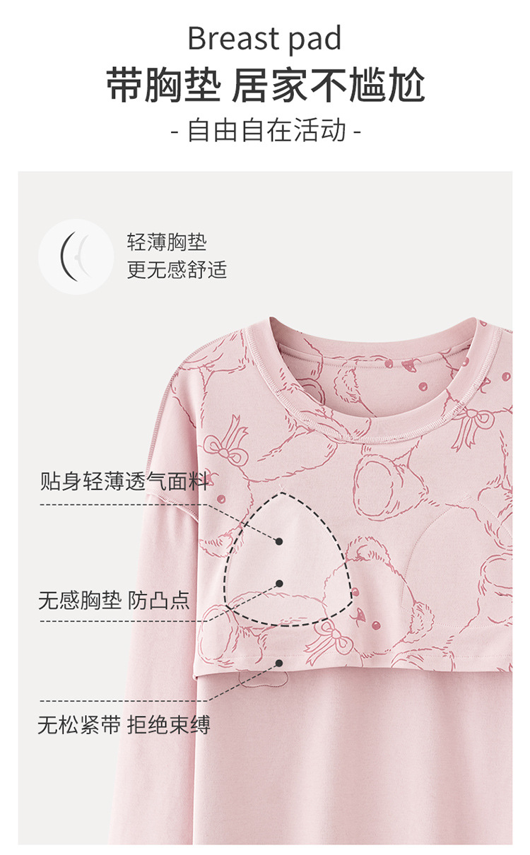 봄 2025 새로운 6535 양면 소녀 크루 넥 머리띠 가슴 패드 긴 소매 파자마 여성 홈 의류 세트
